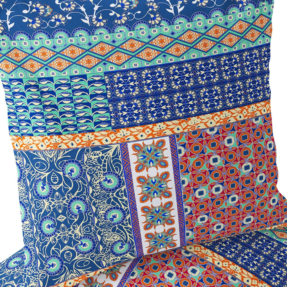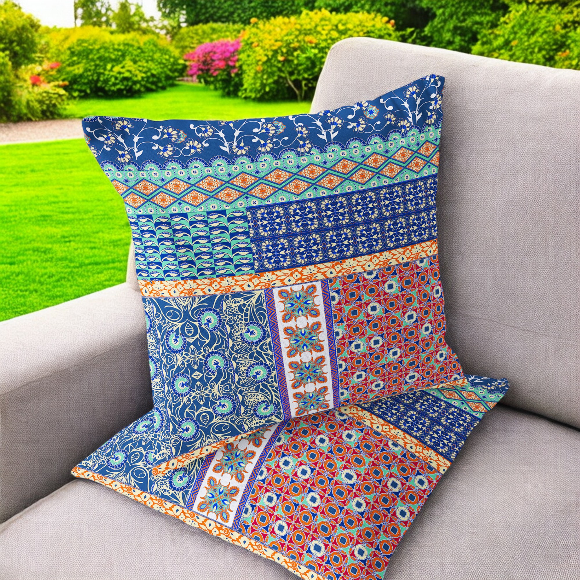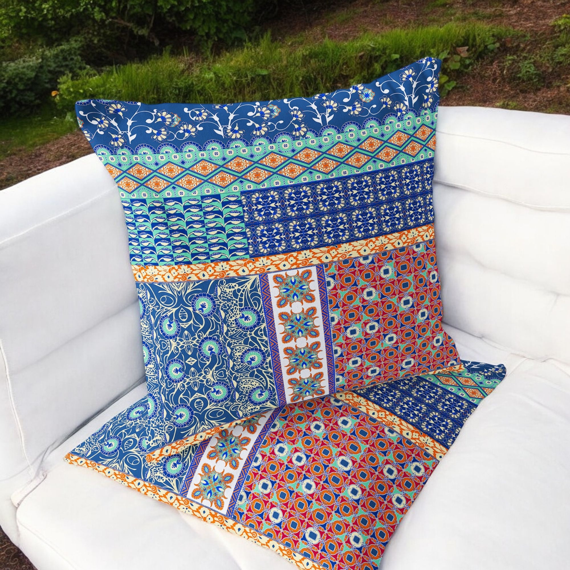 Flower Castle Patchwork Indoor/Outdoor Set of 2 Pillows in Blue Orange