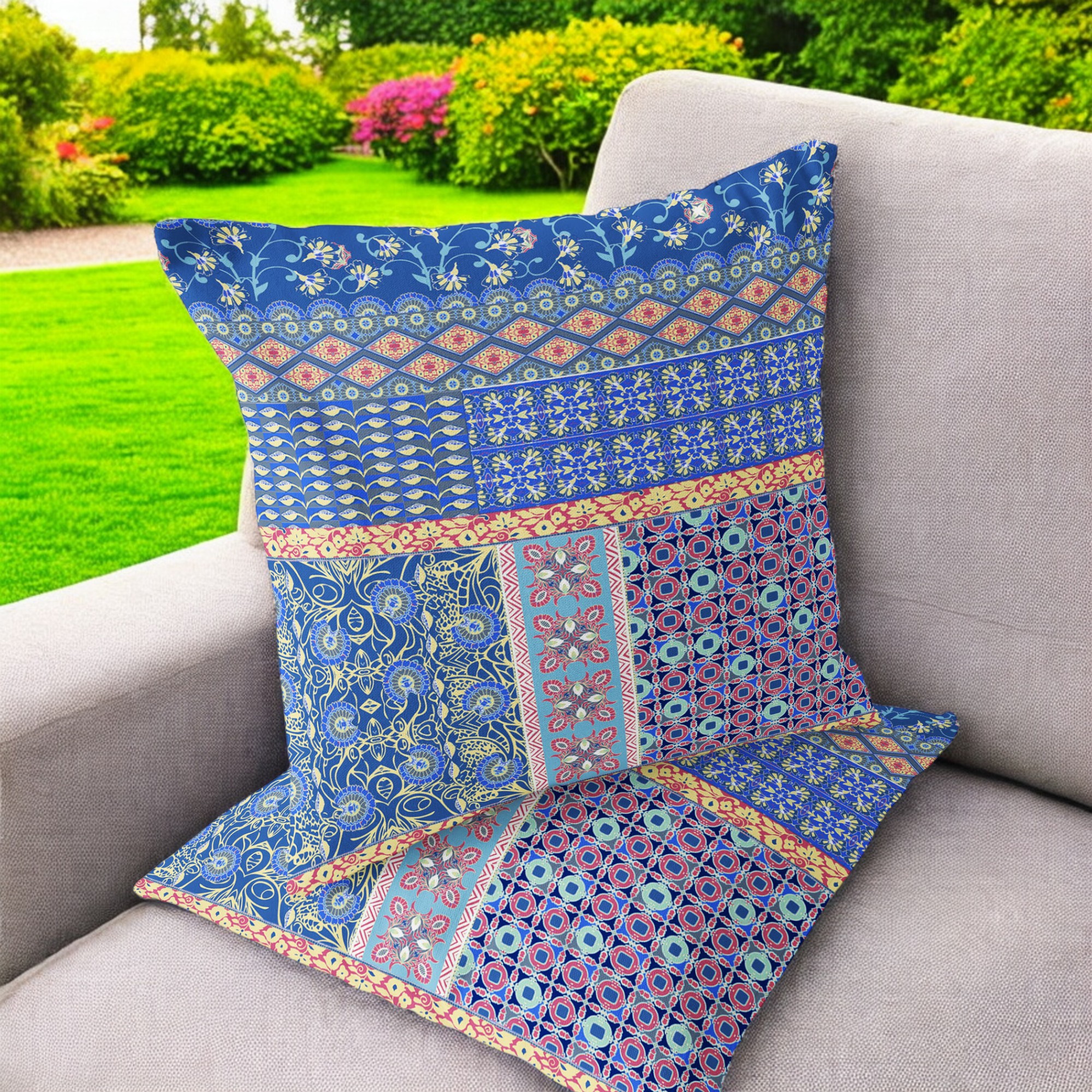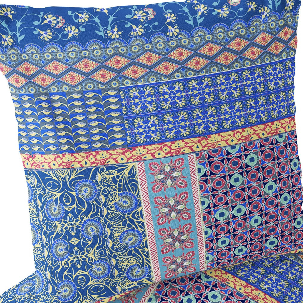Flower Castle Patchwork Indoor/Outdoor Set of 2 Pillows in Blue Yellow