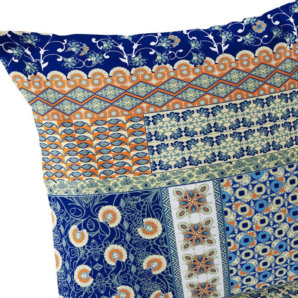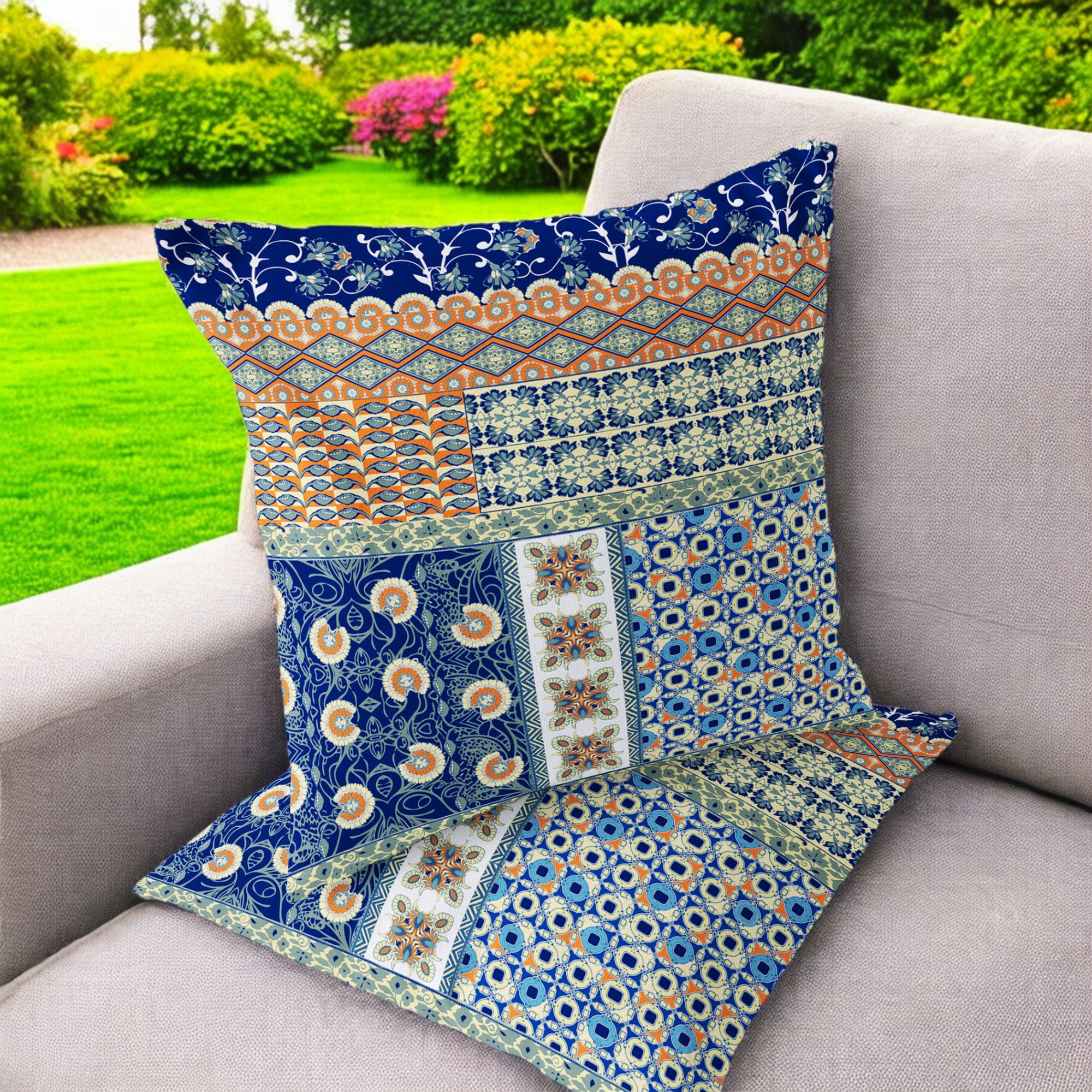 Flower Castle Patchwork Indoor/Outdoor Set of 2 Pillows in Navy Orange