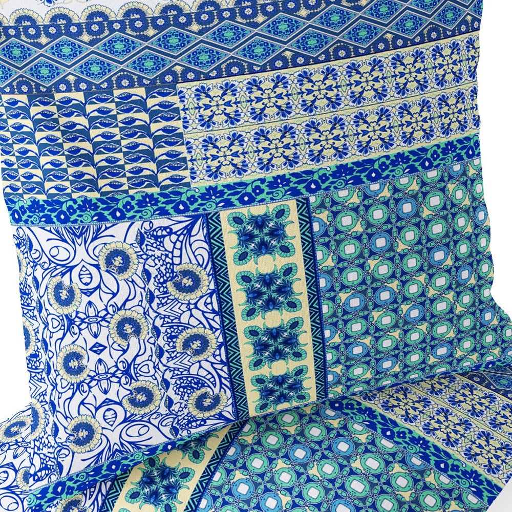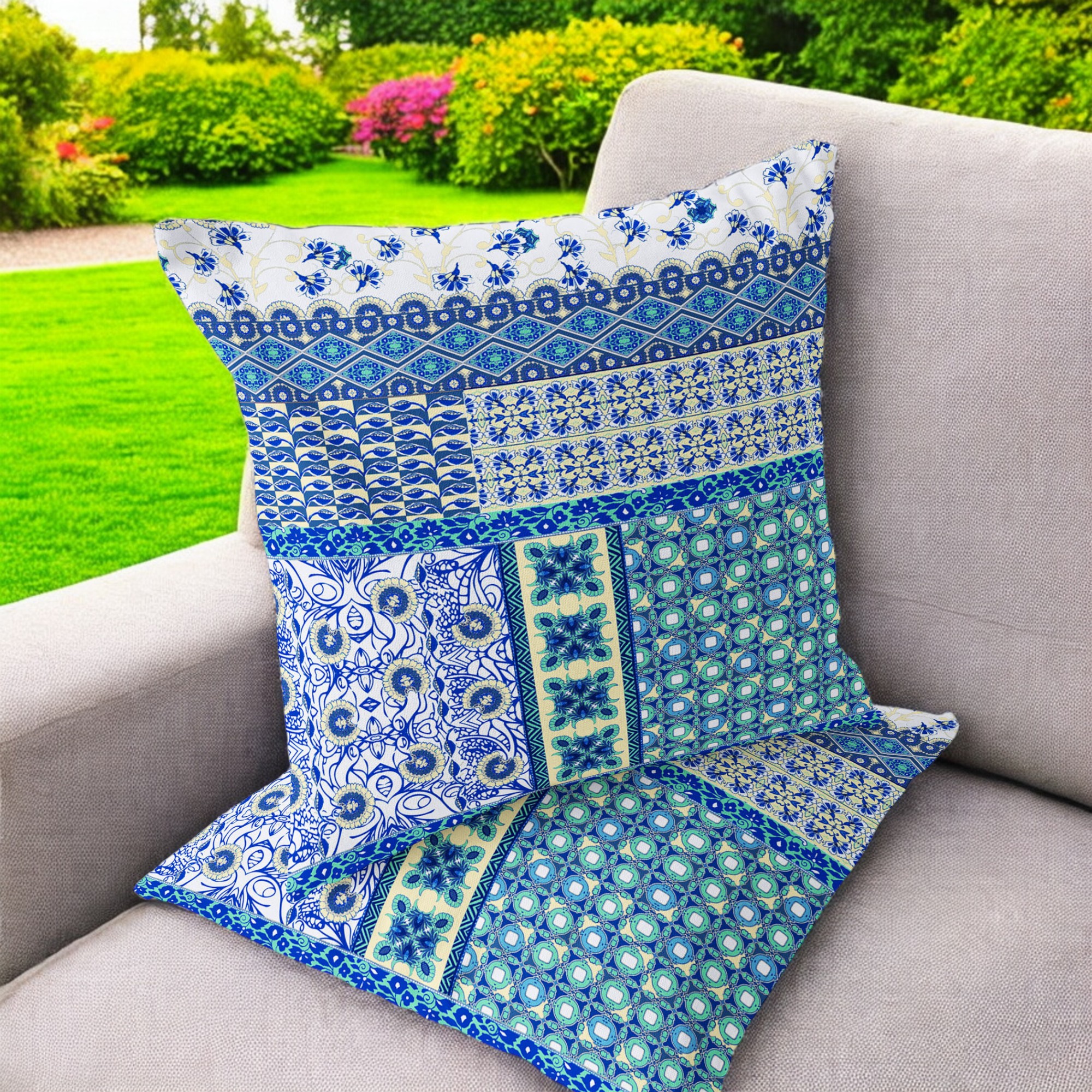 Flower Castle Patchwork Indoor/Outdoor Set of 2 Pillows in White Blue