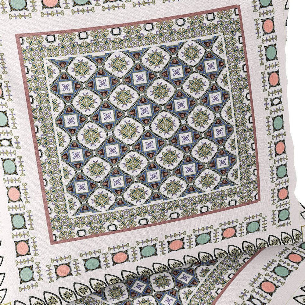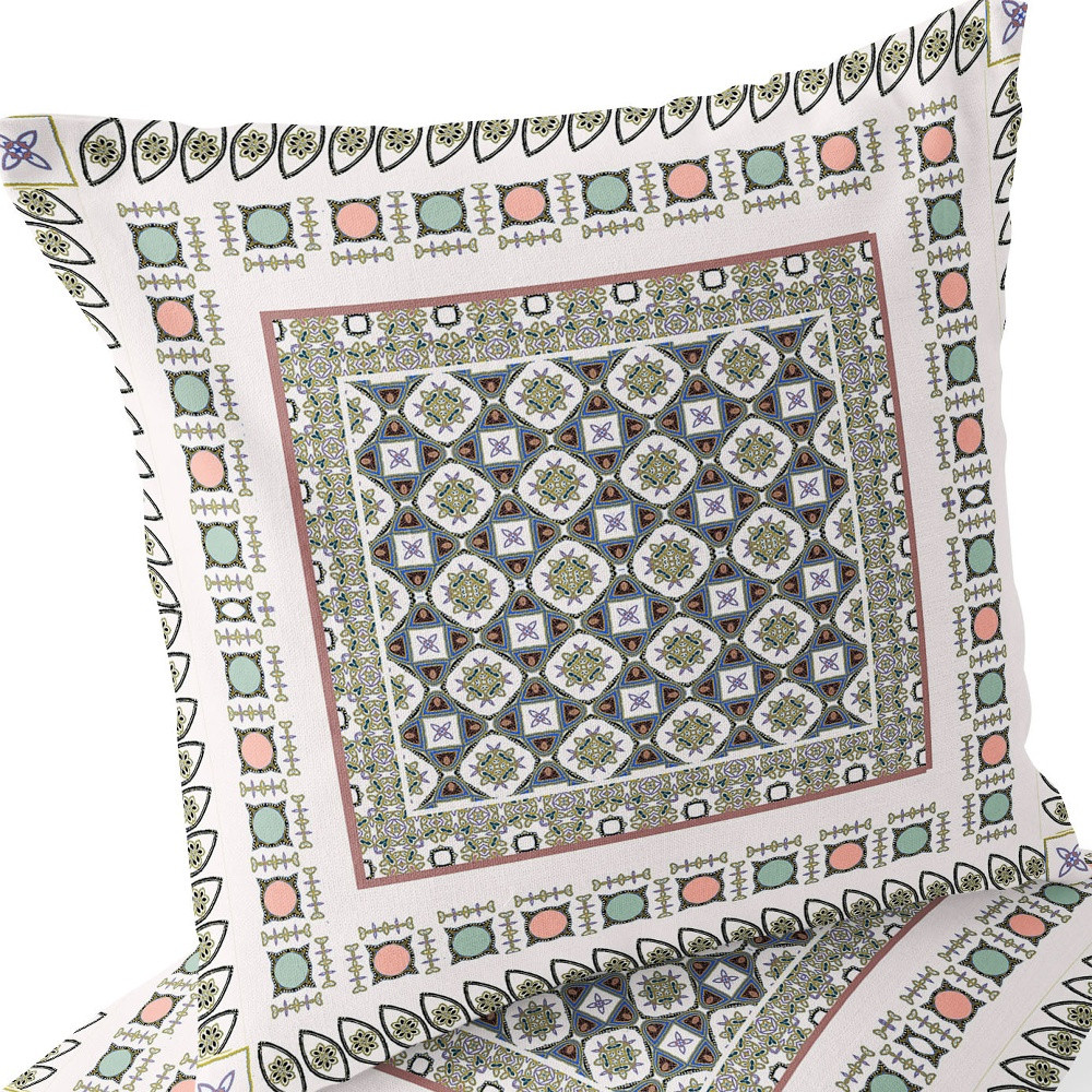 Floral Windows Indoor/Outdoor Set of 2 Pillows in White Blue