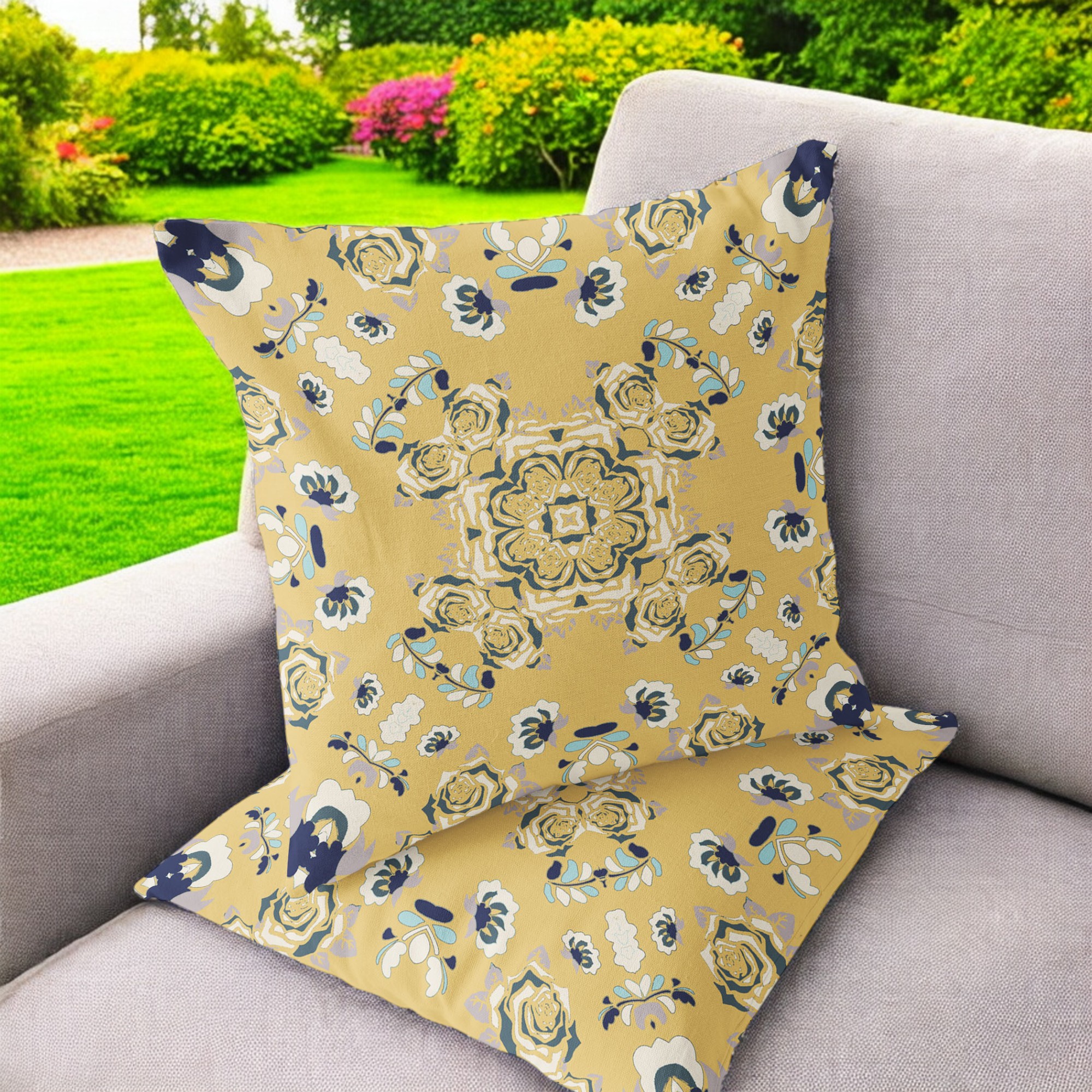 Rose Wreath Indoor/Outdoor Set of 2 Pillows in Yellow Blue
