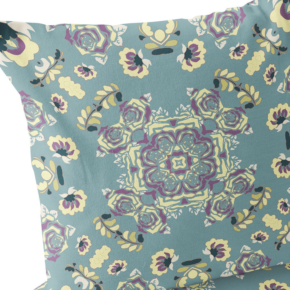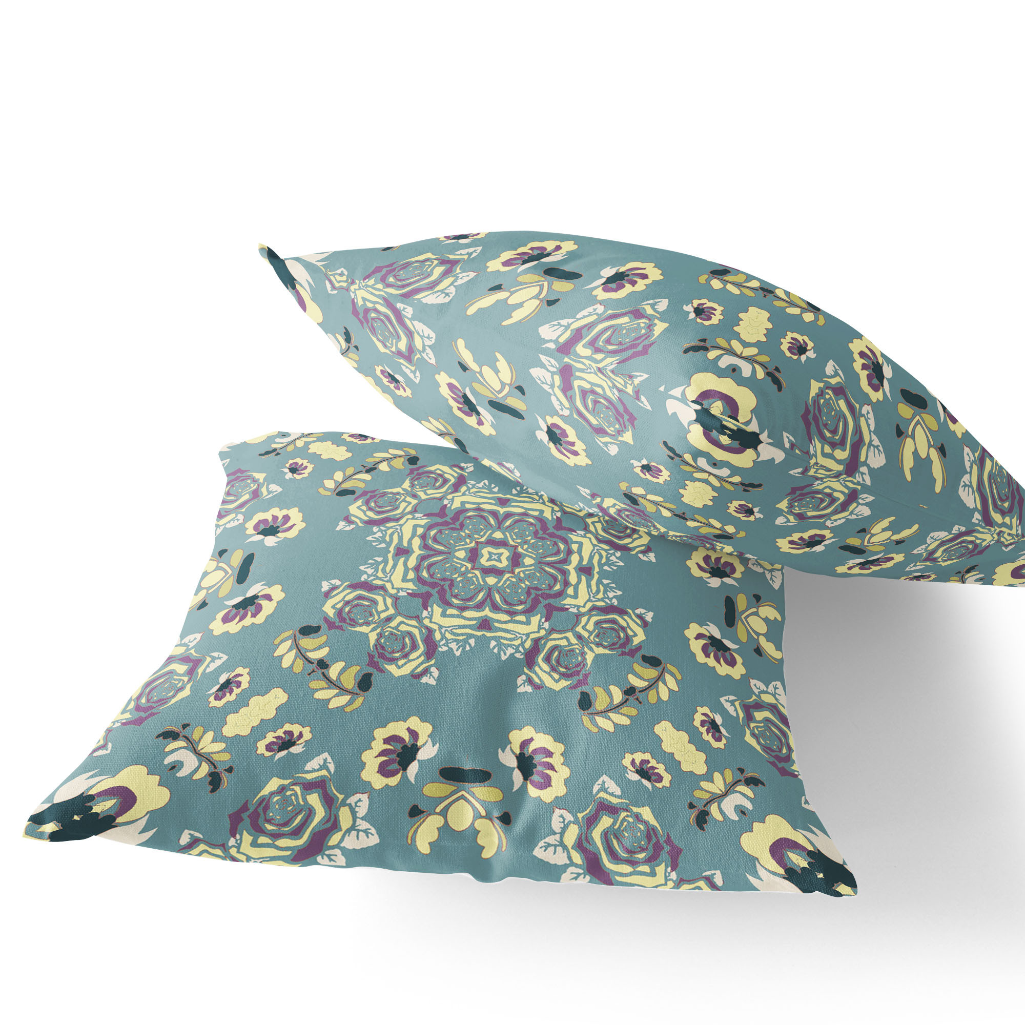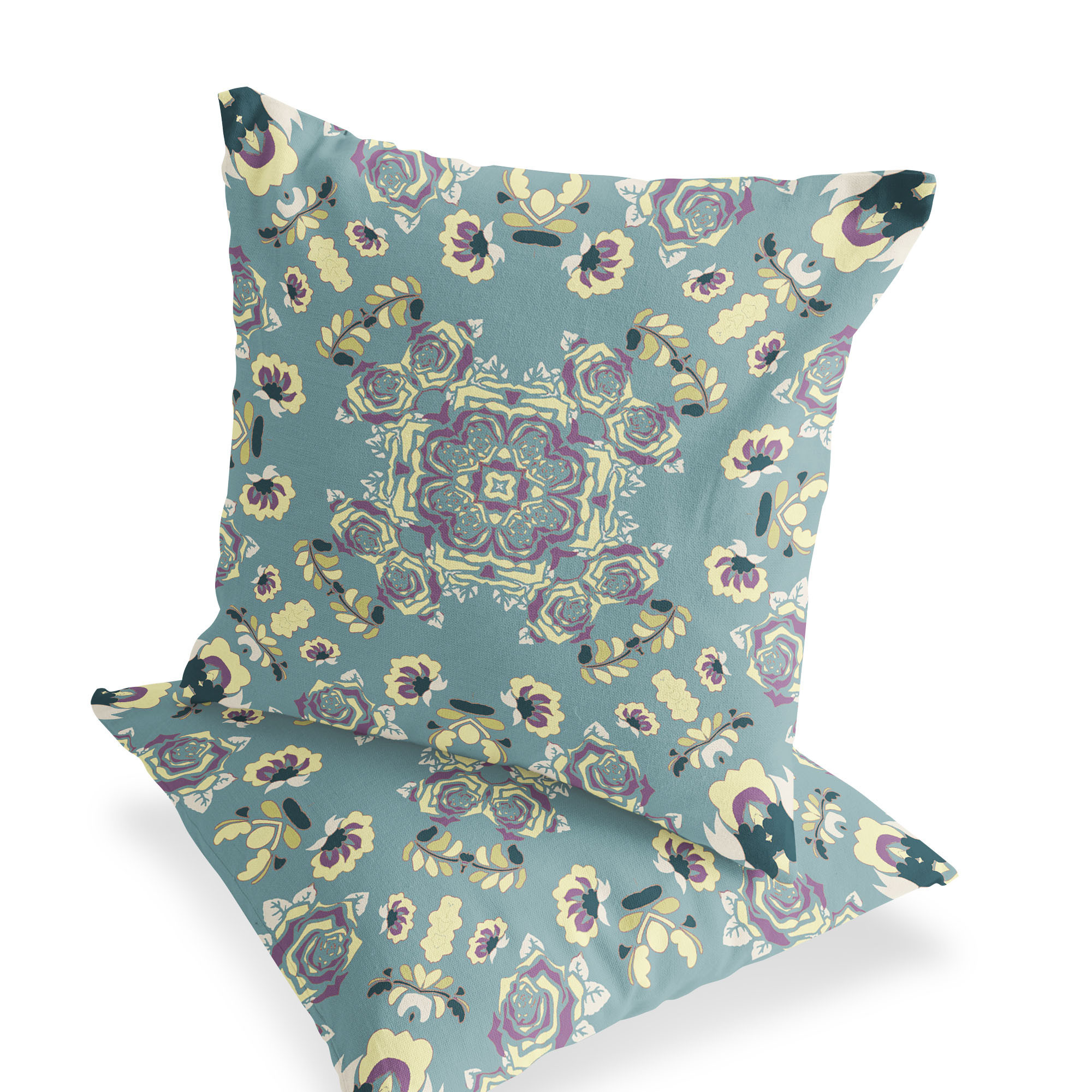 Rose Wreath Indoor/Outdoor Set of 2 Pillows in Light Green Yellow
