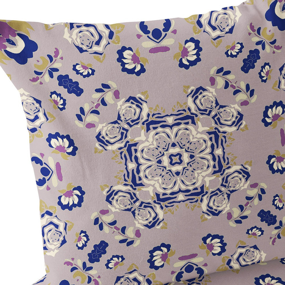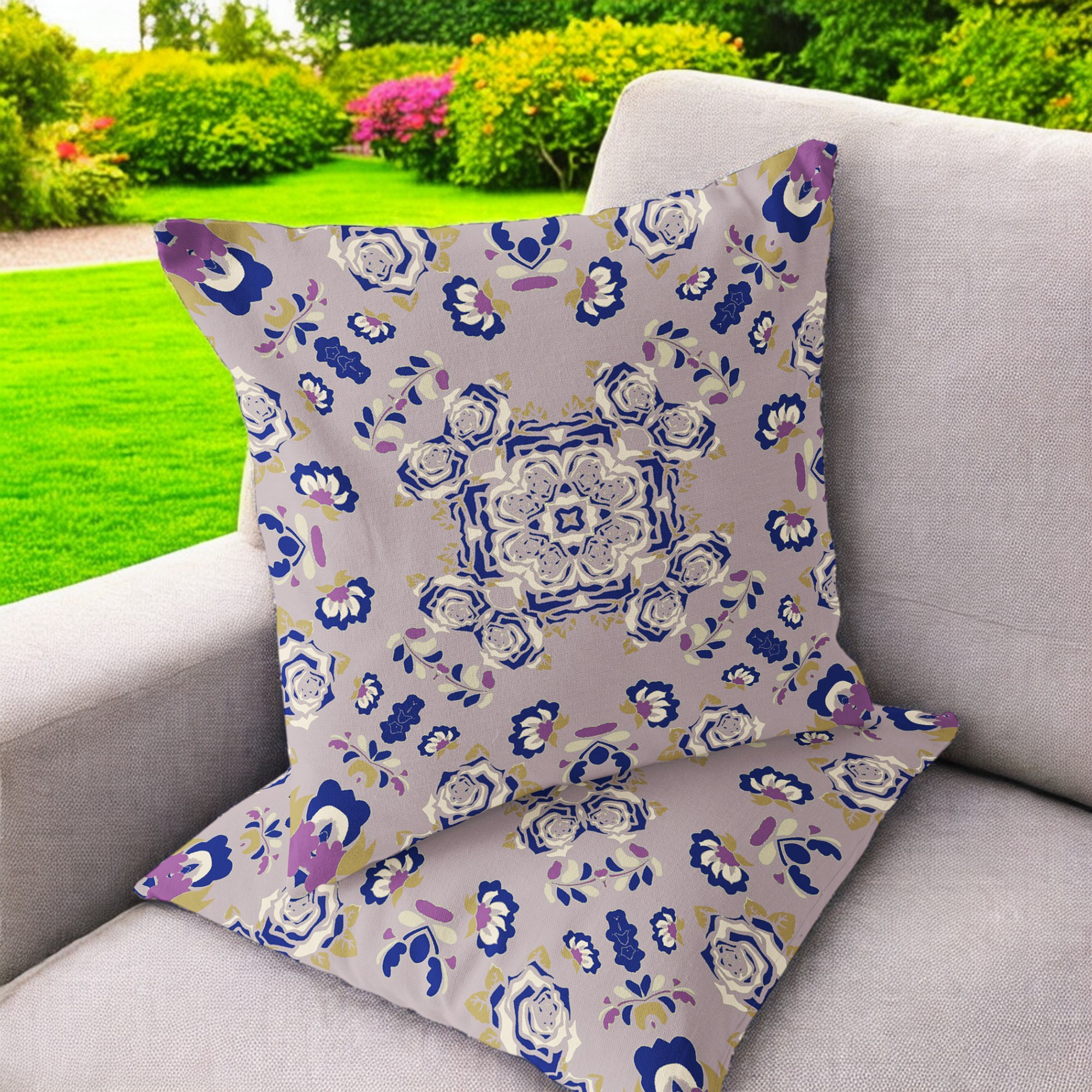 Rose Wreath Indoor/Outdoor Set of 2 Pillows in Purple Blue