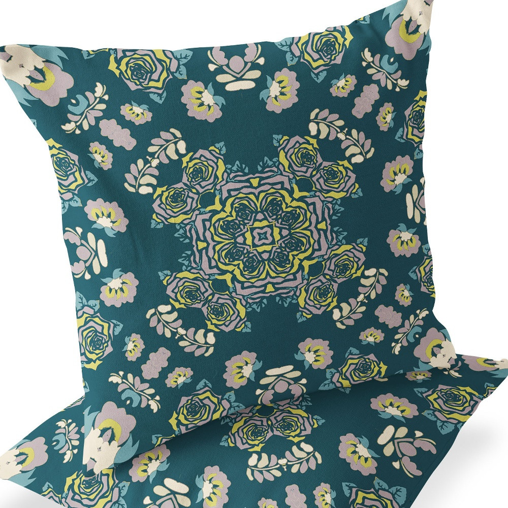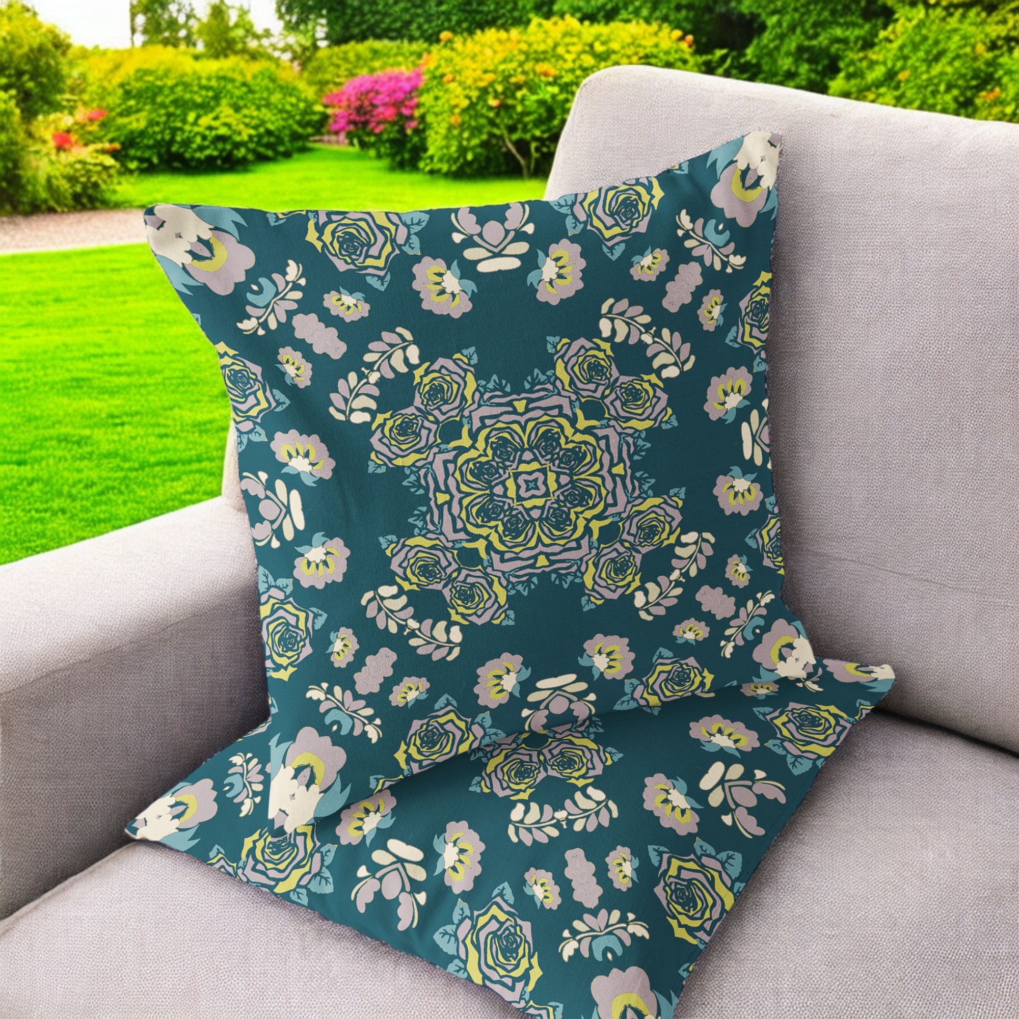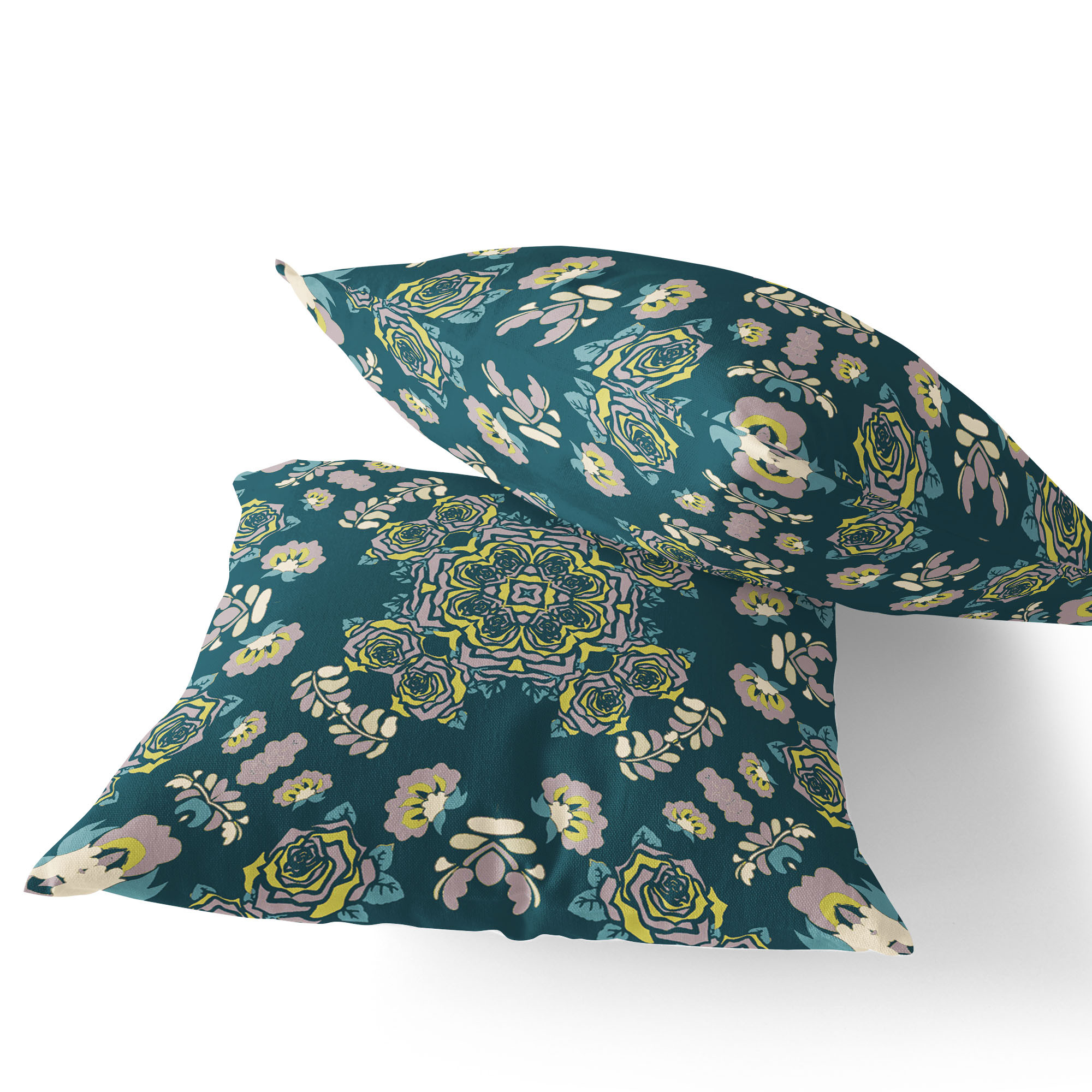 Rose Wreath Indoor/Outdoor Set of 2 Pillows in Green Yellow