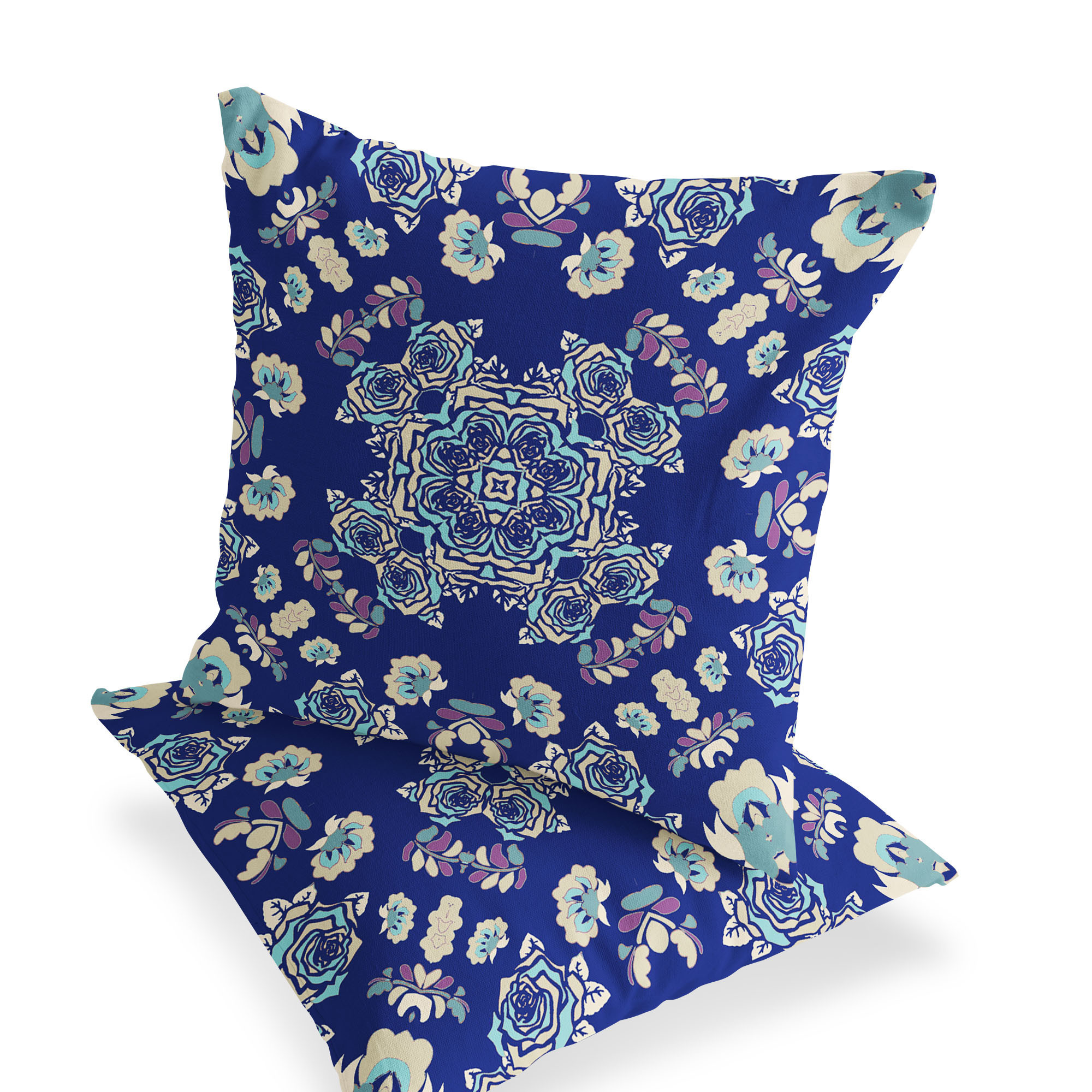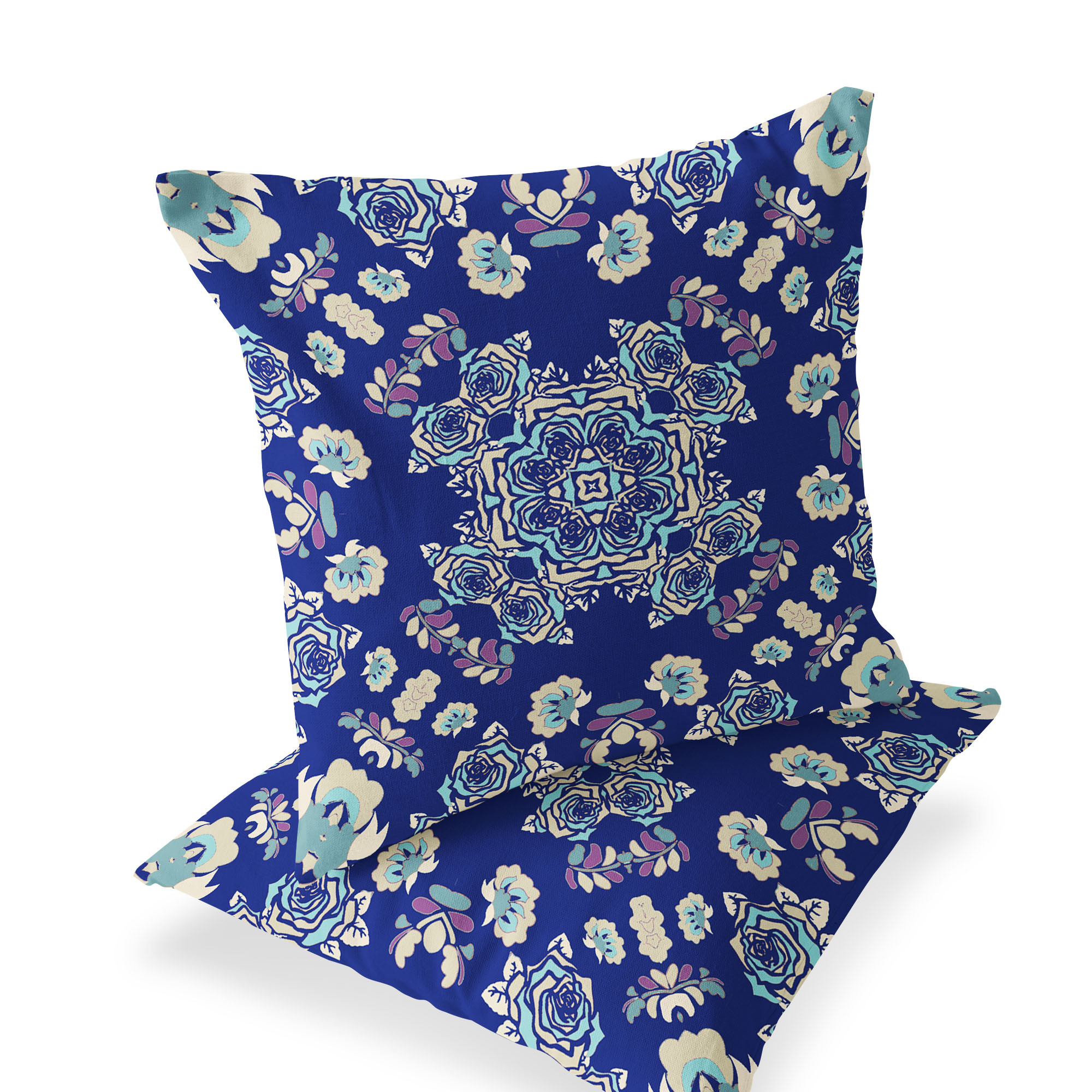 Set of Two Blue Botanical Indoor Outdoor Throw Pillow