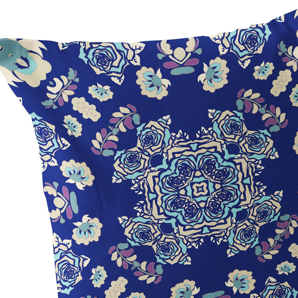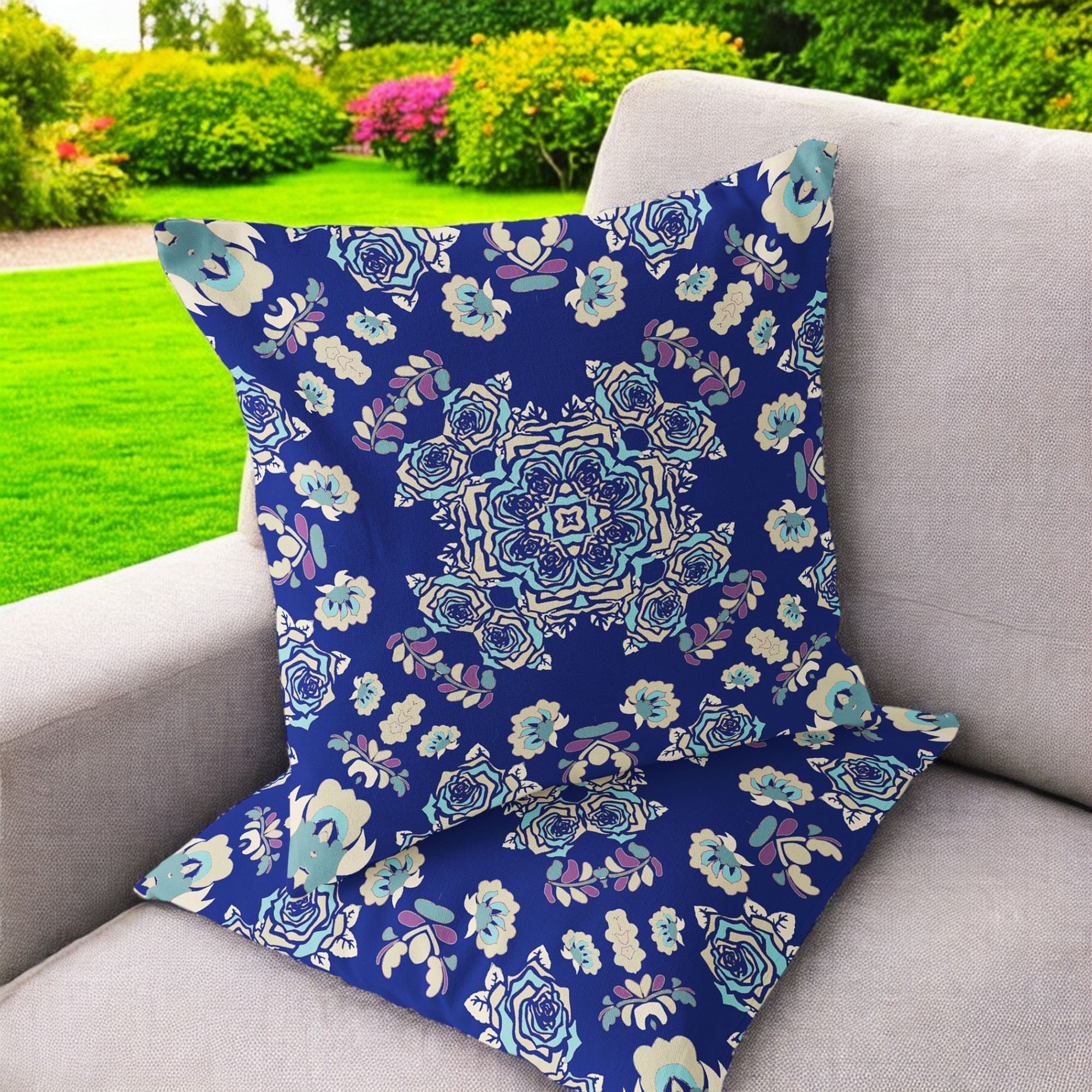 Rose Wreath Indoor/Outdoor Set of 2 Pillows in Blue Off-White
