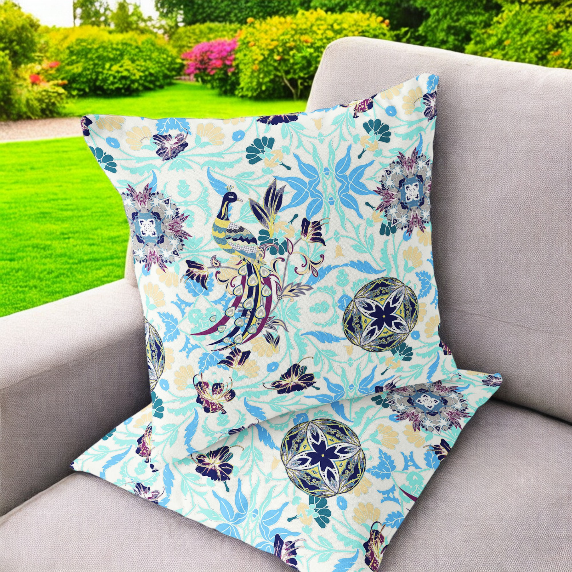 Everest Peacock Indoor/Outdoor Set of 2 Pillows in White Blue