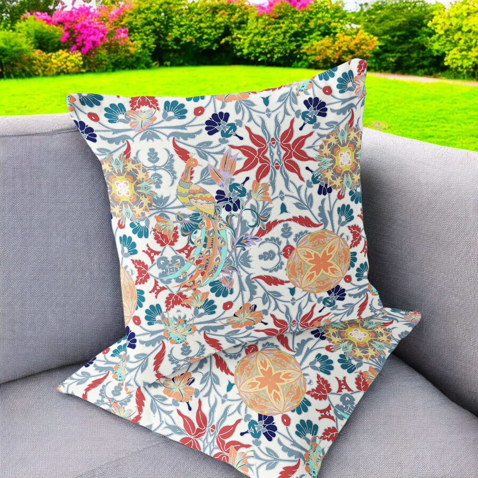 Everest Peacock Indoor/Outdoor Set of 2 Pillows in White Red