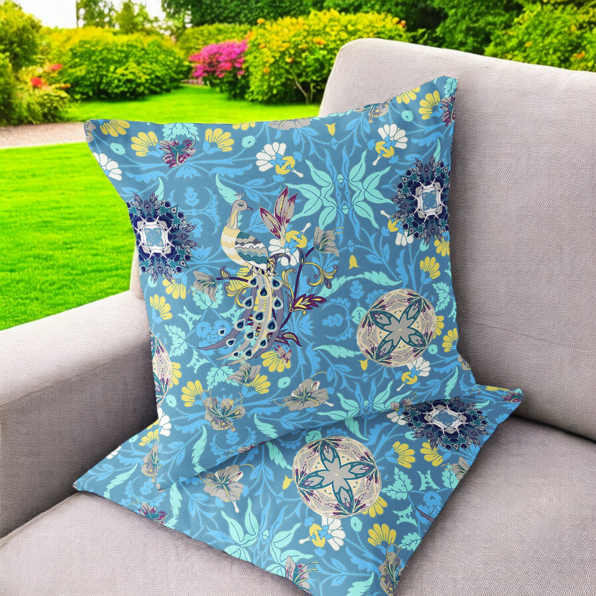 Set of Two Blue Peacock Abstract Indoor Outdoor Throw Pillow