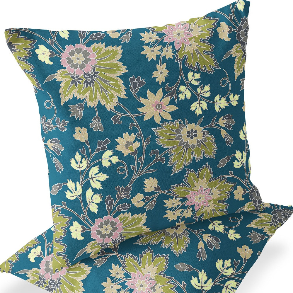 Set of Two Green Botanical Indoor Outdoor Throw Pillow