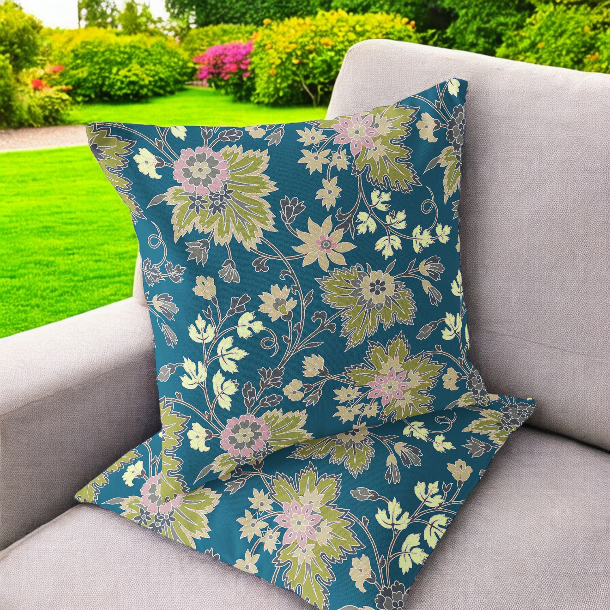 Friendly Flowers Indoor/Outdoor Set of 2 Pillows in Green