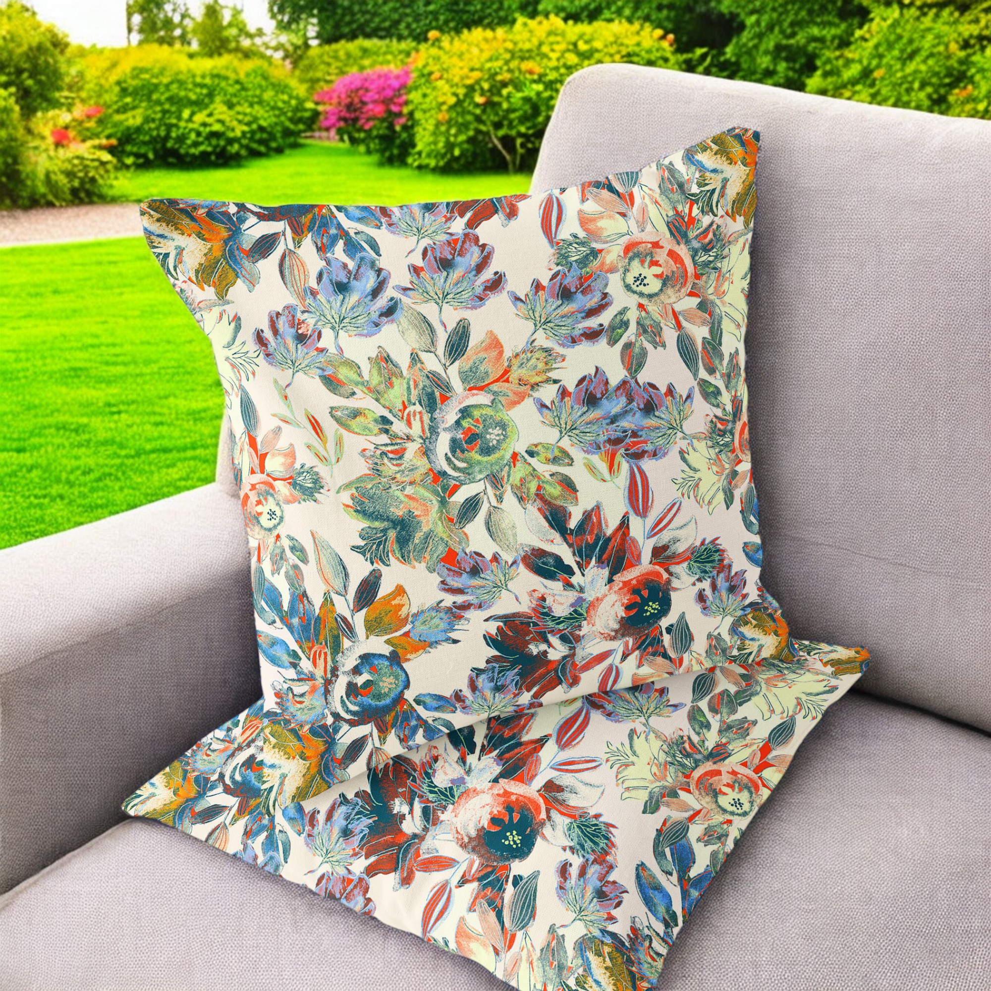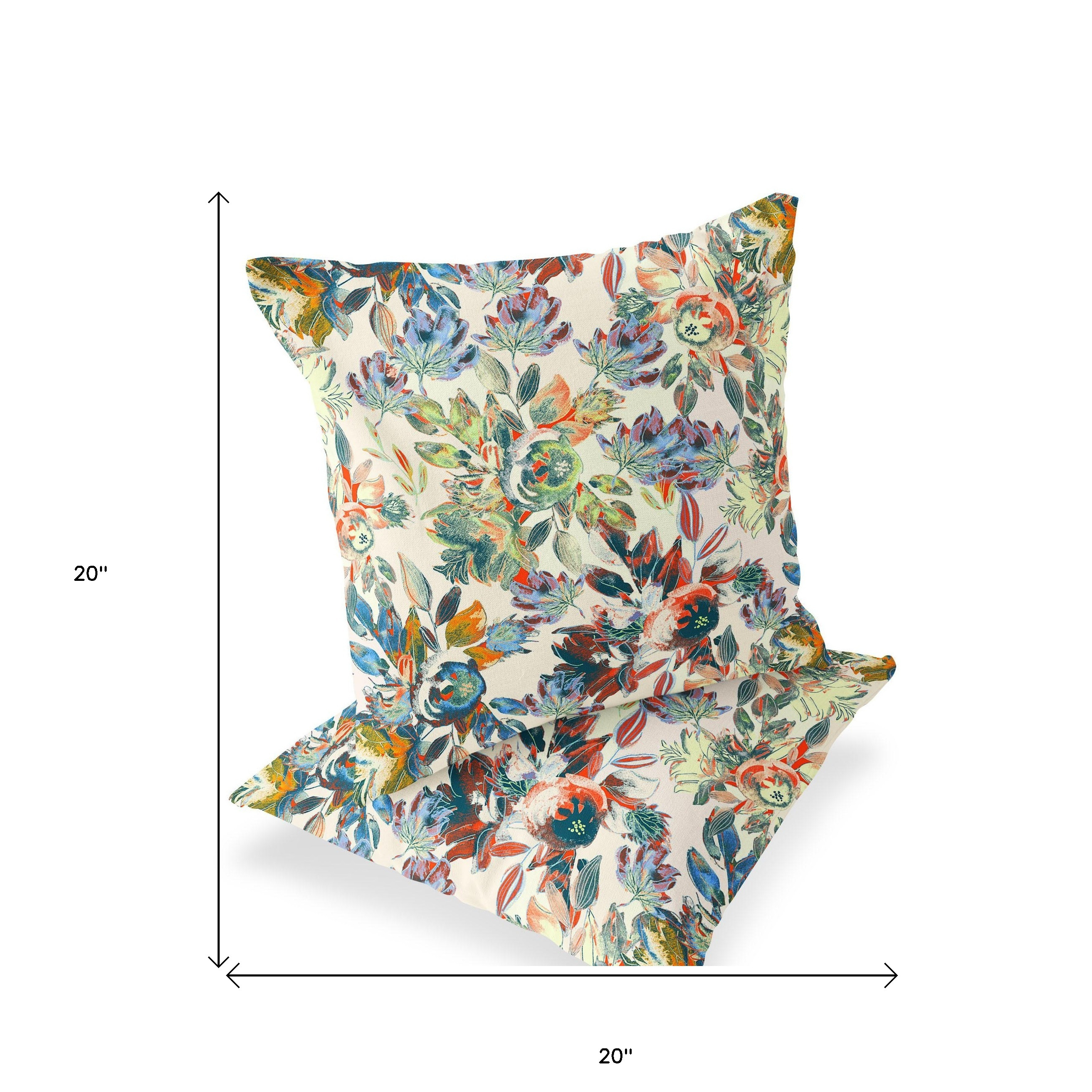 Set of Two White Botanical Indoor Outdoor Throw Pillow
