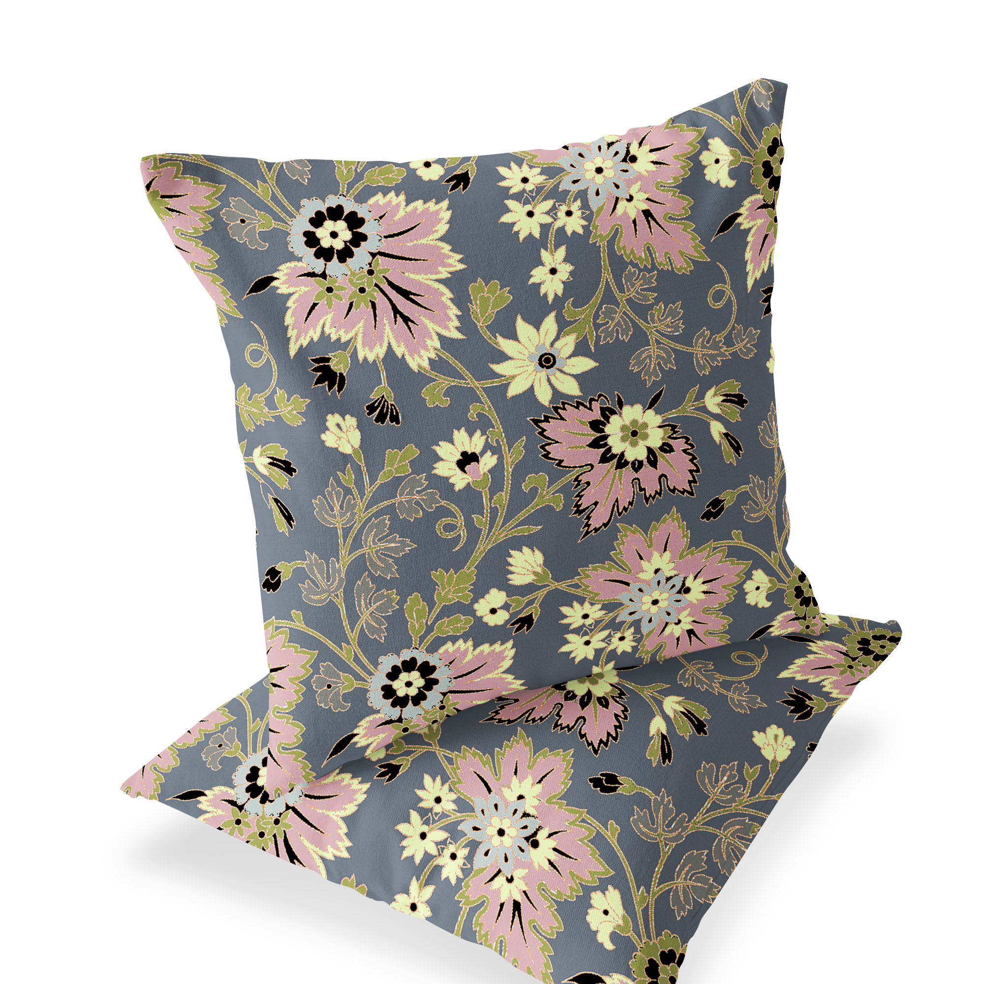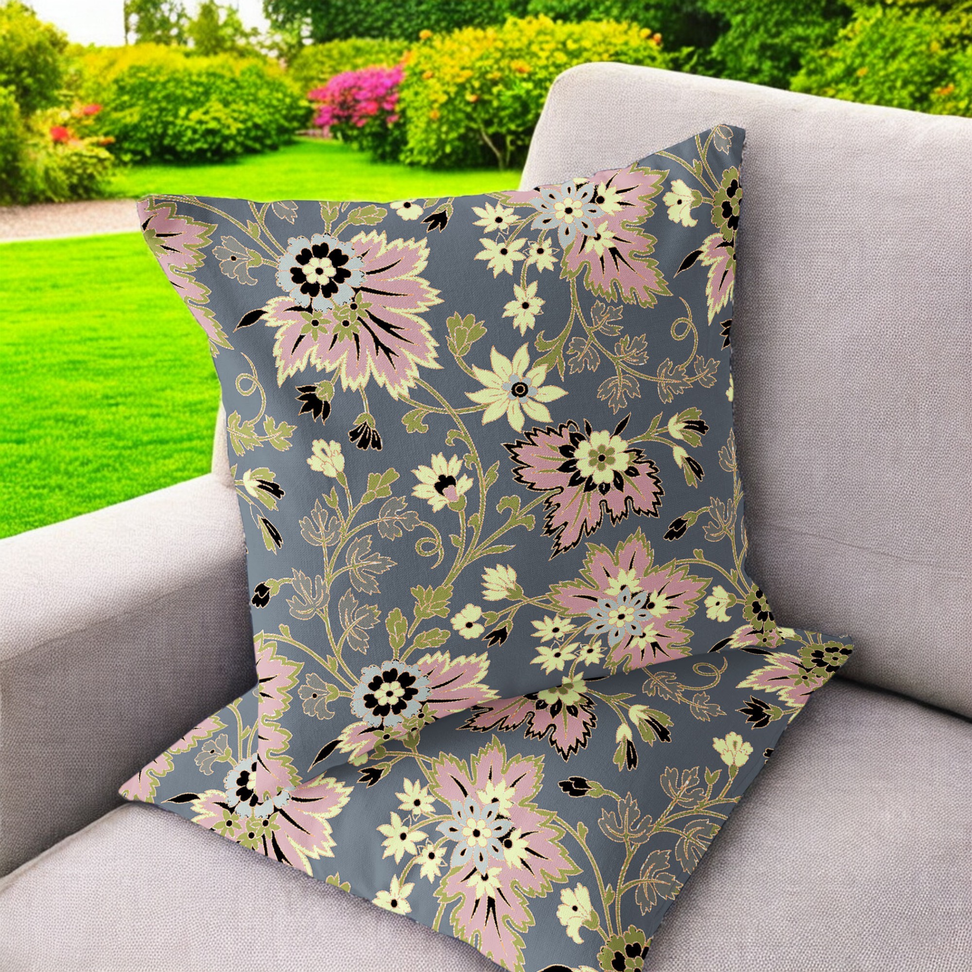 Friendly Flowers Indoor/Outdoor Set of 2 Pillows in Muted Pink and Gray