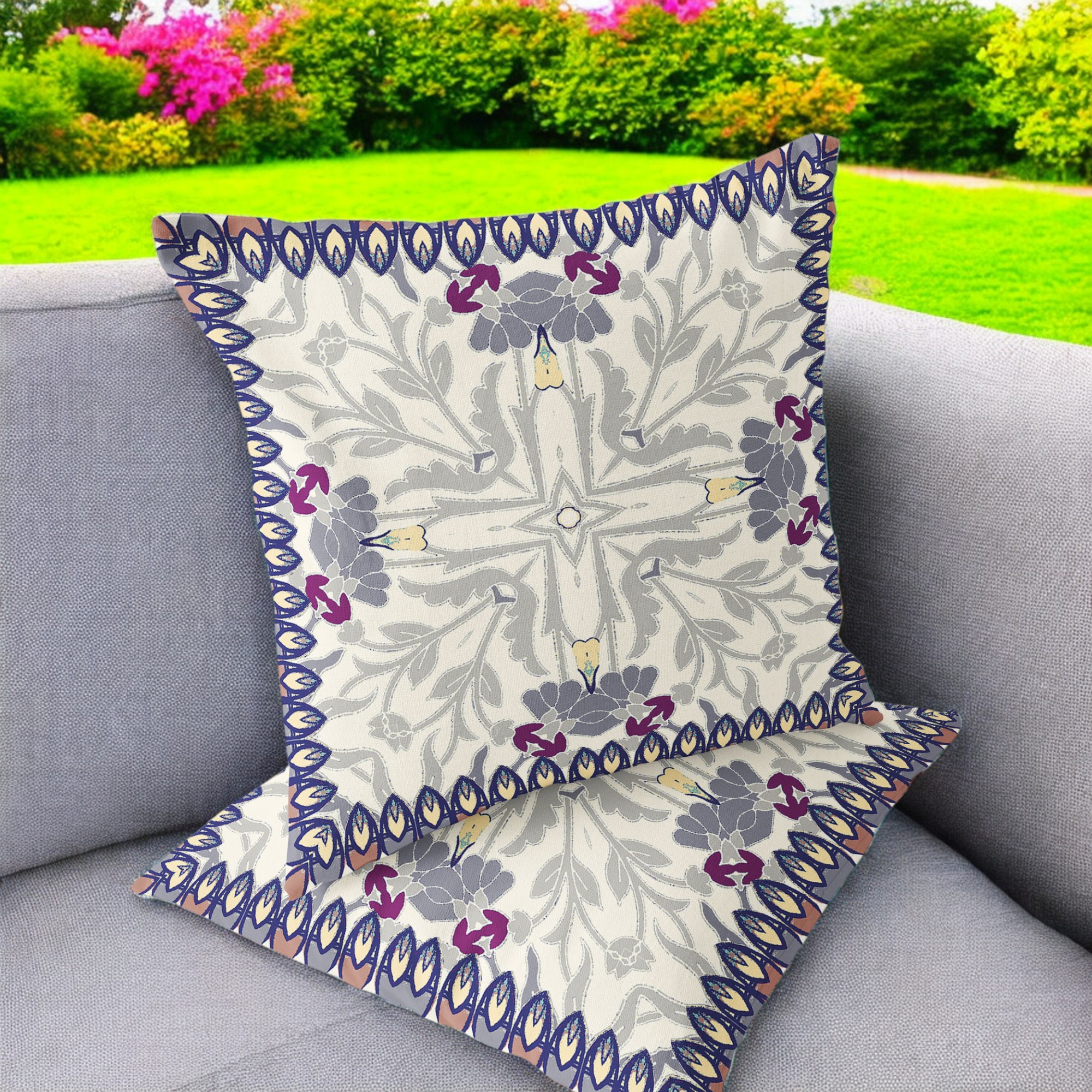 Boho Frame Indoor/Outdoor Set of 2 Pillows in Gray
