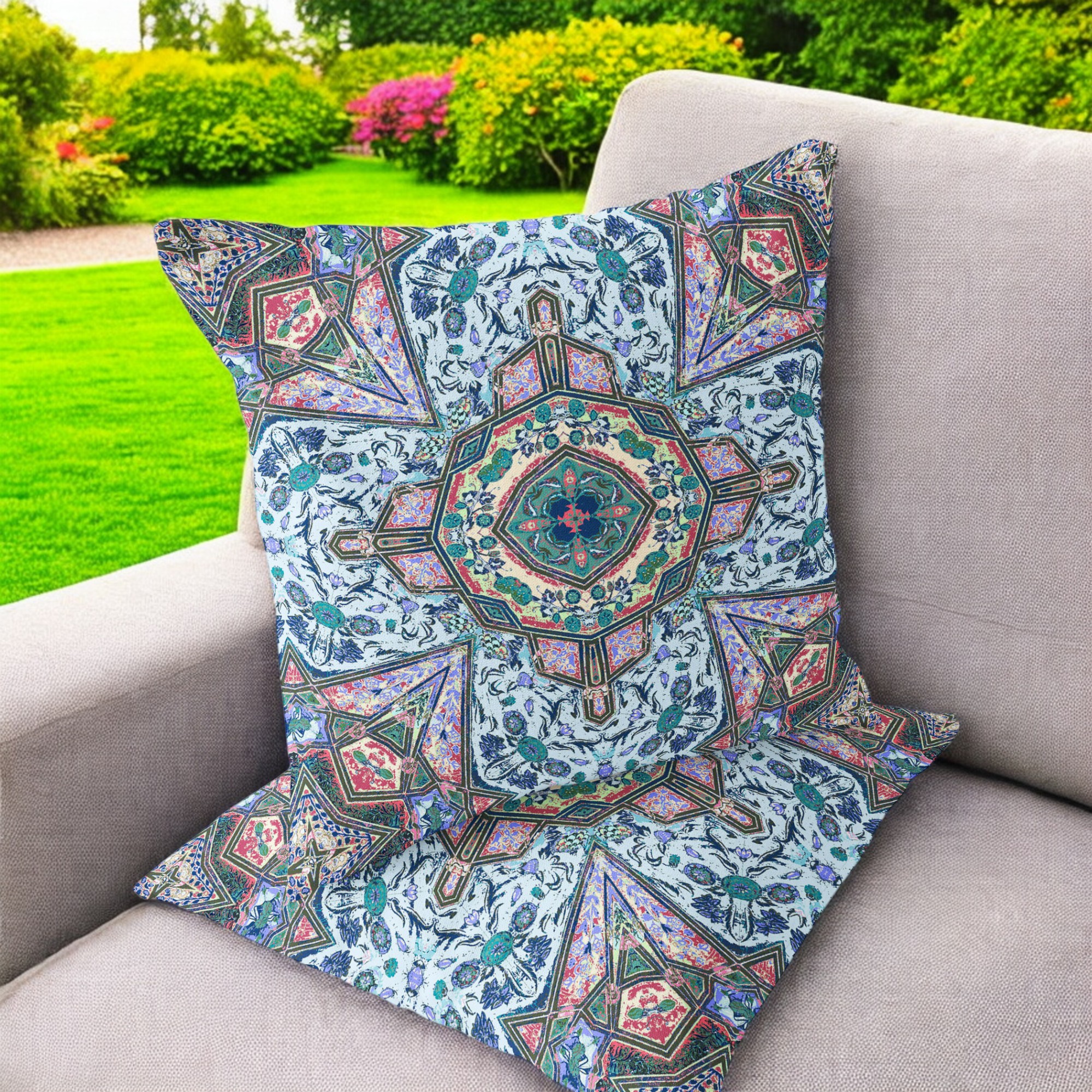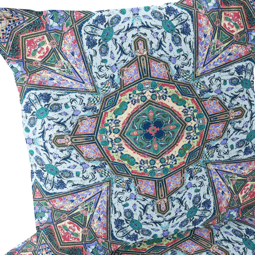 Buddha Flower Ceremony Indoor/Outdoor Set of 2 Pillows in Blue Muted Pink