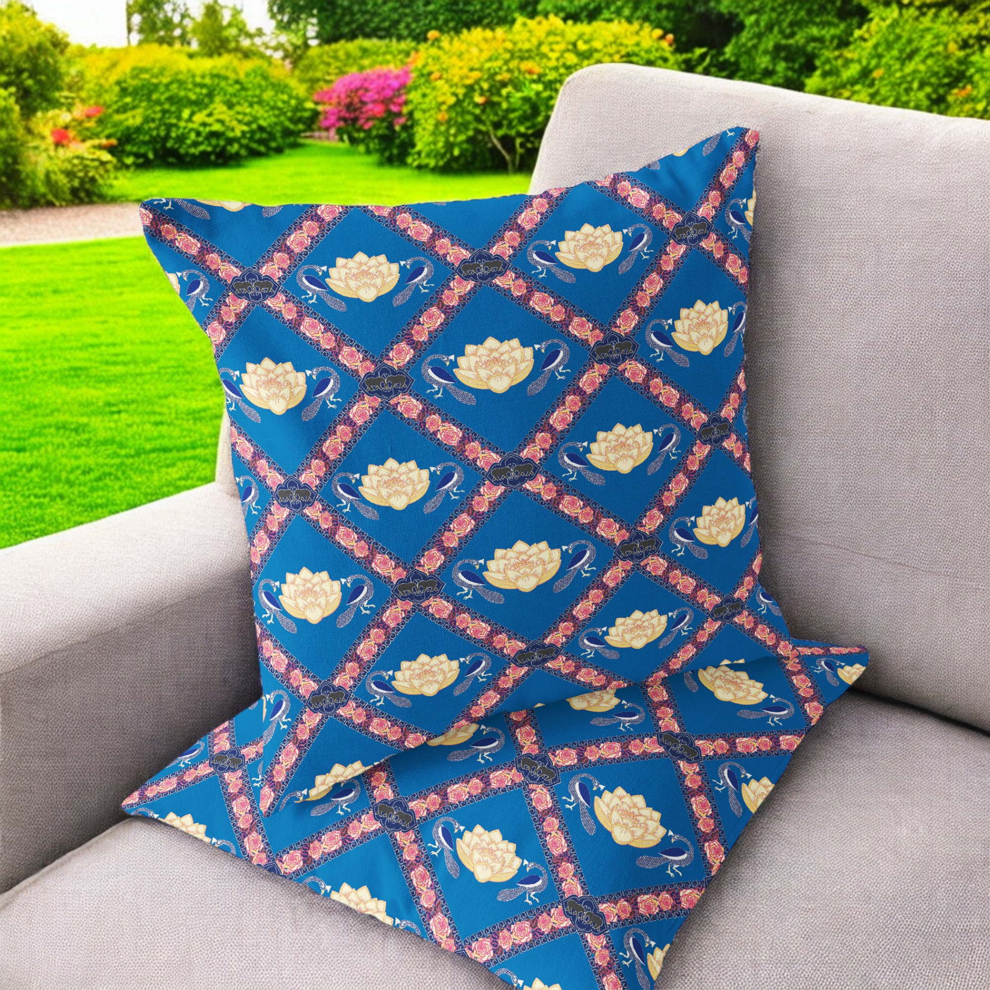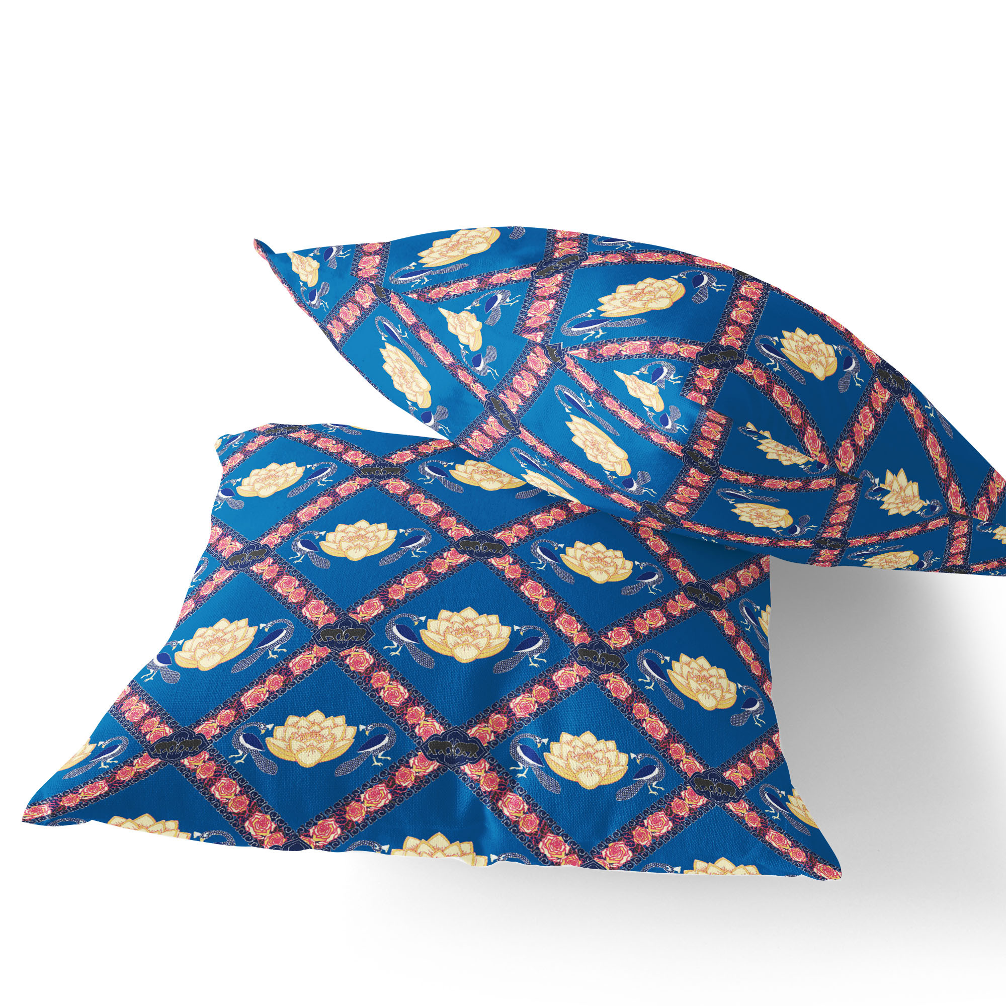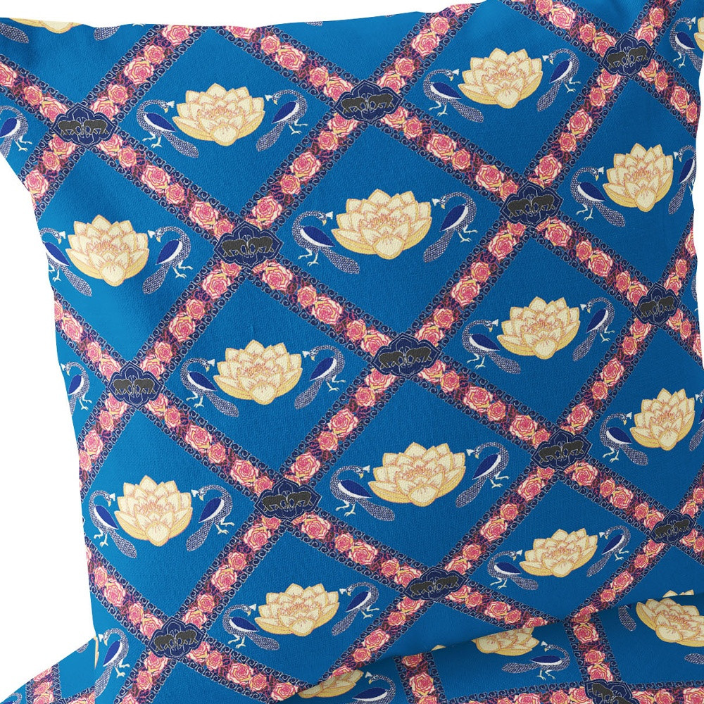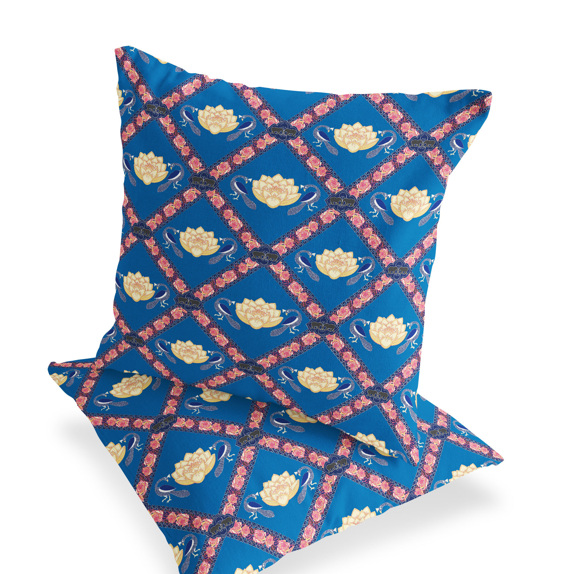 Lotus Peacock Rose Indoor/Outdoor Set of 2 Pillows in Blue Yellow Pink