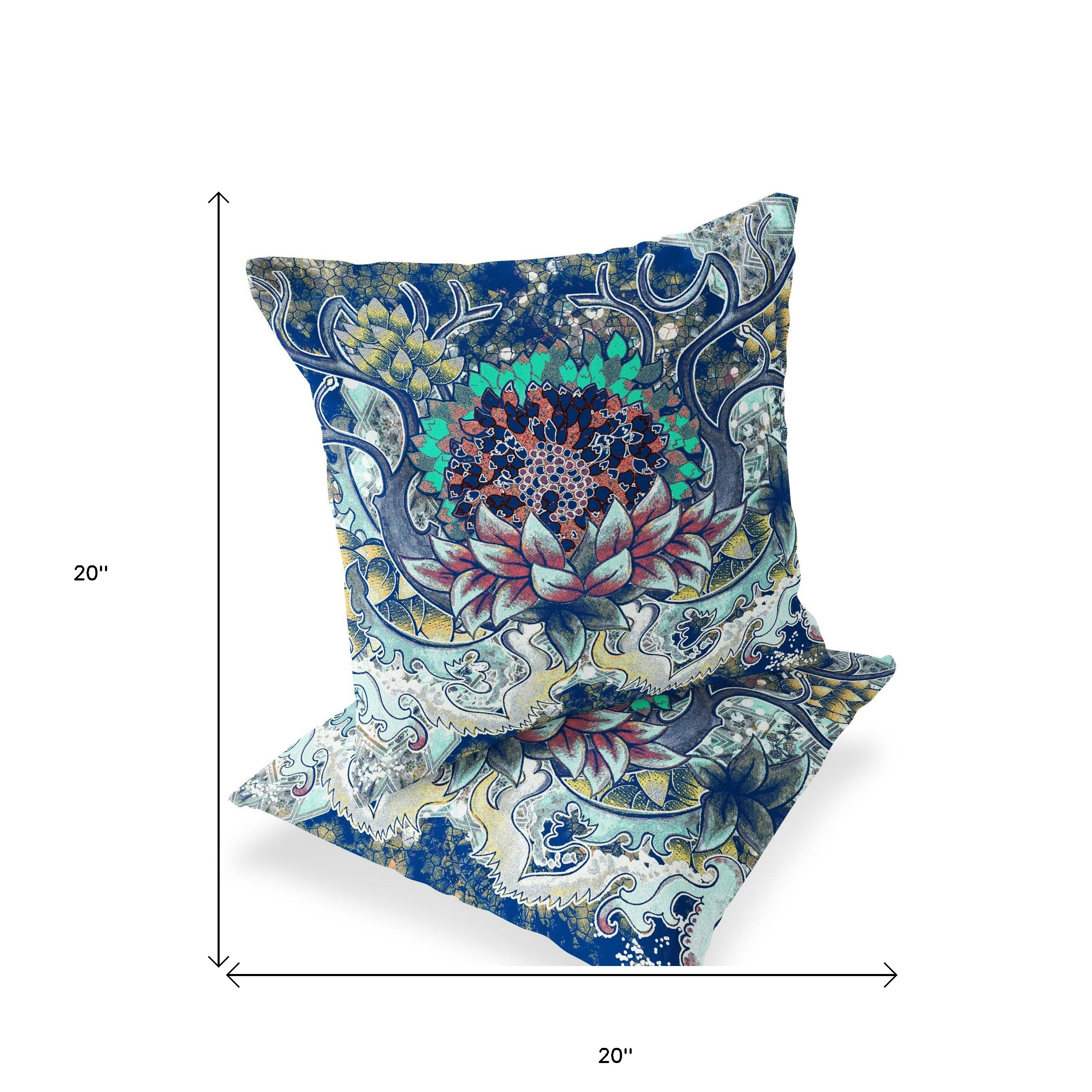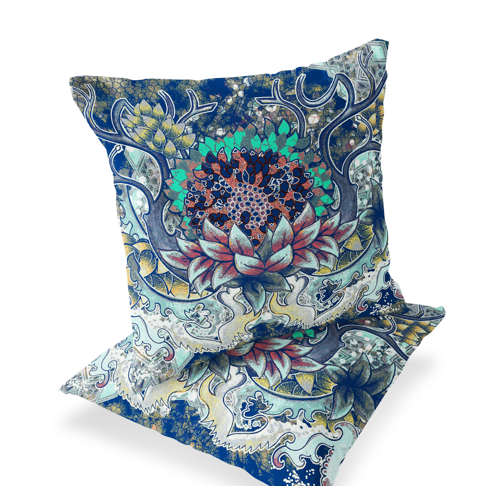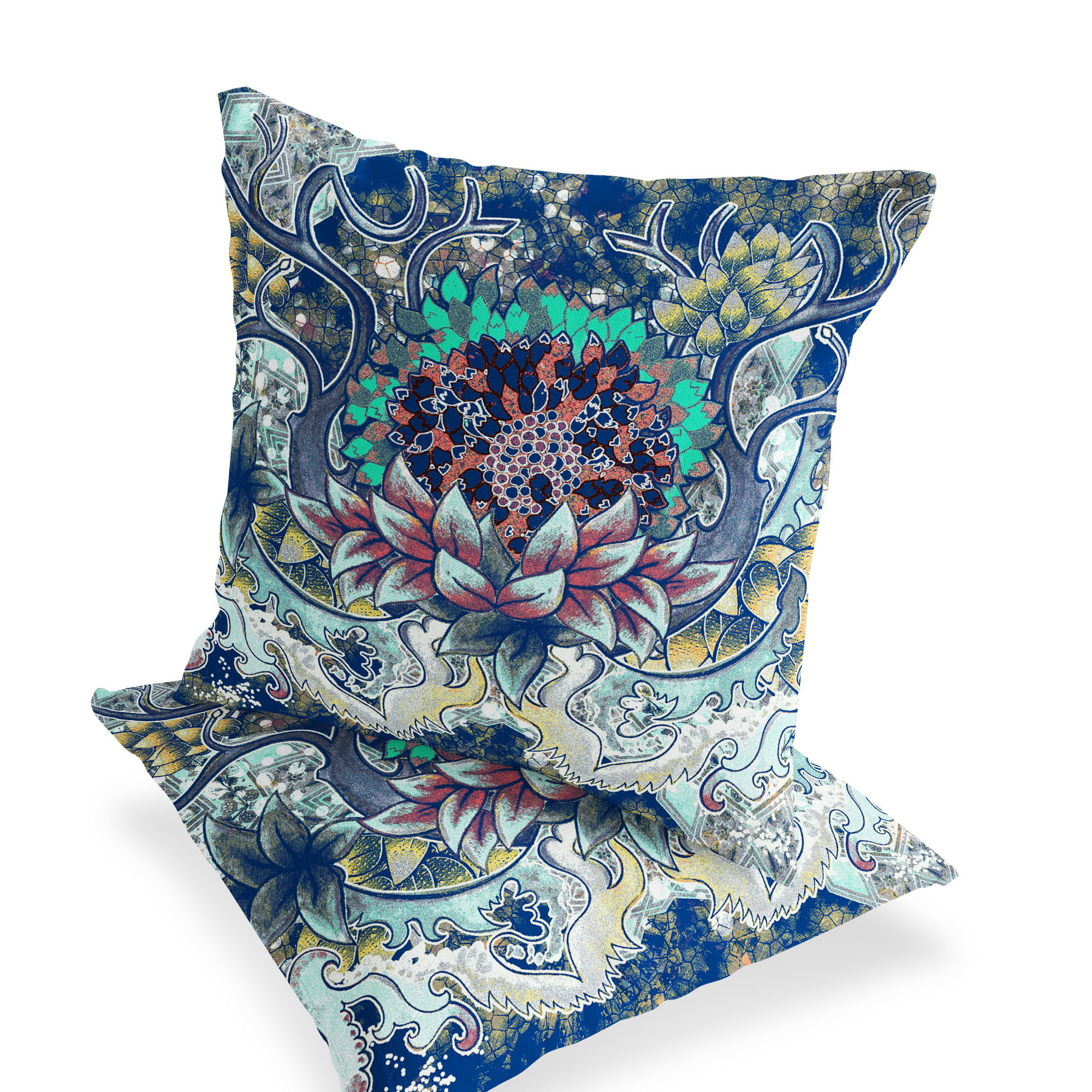 Set of Two Blue Botanical Indoor Outdoor Throw Pillow