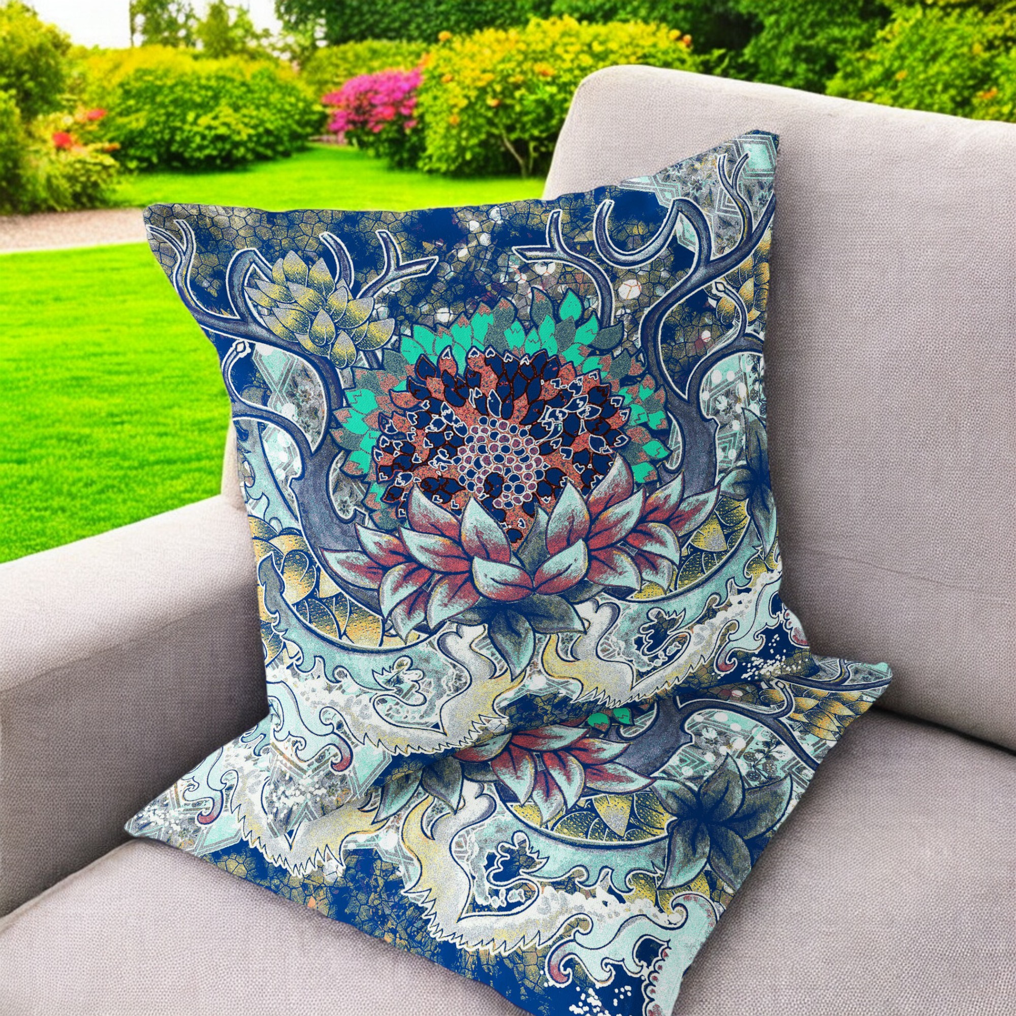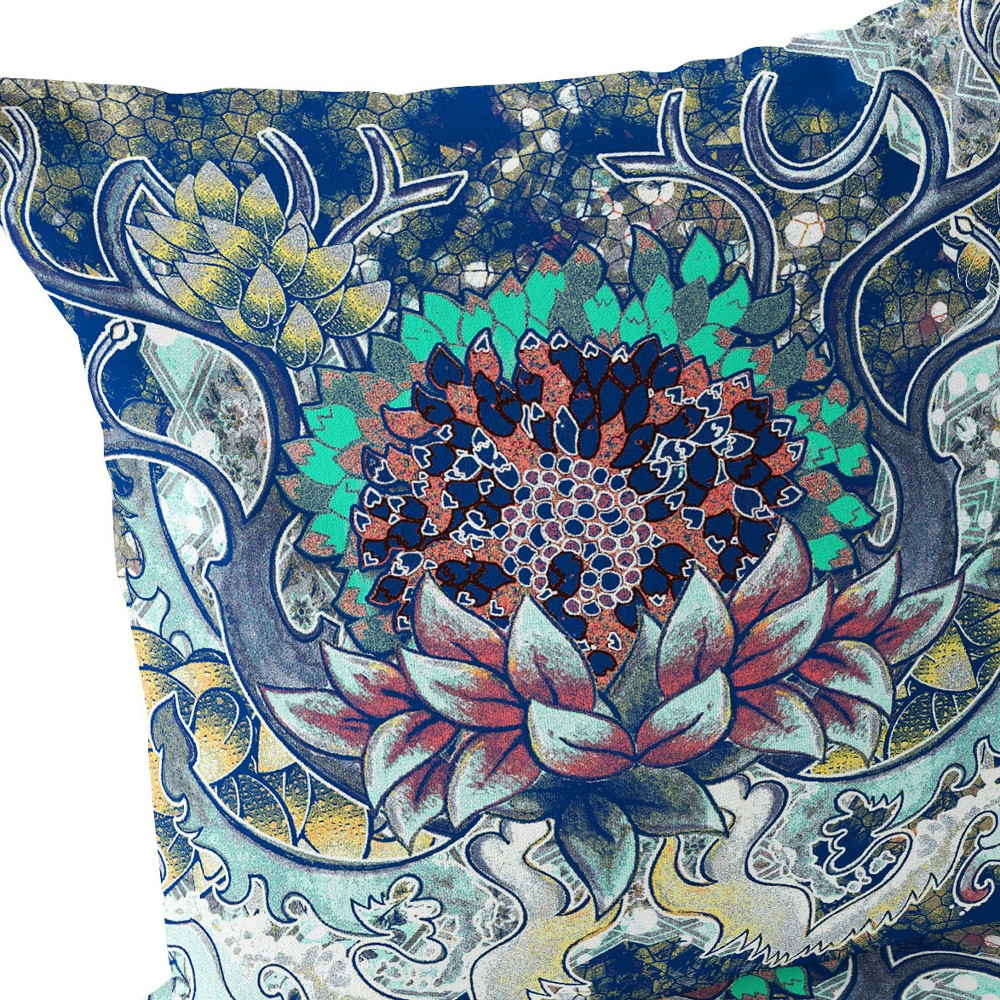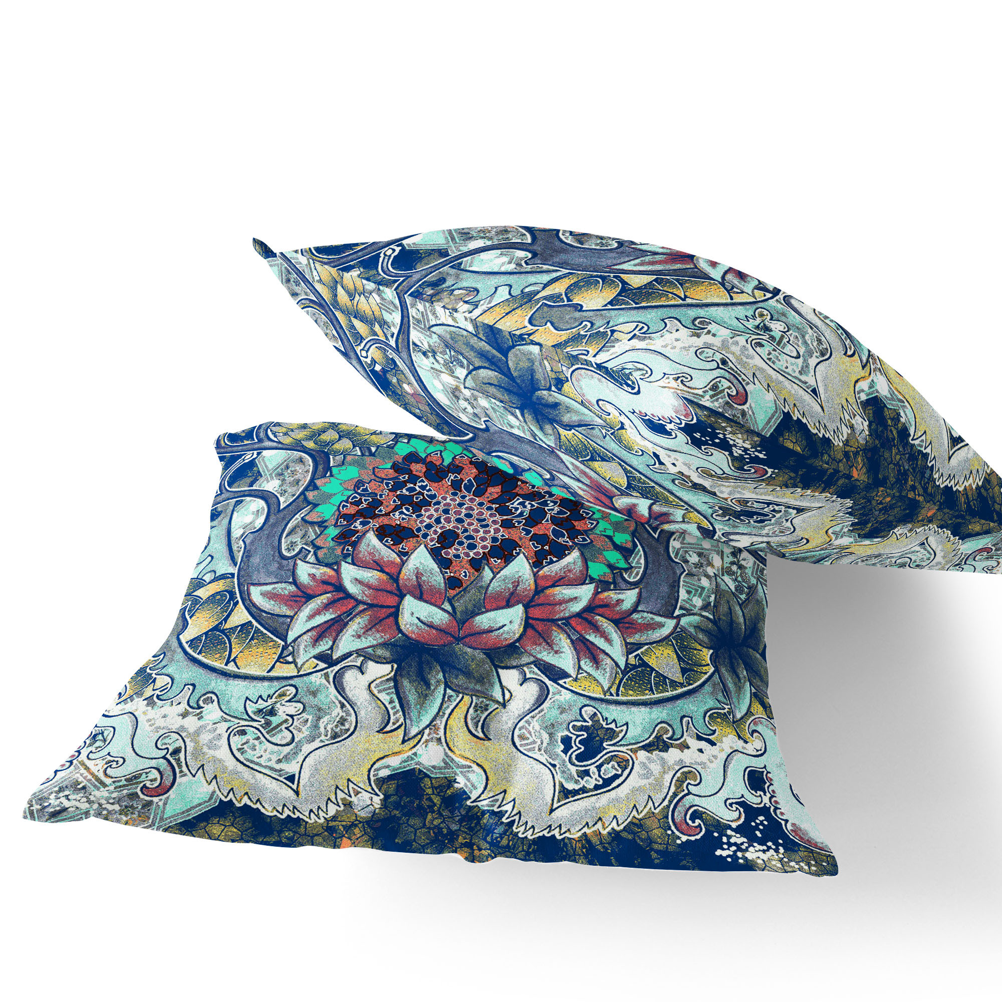 Set of Two Blue Botanical Indoor Outdoor Throw Pillow