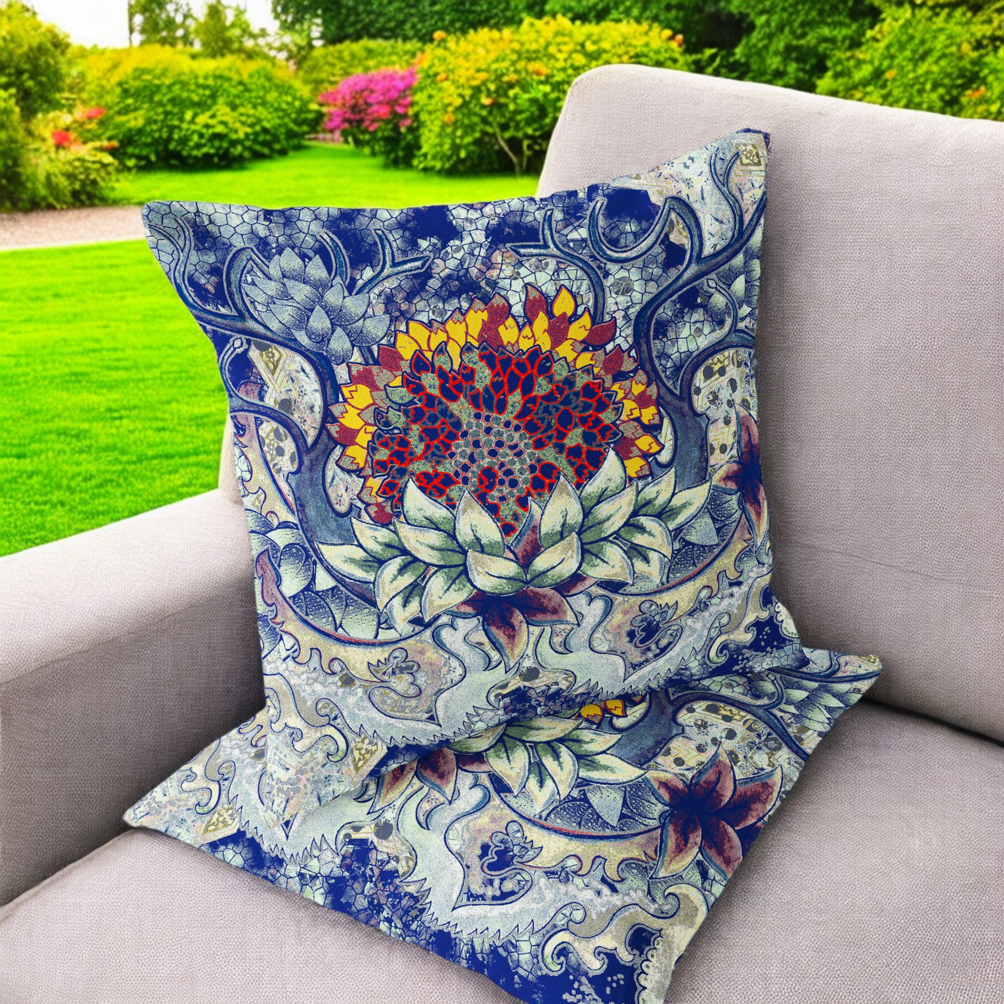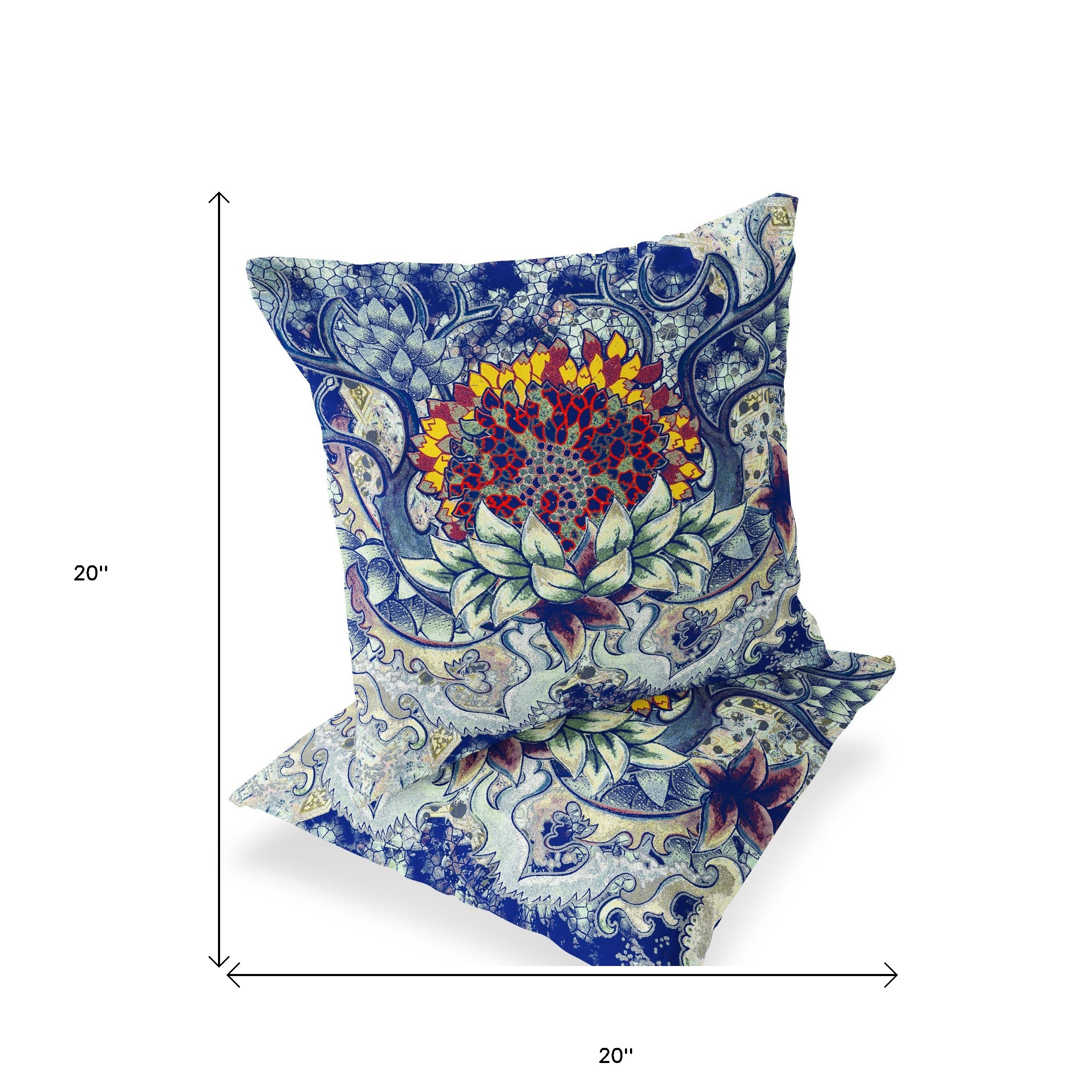 Set of Two Blue Botanical Indoor Outdoor Throw Pillow