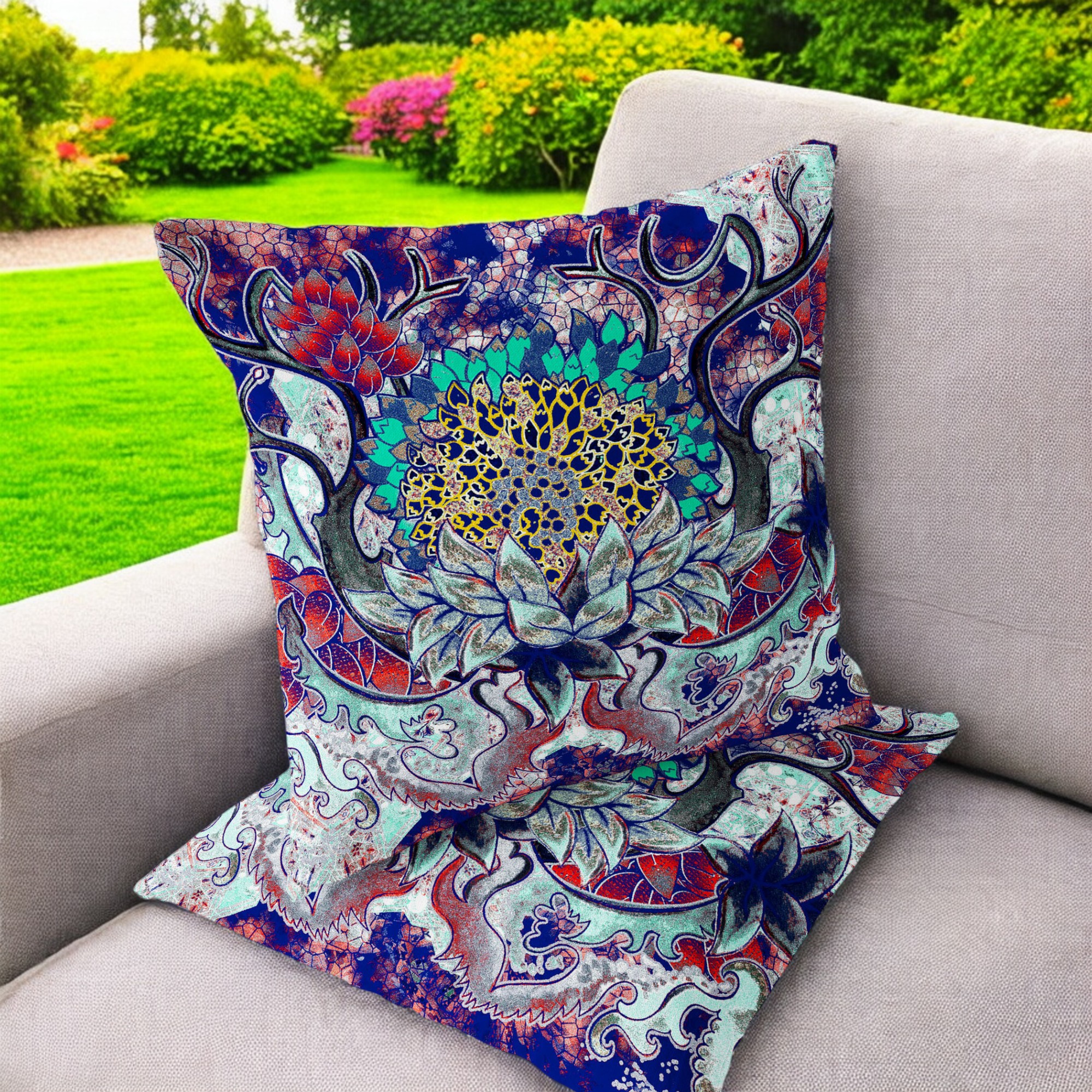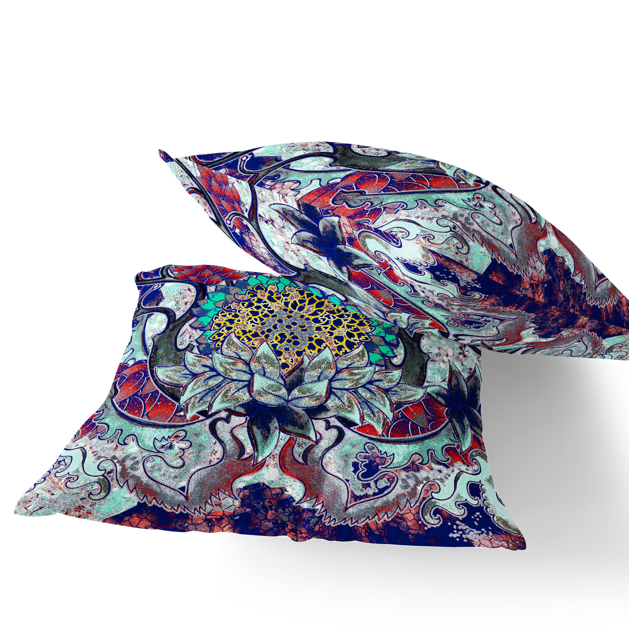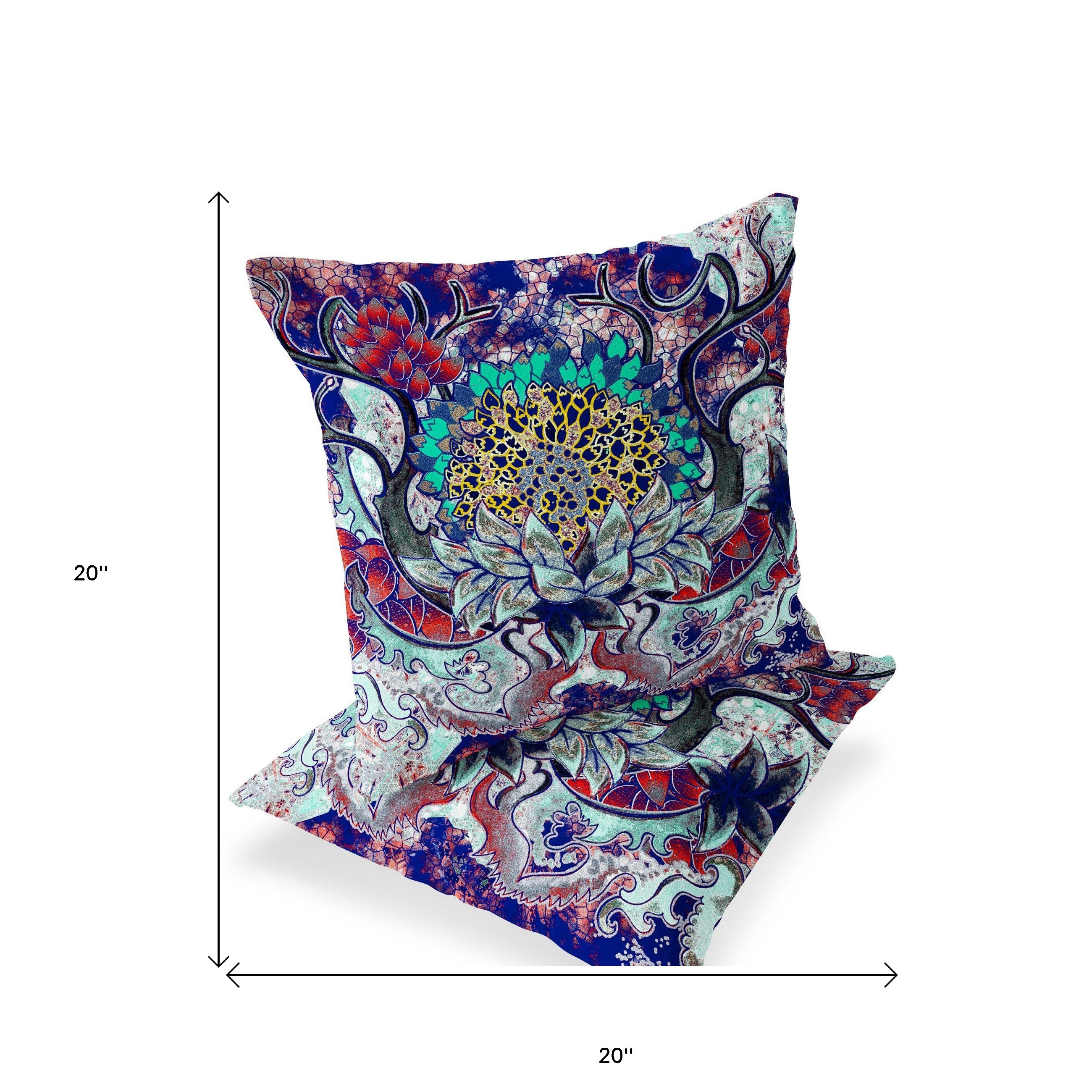 Set of Two Blue Botanical Indoor Outdoor Throw Pillow