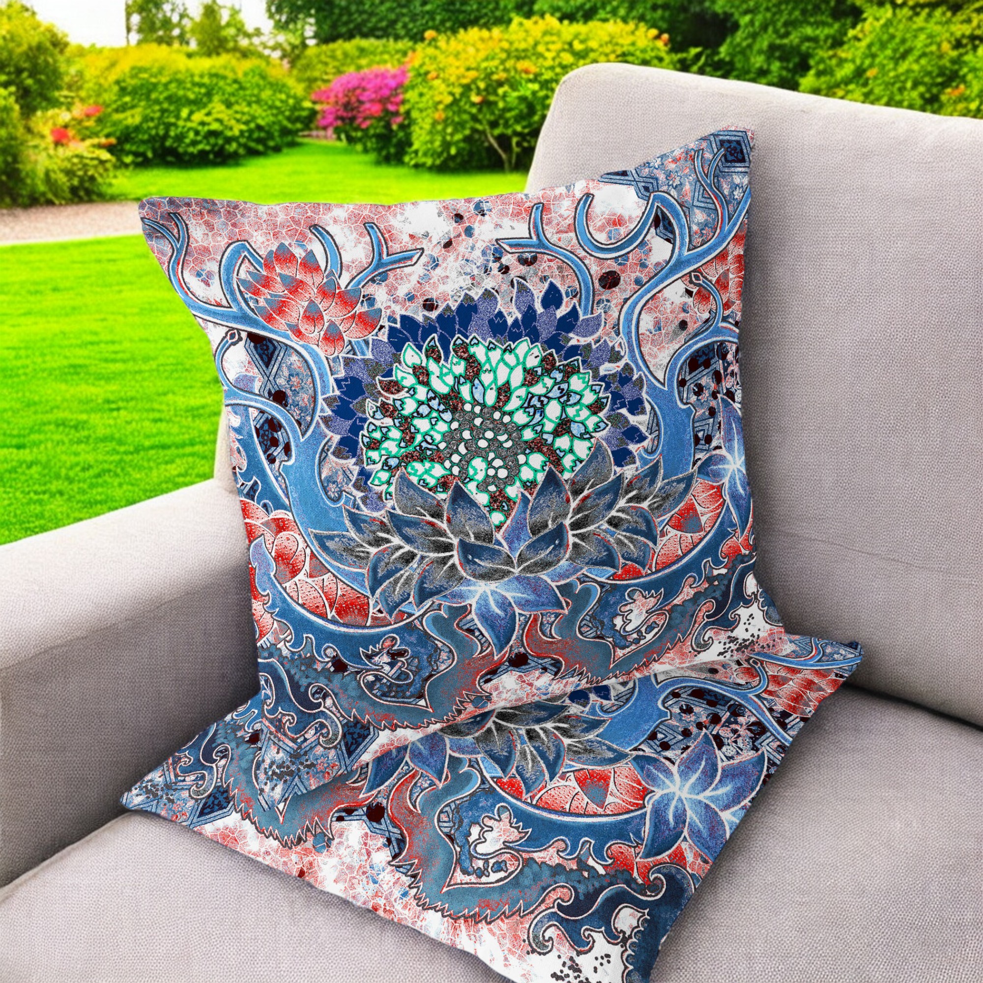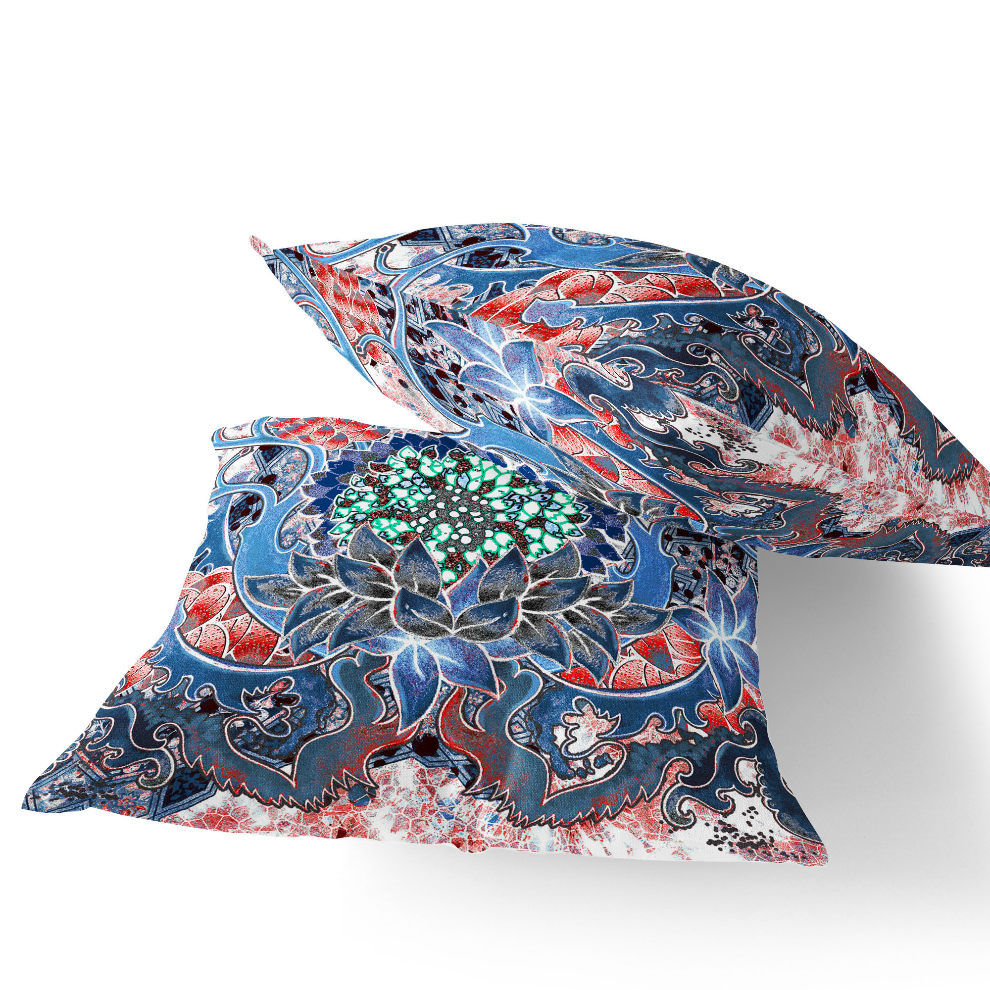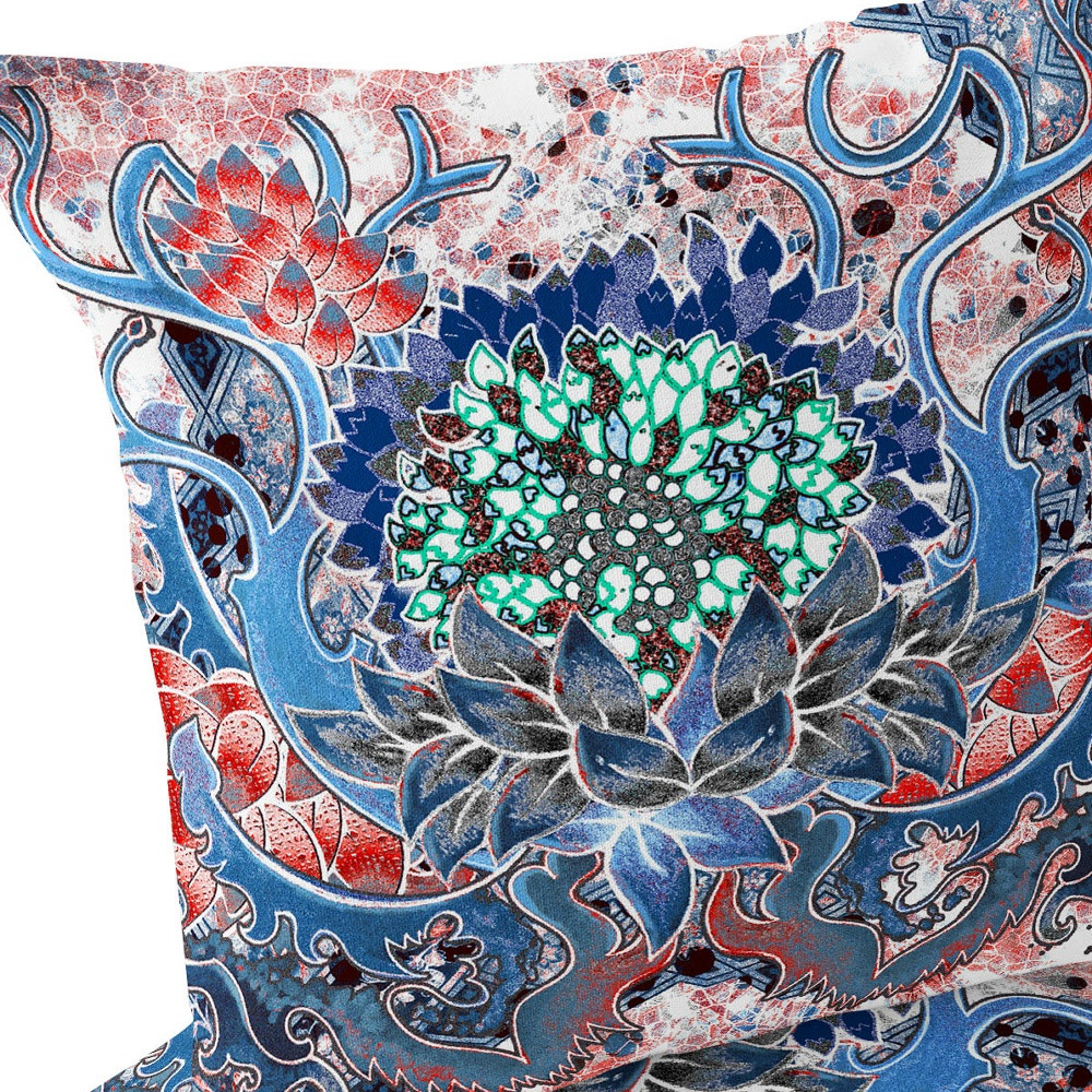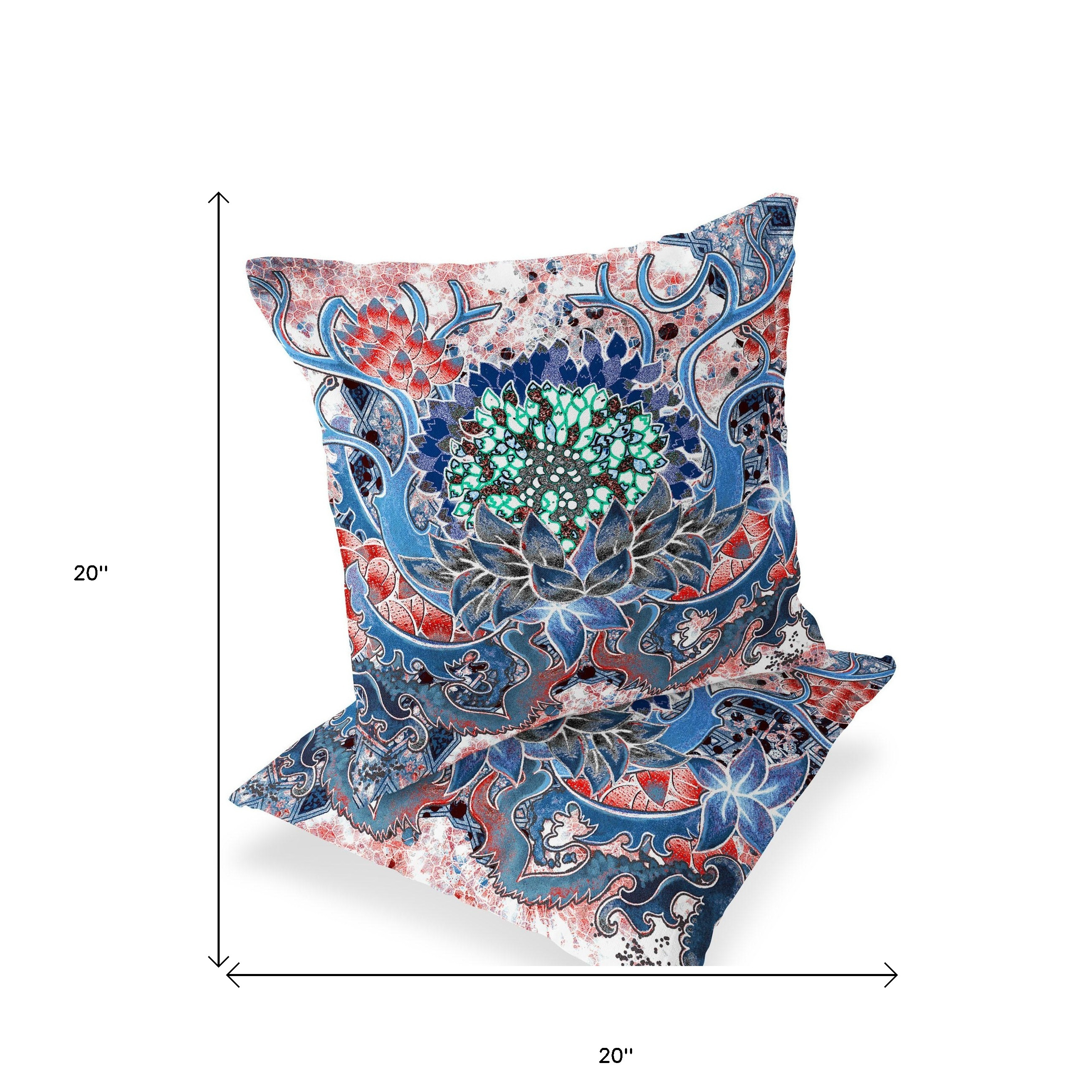 Set of Two Blue Botanical Indoor Outdoor Throw Pillow