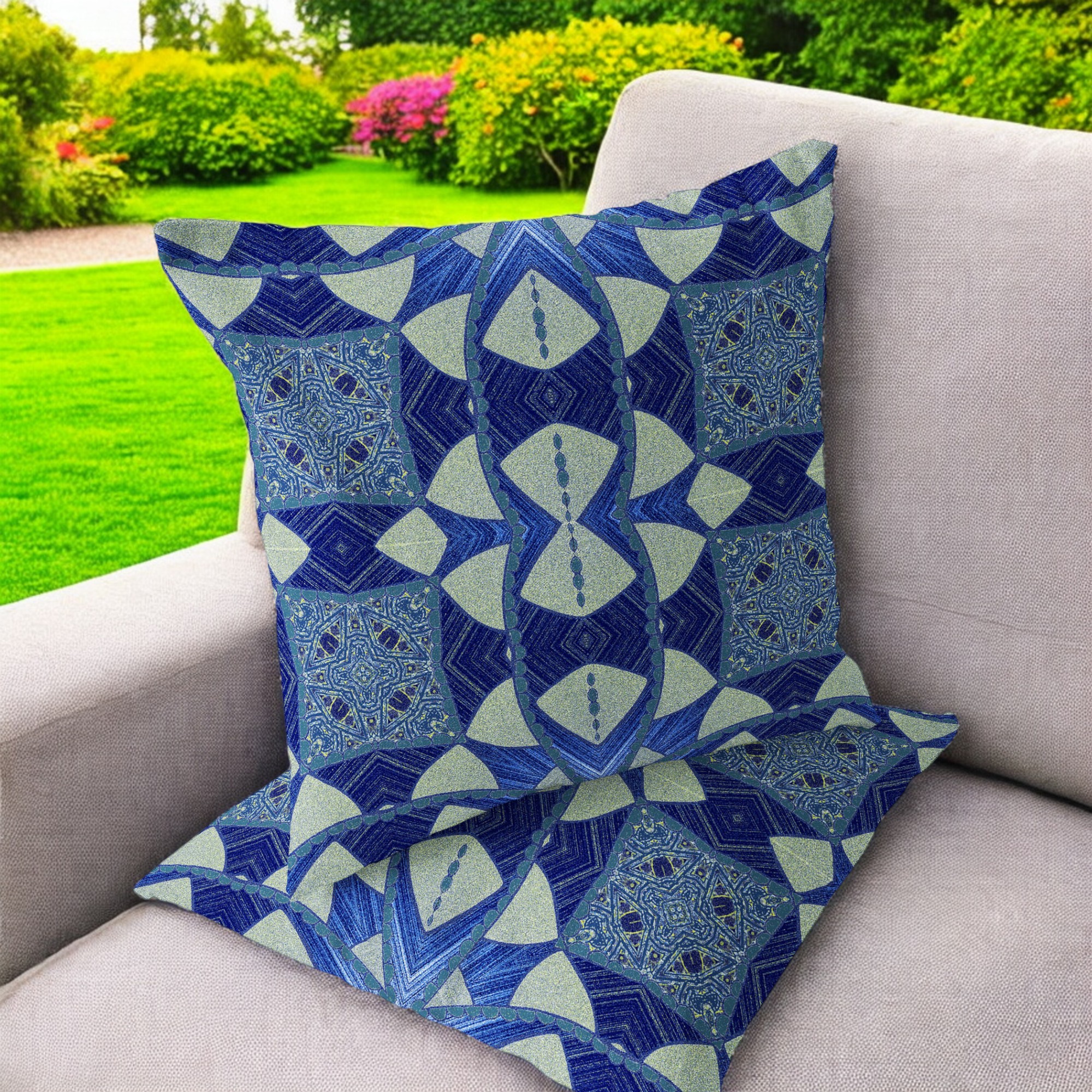 Set of Two Blue Geometric Indoor Outdoor Throw Pillow