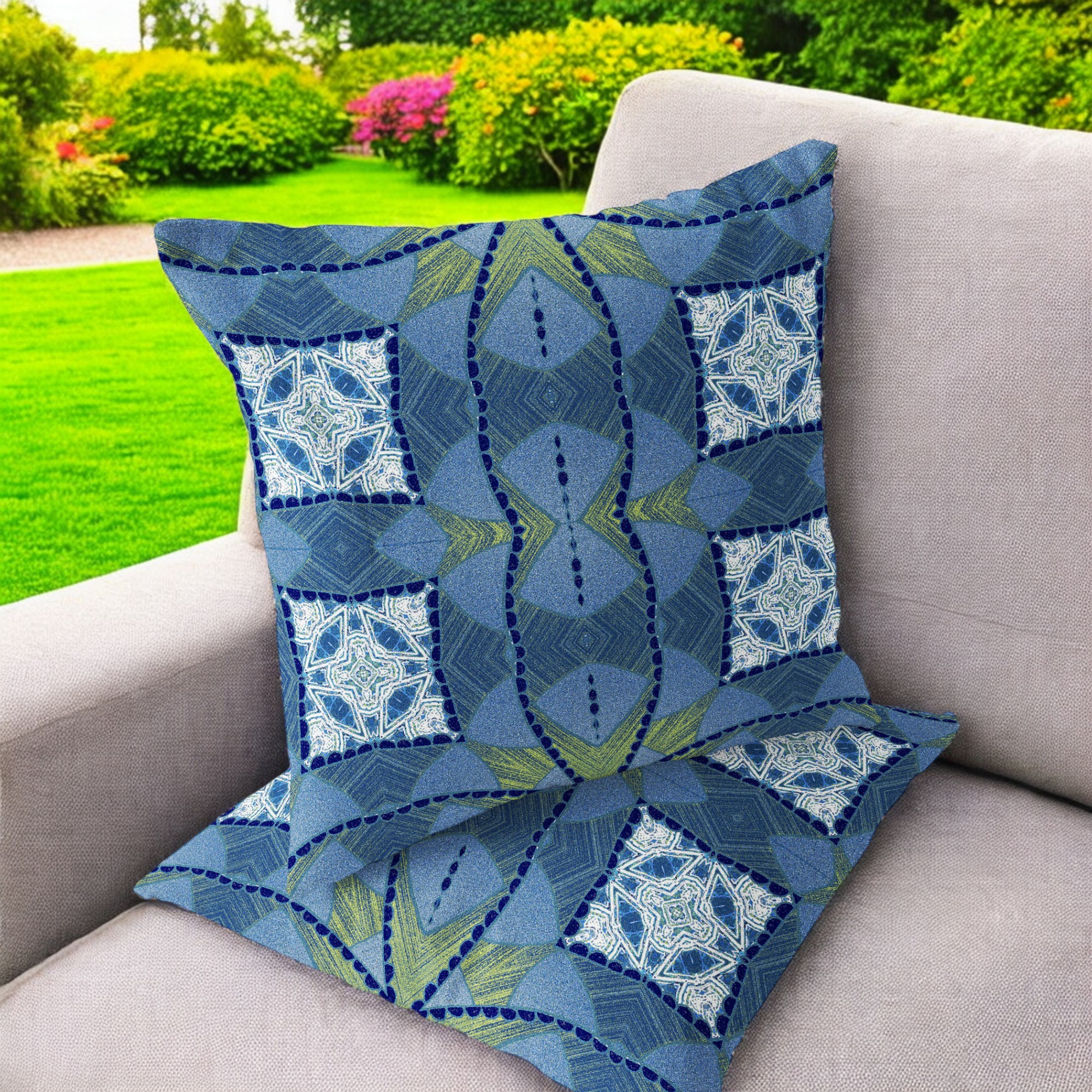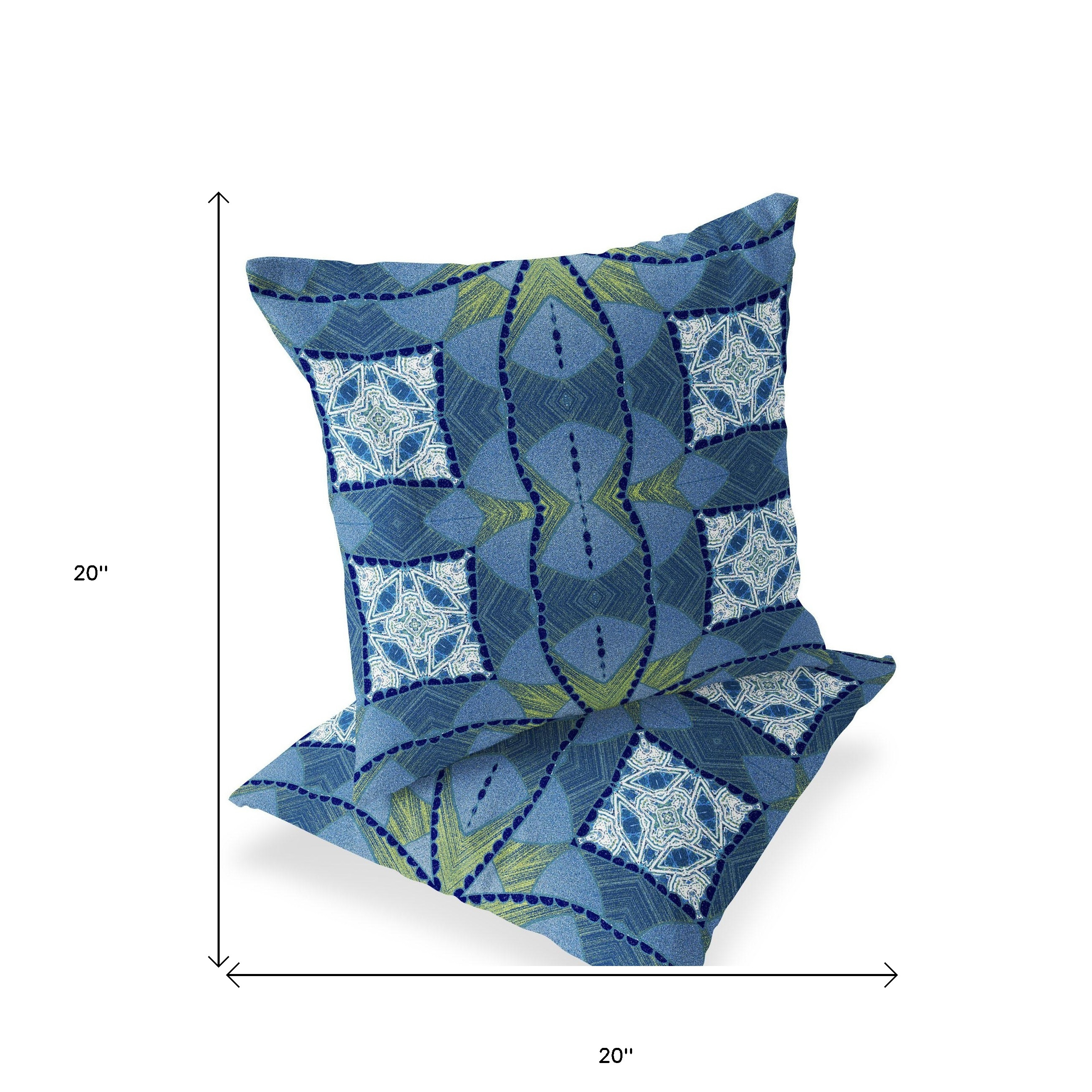 Set of Two Blue Geometric Indoor Outdoor Throw Pillow