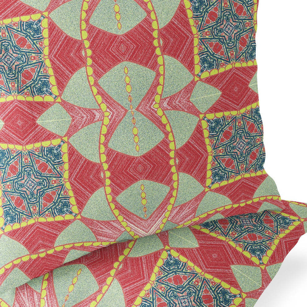 Cosmic Circle Sprays Indoor/Outdoor Set of 2 Pillows in Red Yellow Dark Aqua