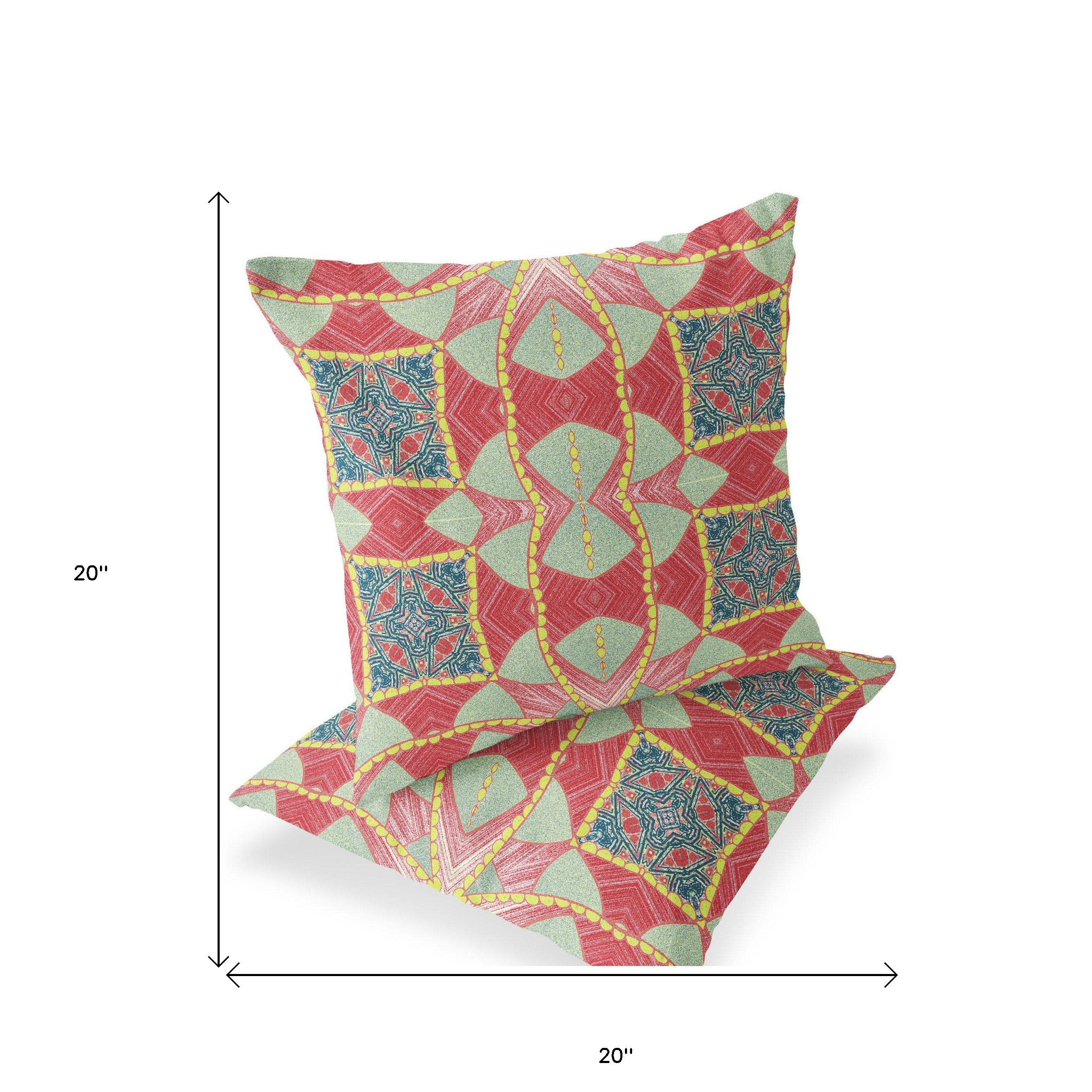 Set of Two Red Geometric Indoor Outdoor Throw Pillow