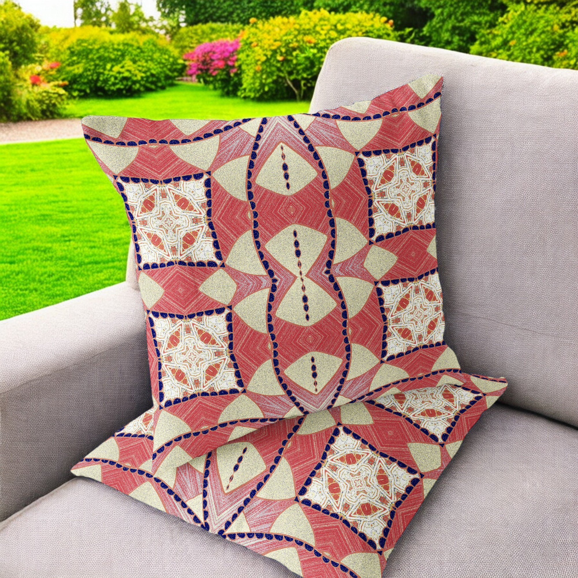 Set of Two Red Geometric Indoor Outdoor Throw Pillow