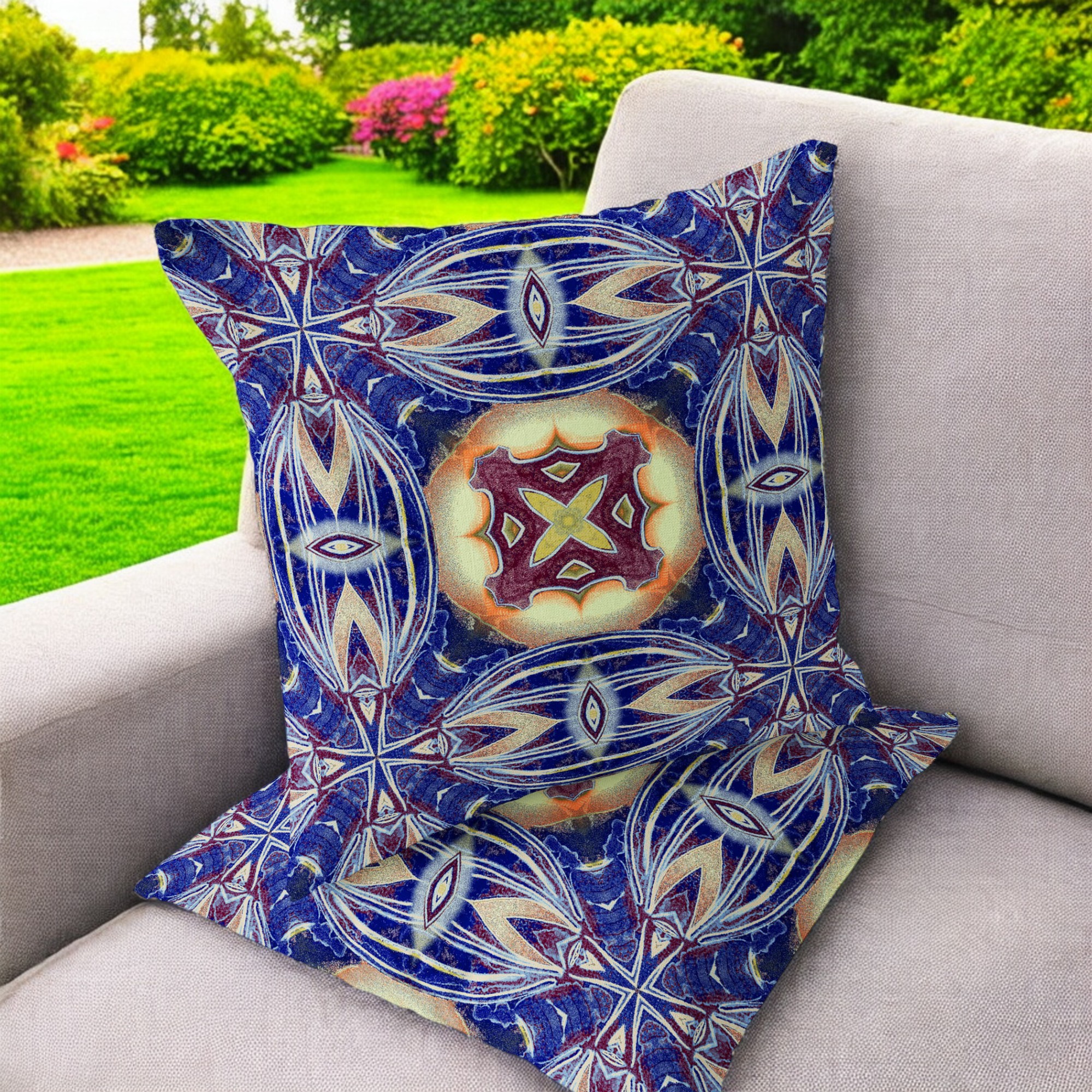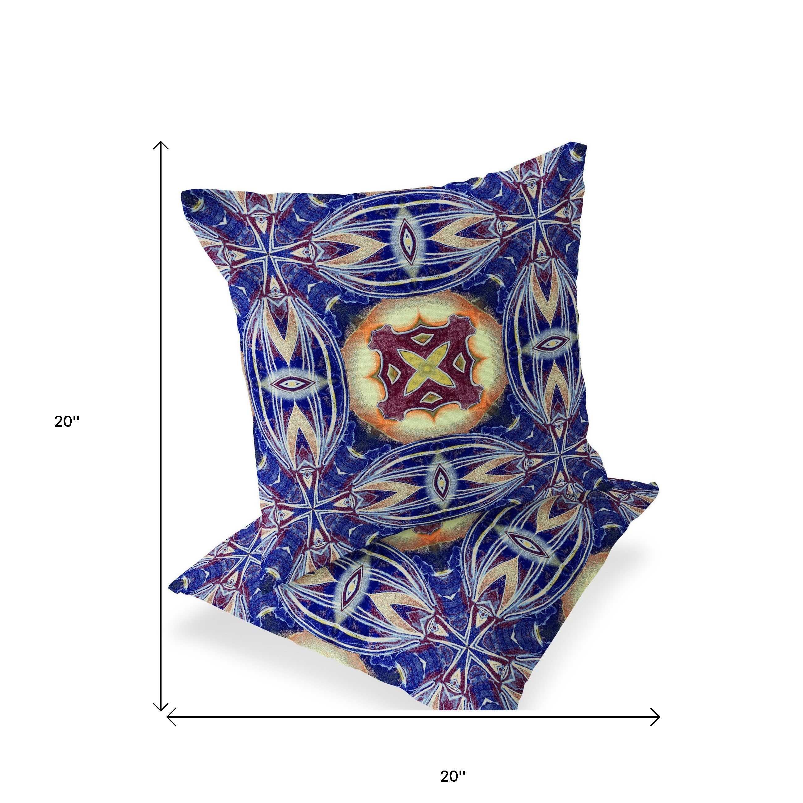 Set of Two Blue Abstract Indoor Outdoor Throw Pillow