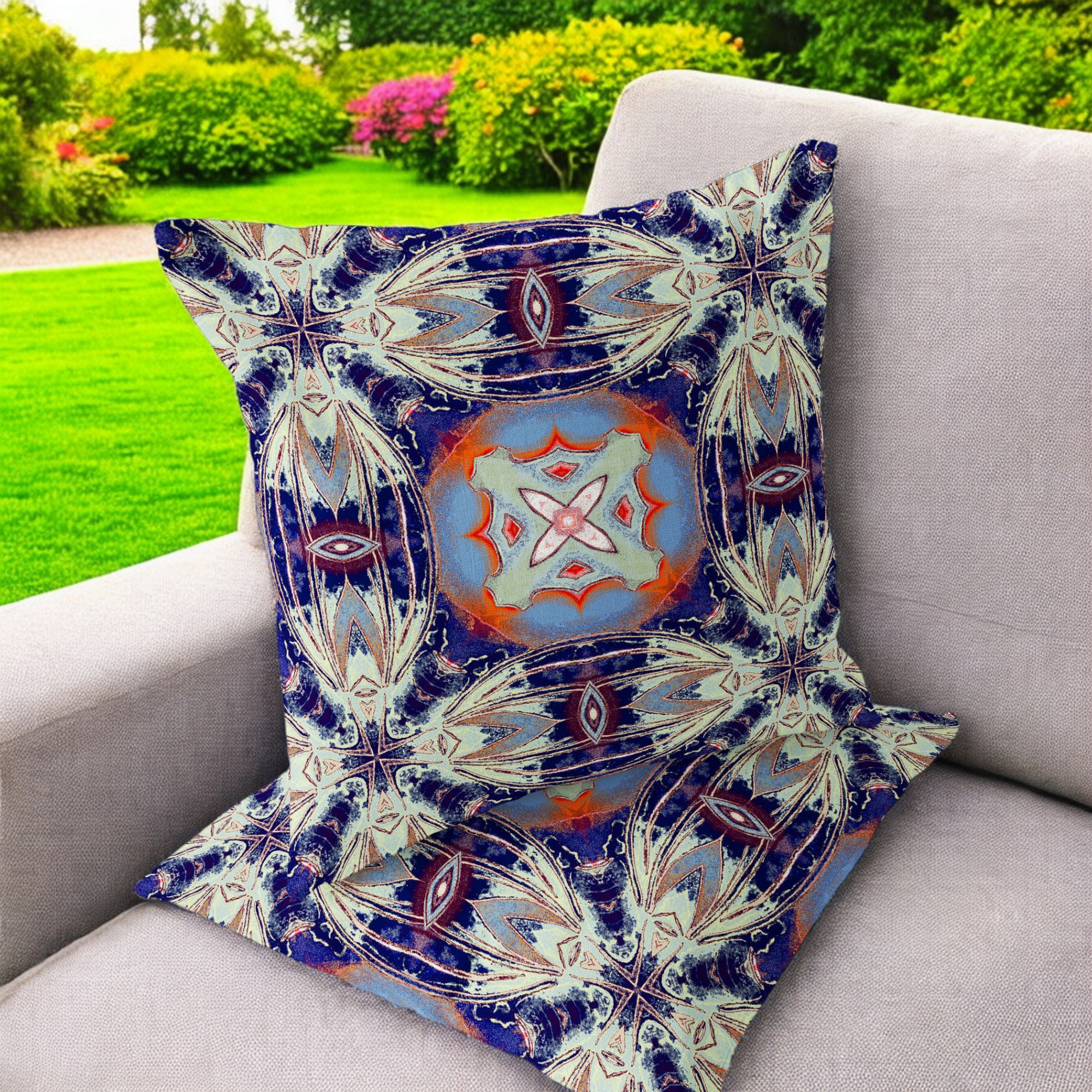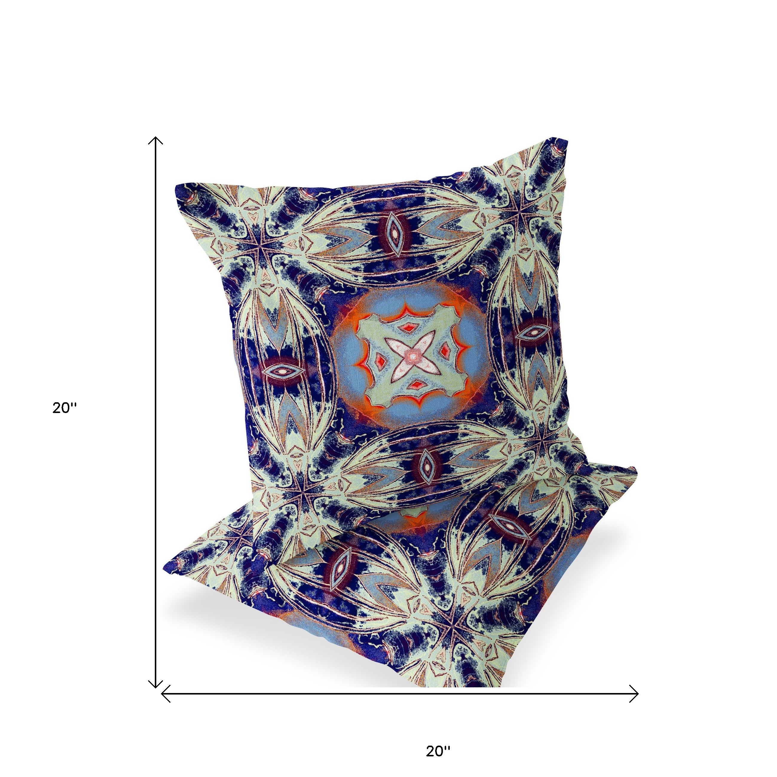Pastel Floral Squares Indoor/Outdoor Set of 2 Pillows in Cream Gray Indigo Light Blue Orange