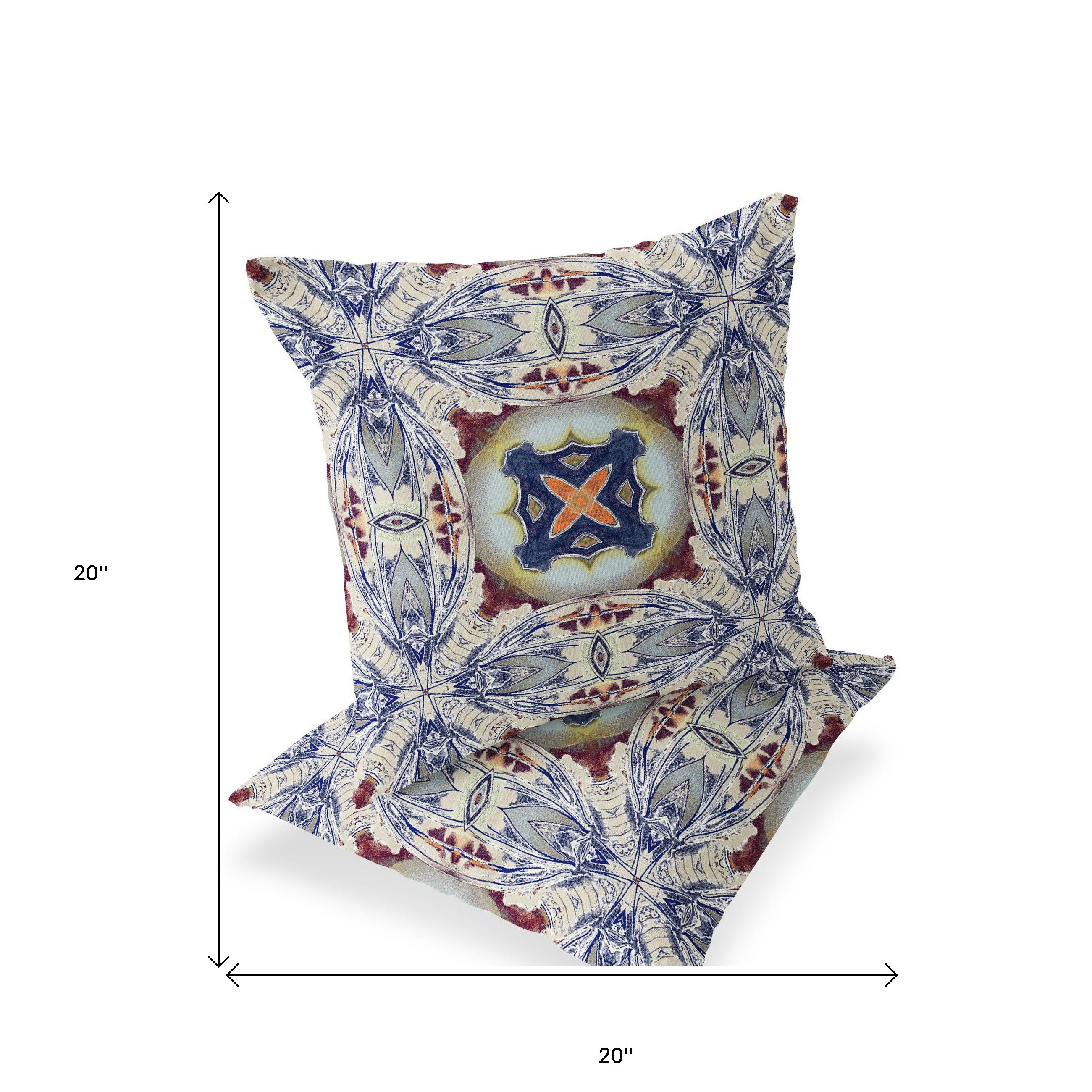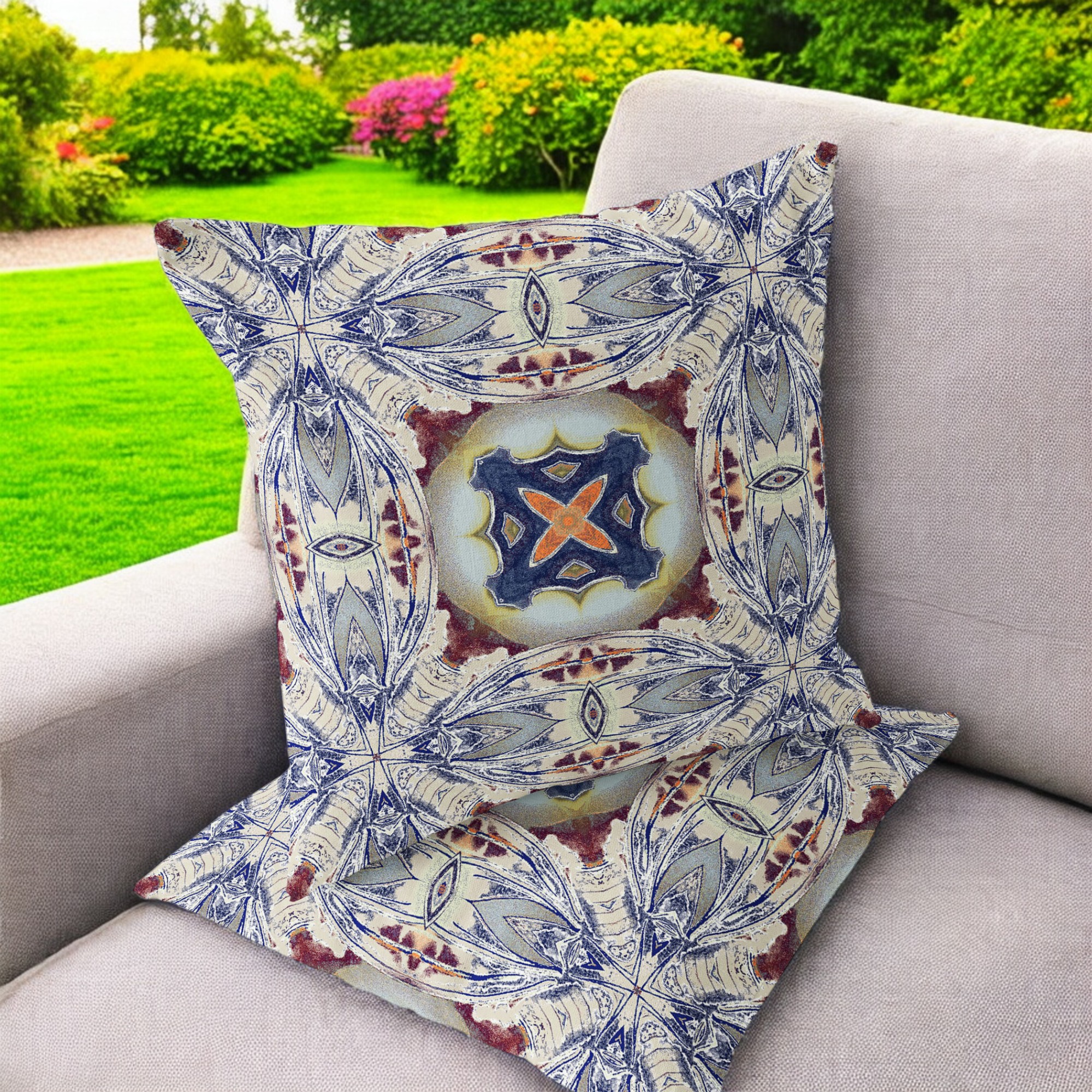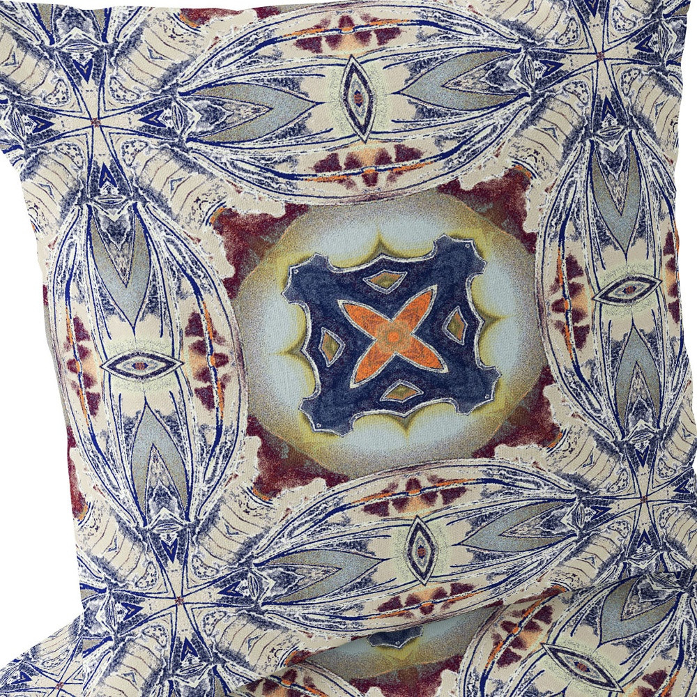 Pastel Floral Squares Indoor/Outdoor Set of 2 Pillows in Gray Brown Indigo