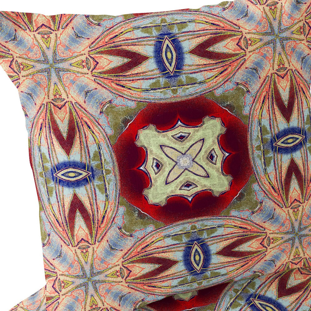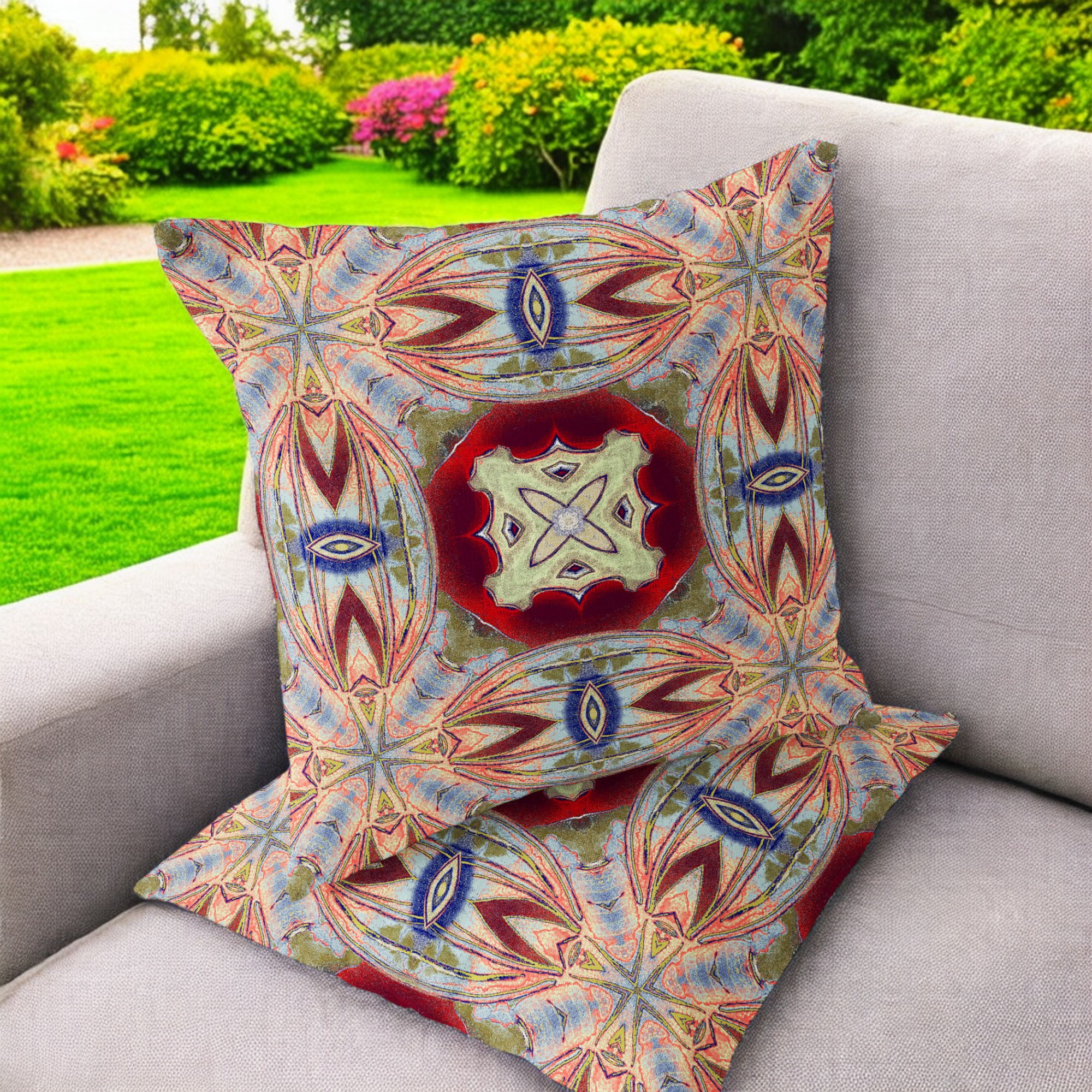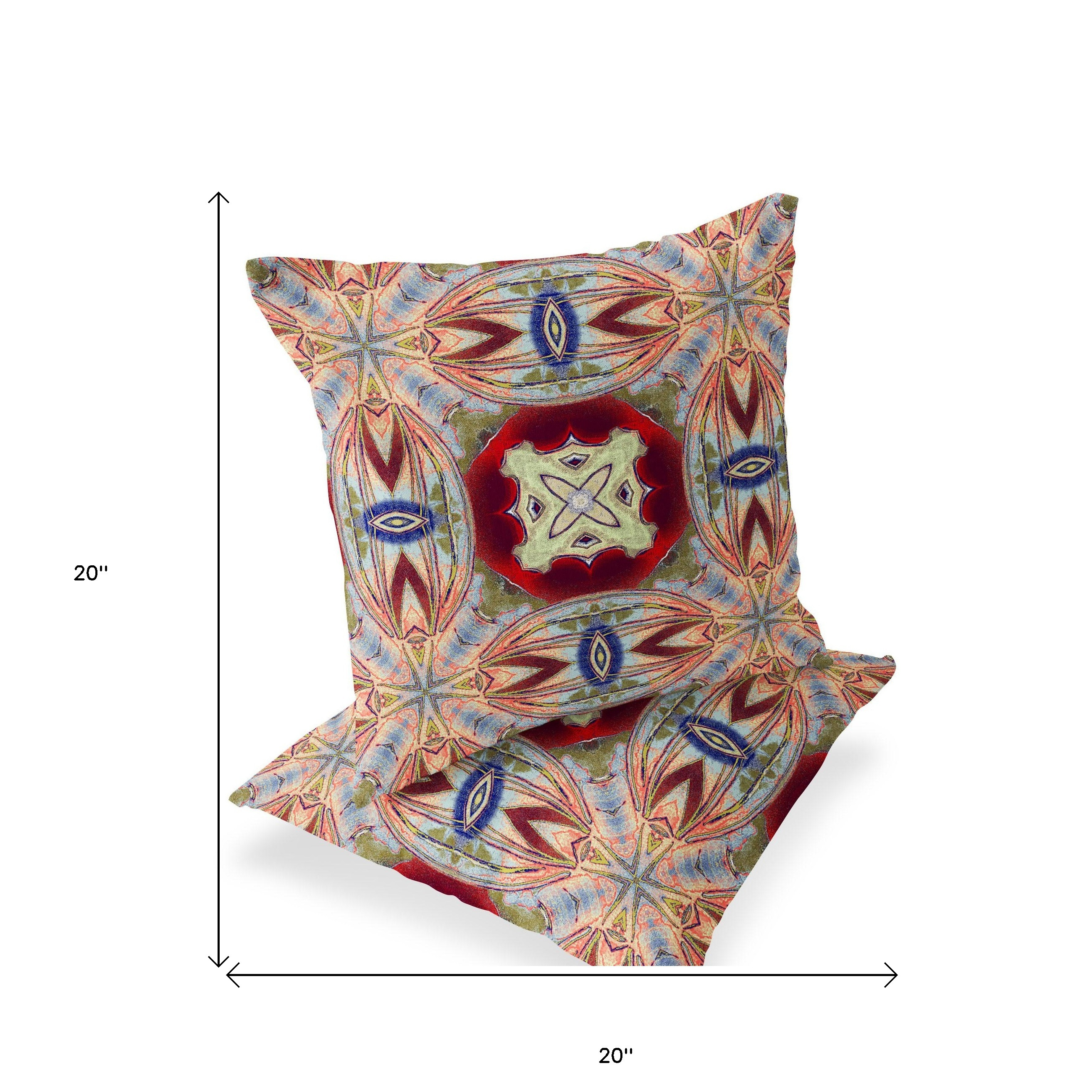 Pastel Floral Squares Indoor/Outdoor Set of 2 Pillows in Gray Green Magenta Red