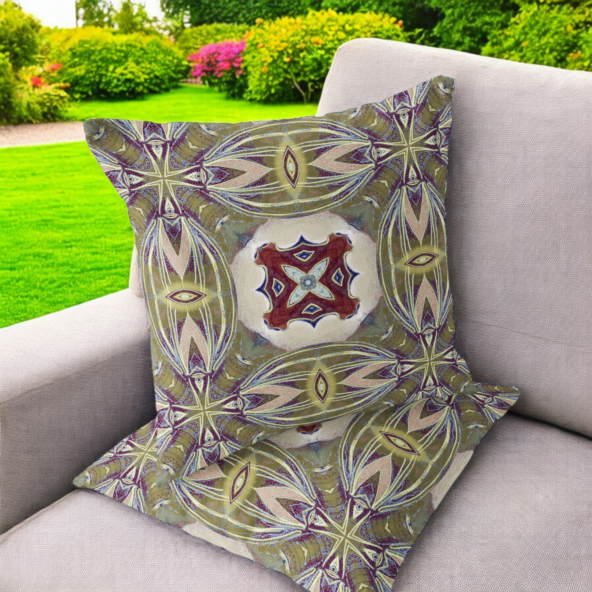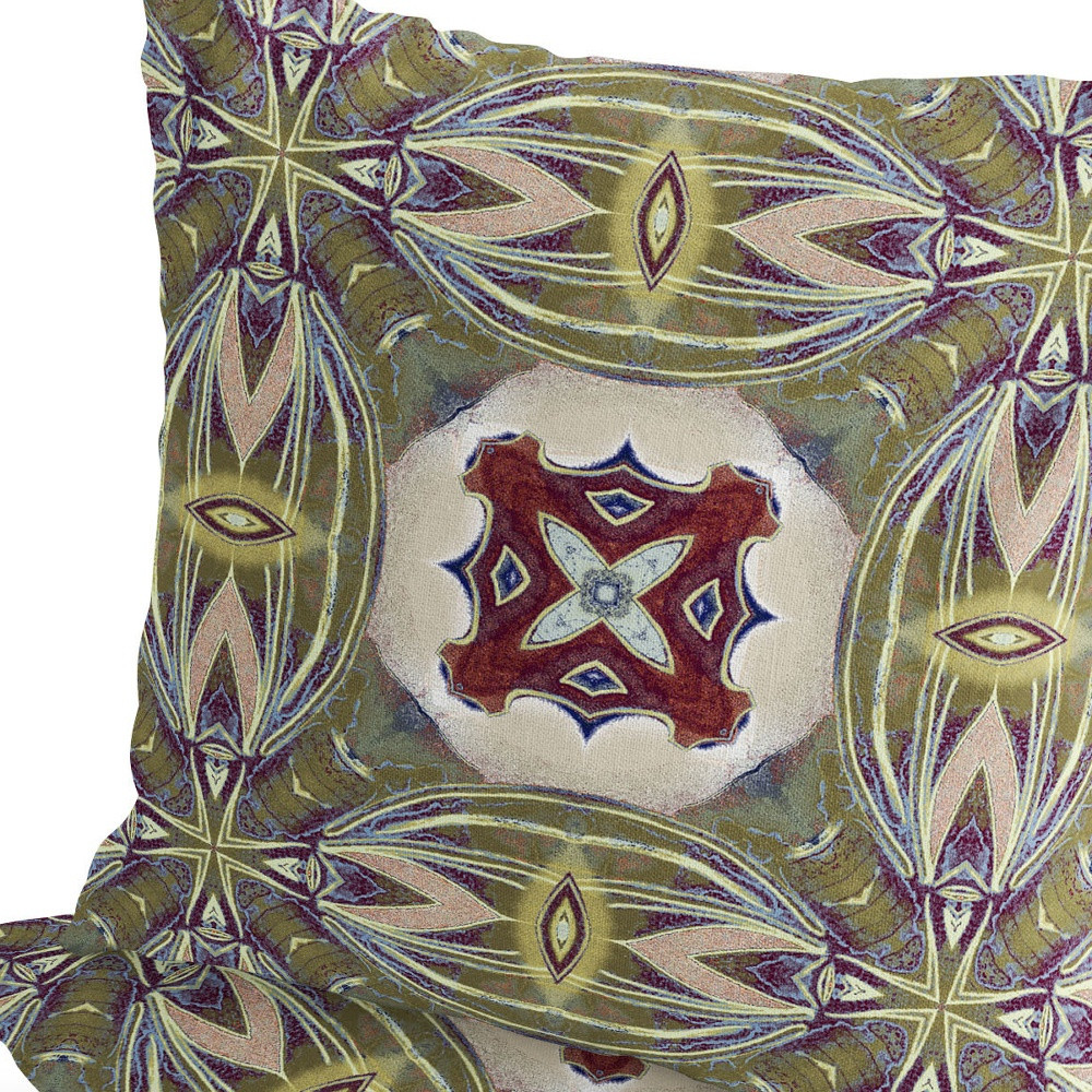 Pastel Floral Squares Indoor/Outdoor Set of 2 Pillows in Muted Green Cream Magenta