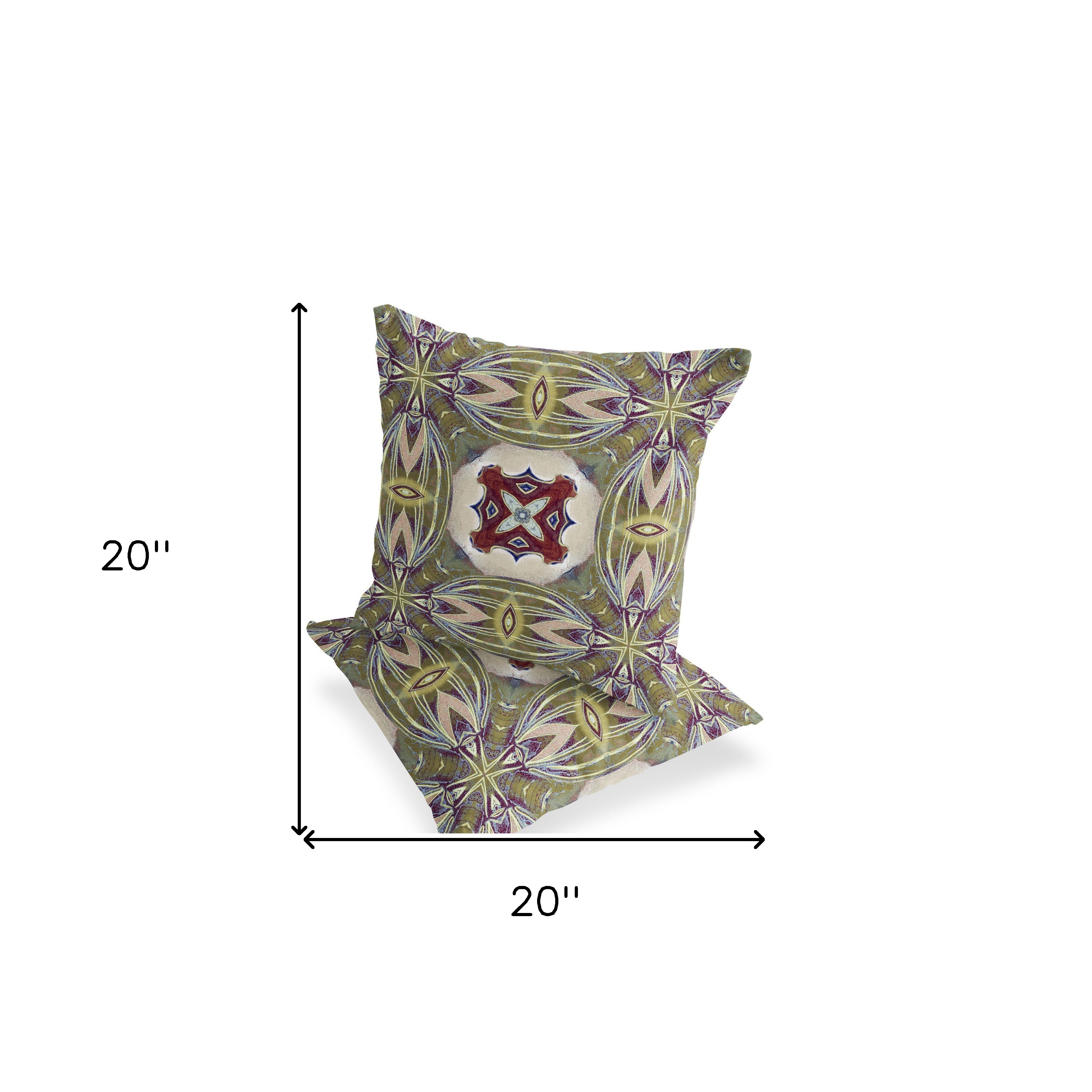 Set of Two Green Abstract Indoor Outdoor Throw Pillow