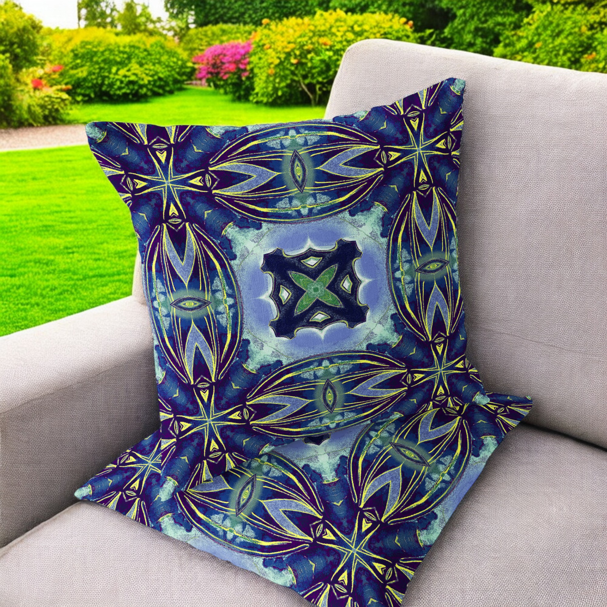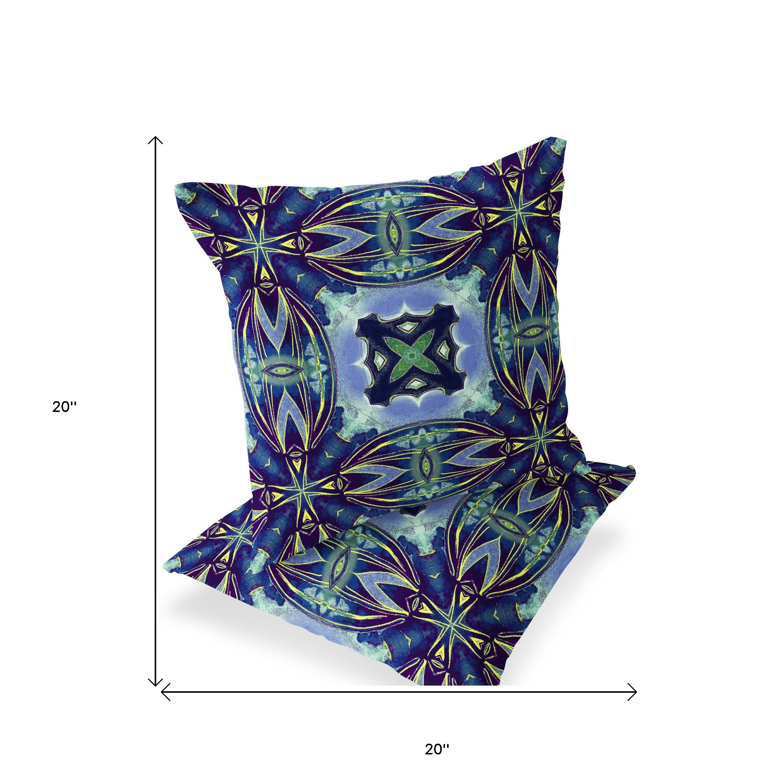 Set of Two Blue Abstract Indoor Outdoor Throw Pillow