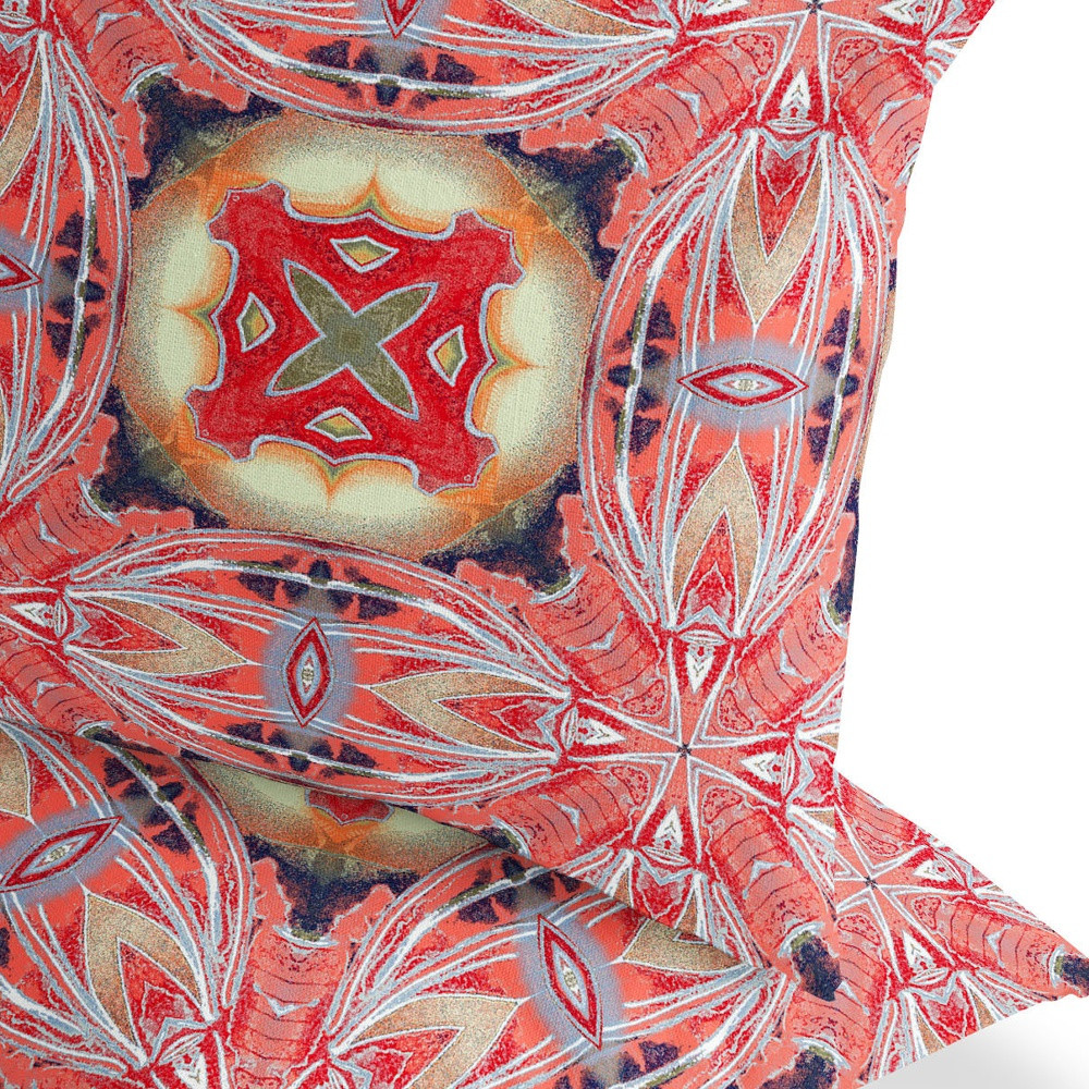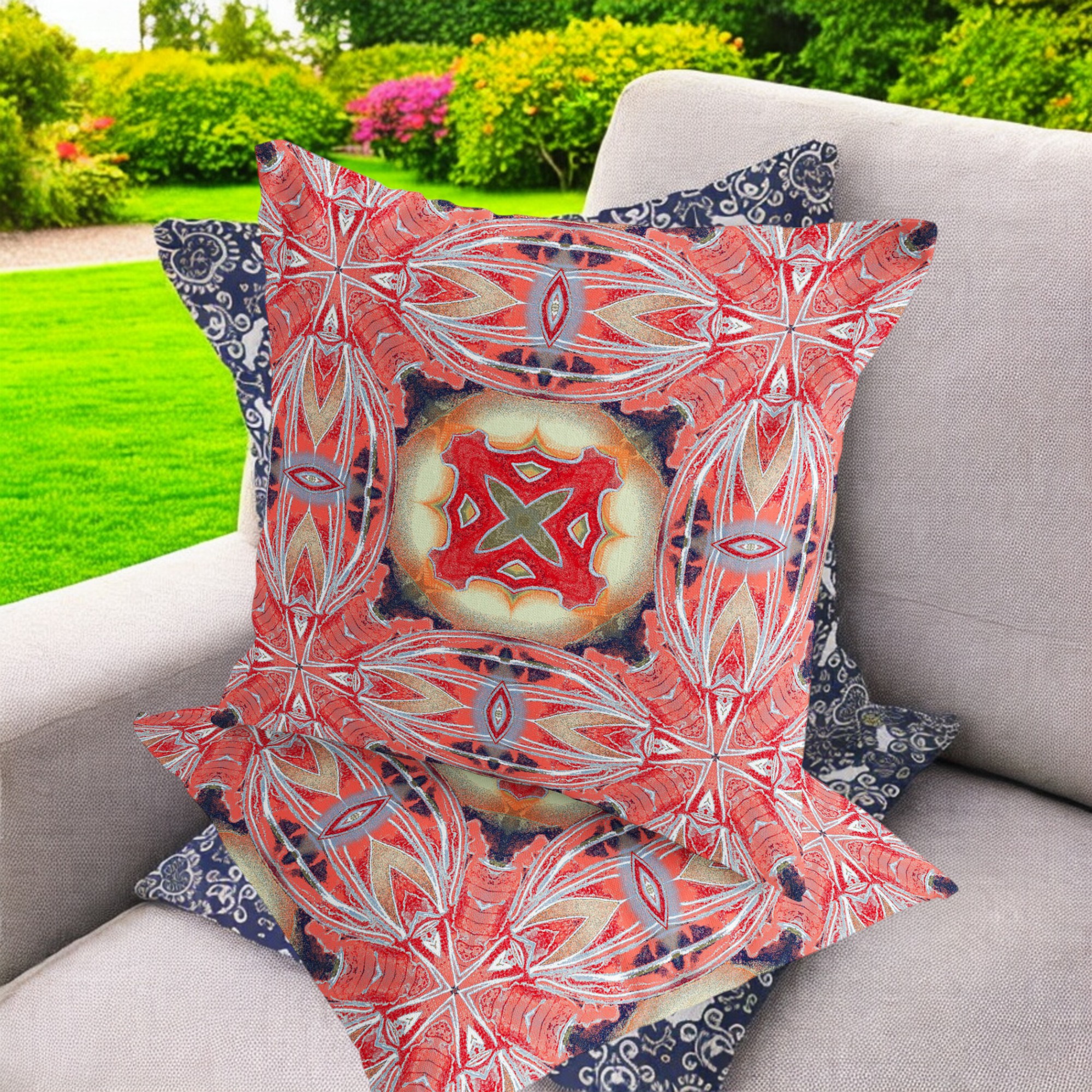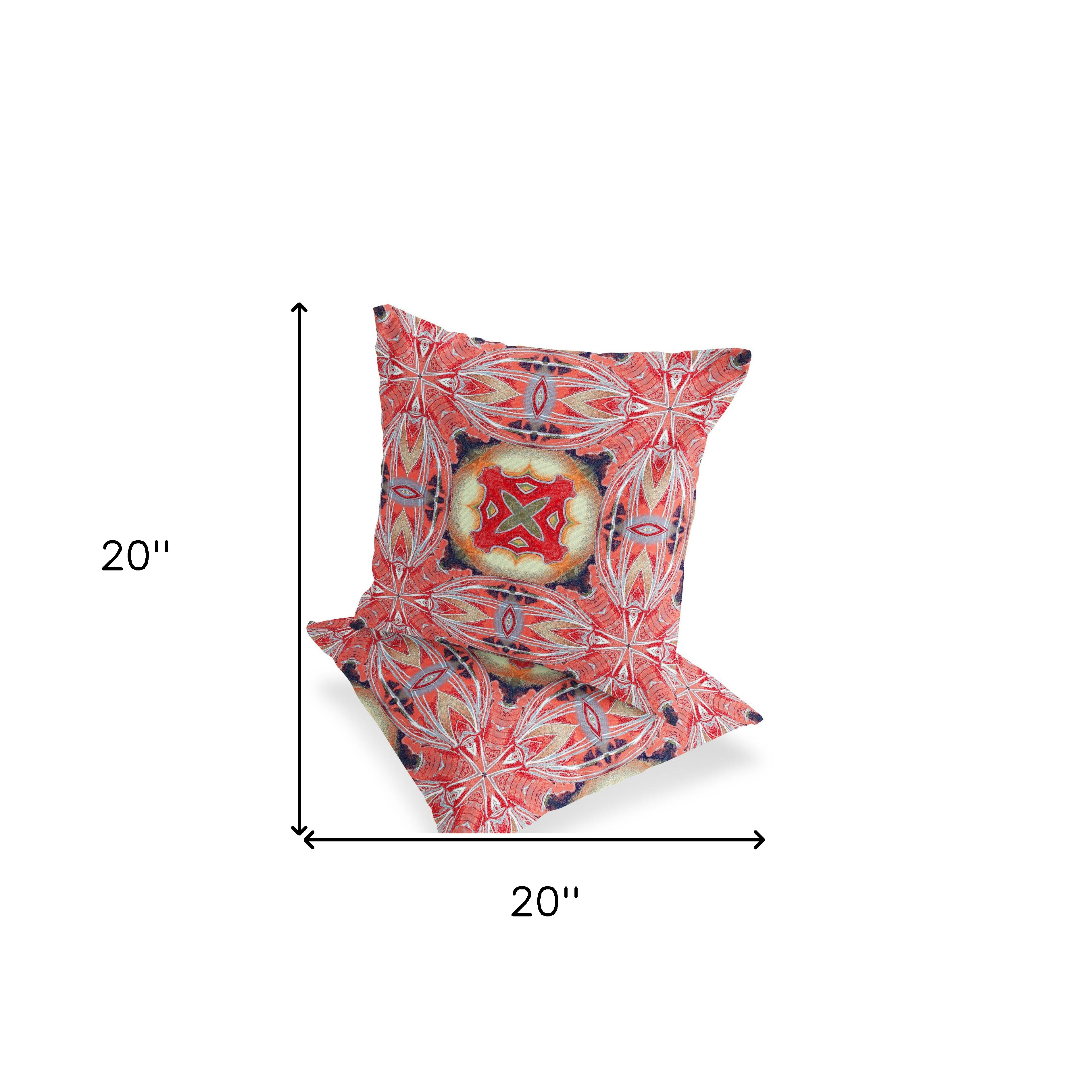 Pastel Floral Squares Indoor/Outdoor Set of 2 Pillows in Pink Peach Red