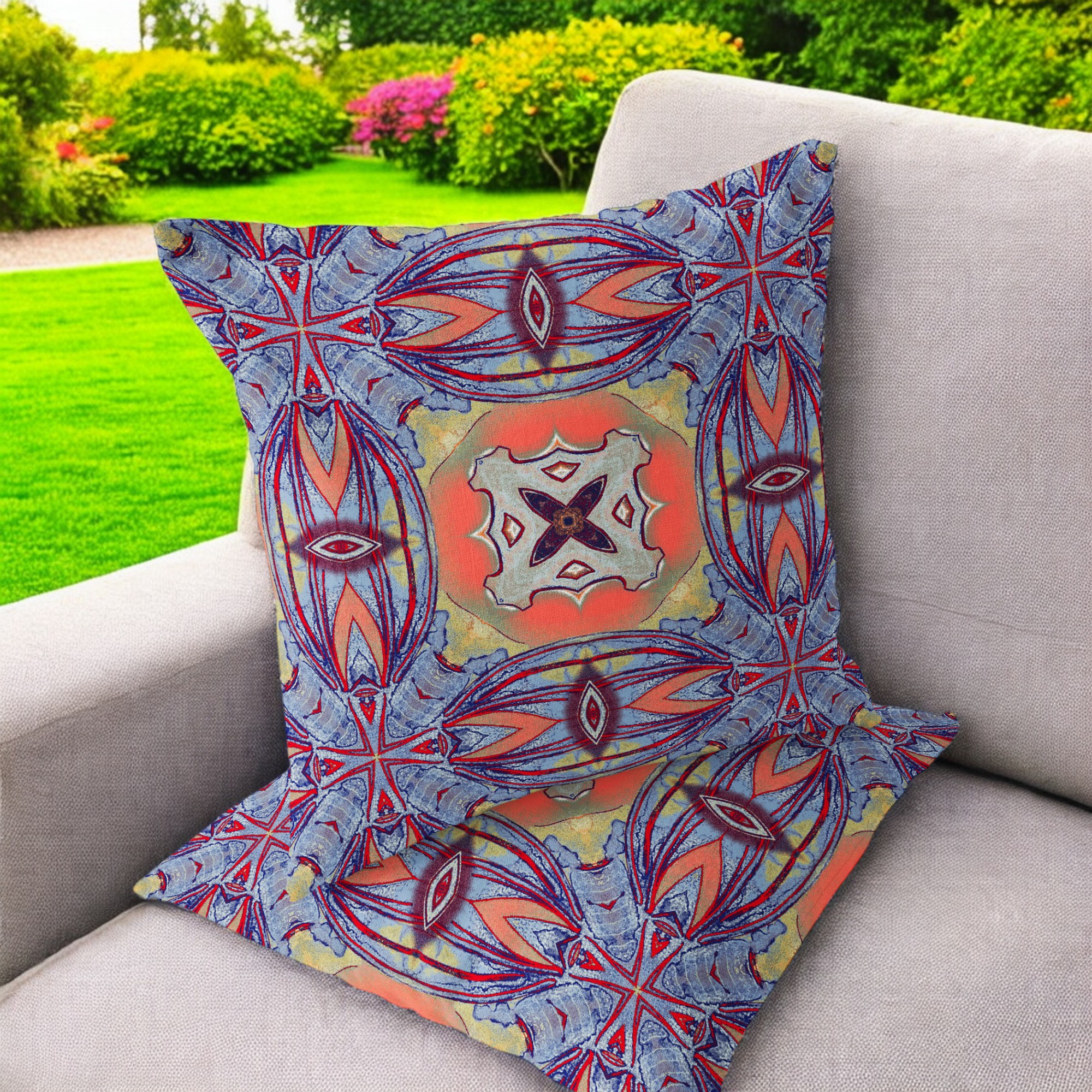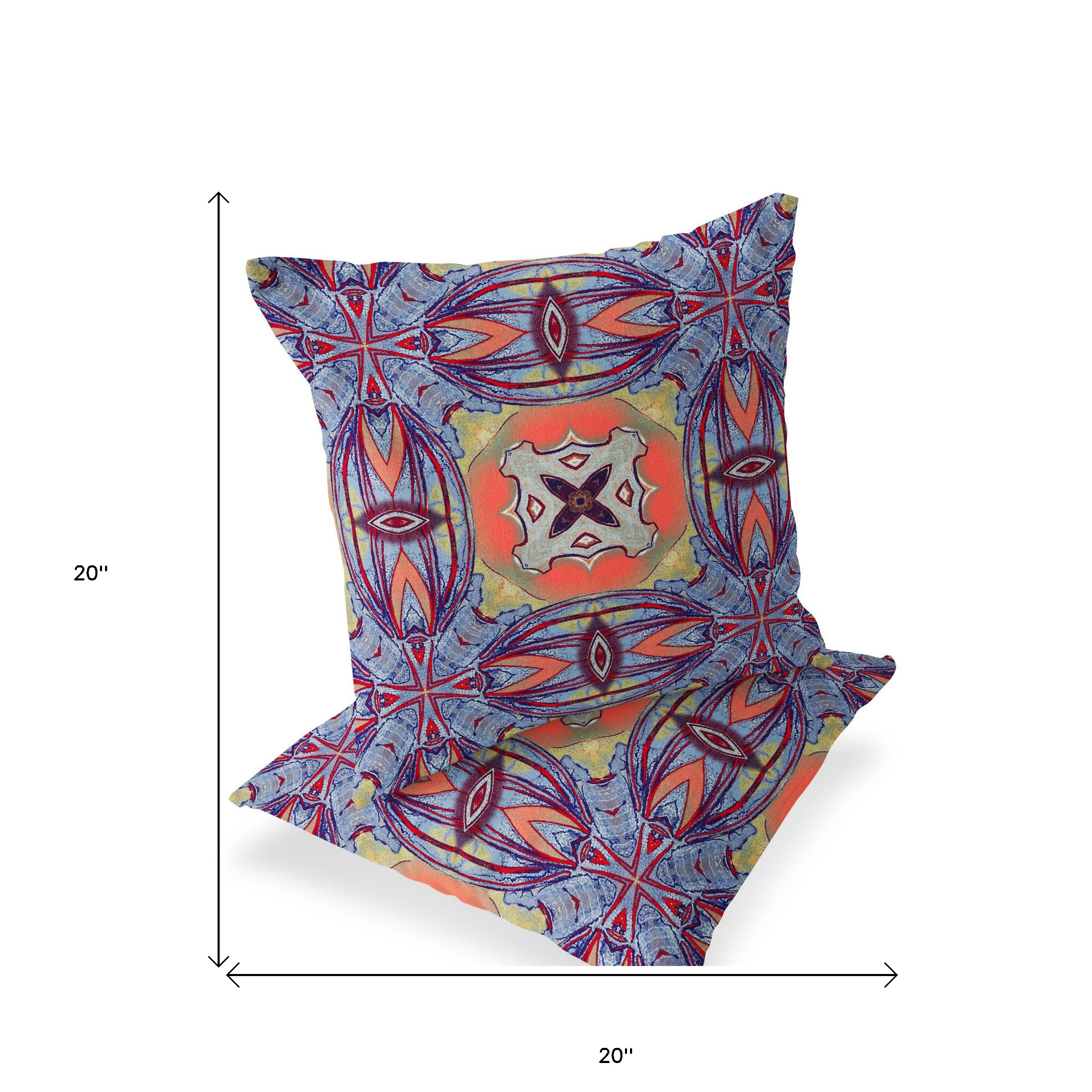 Pastel Floral Squares Indoor/Outdoor Set of 2 Pillows in Purple Orange