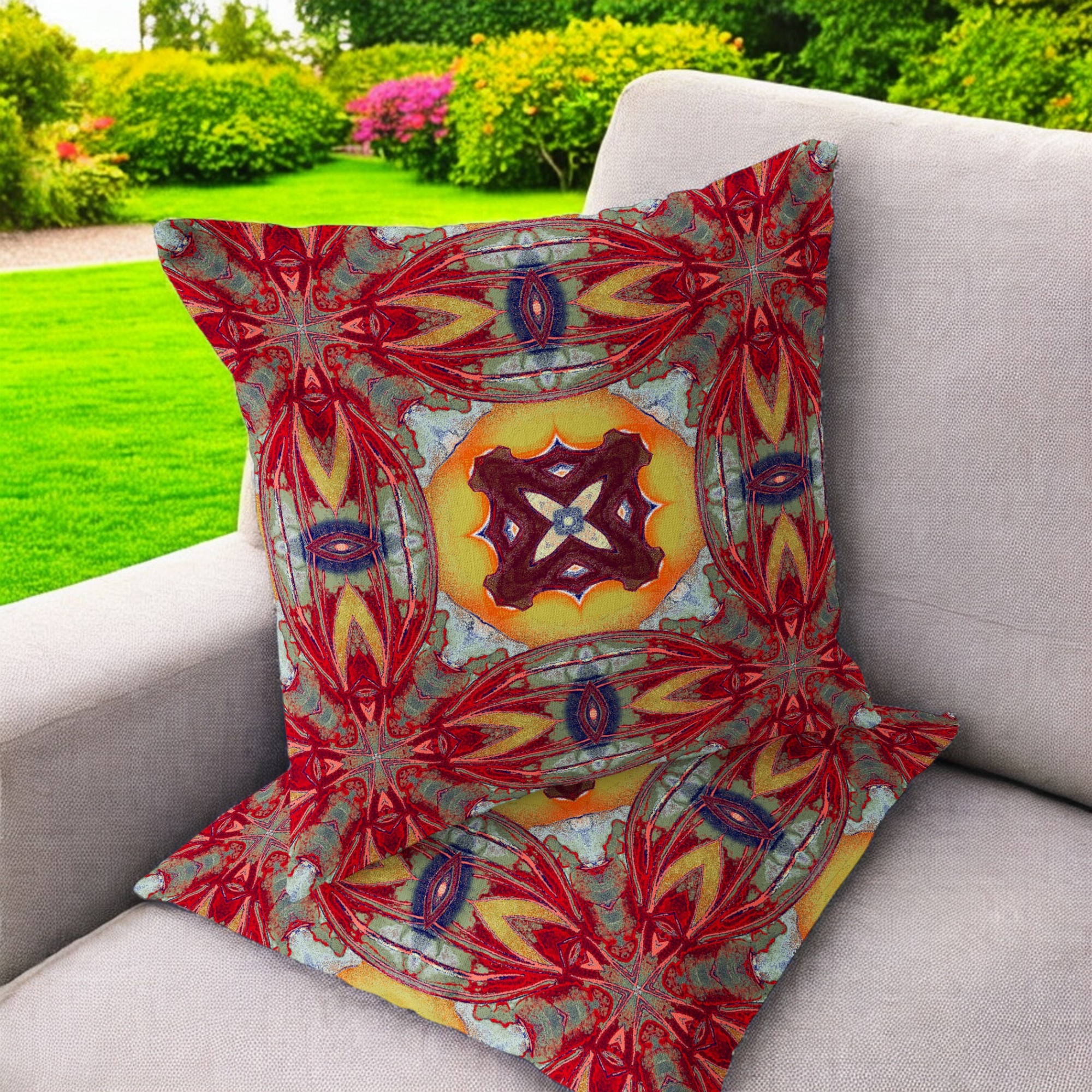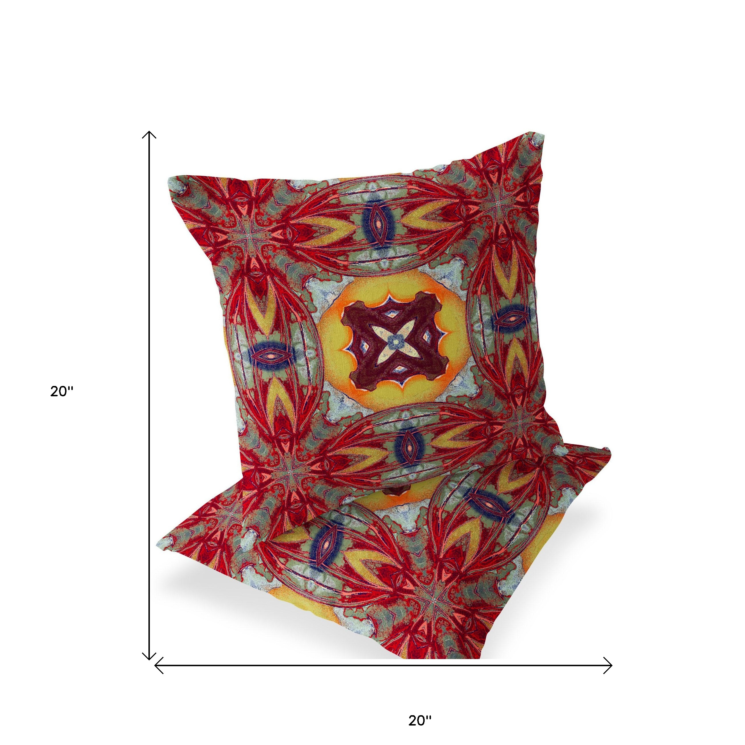Pastel Floral Squares Indoor/Outdoor Set of 2 Pillows in Yellow Red Magenta Green