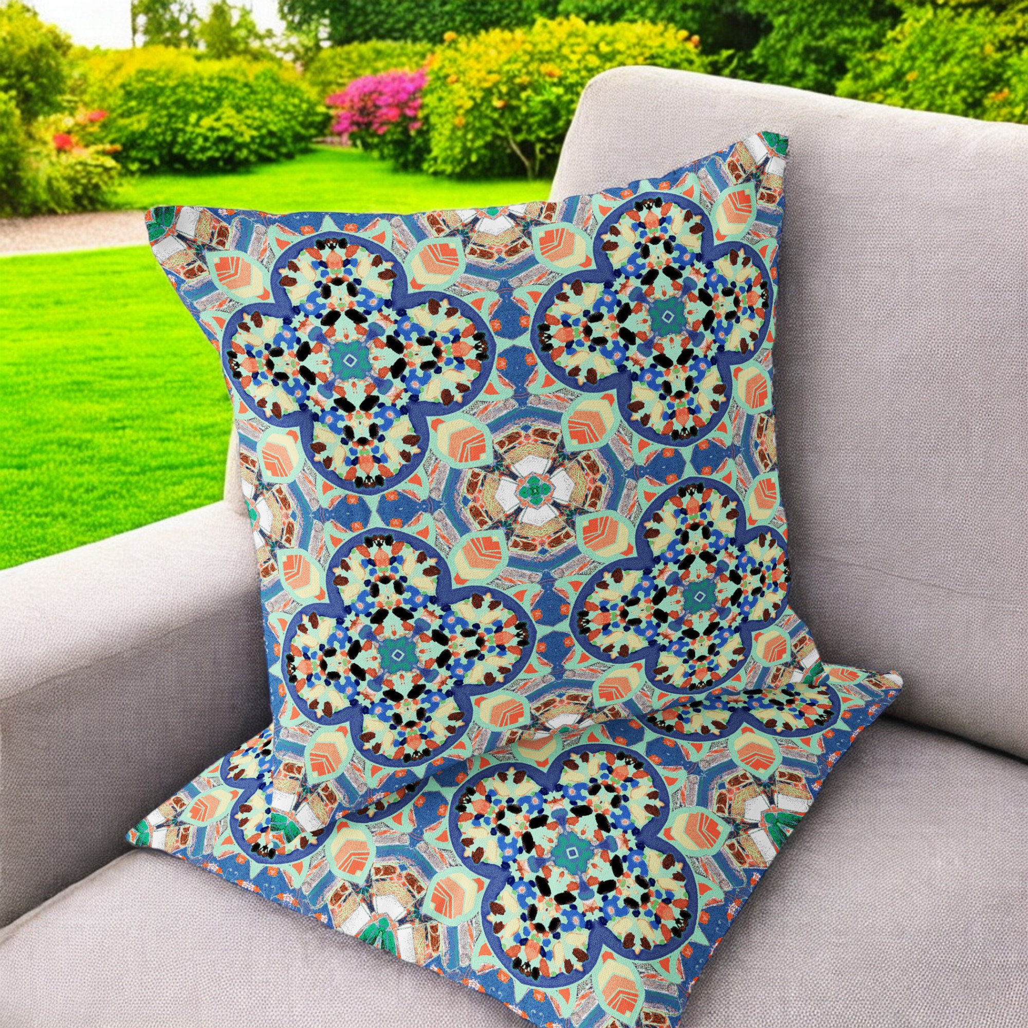 Clover Leaf Floral Indoor/Outdoor Set of 2 Pillows in Blue Purple Peach
