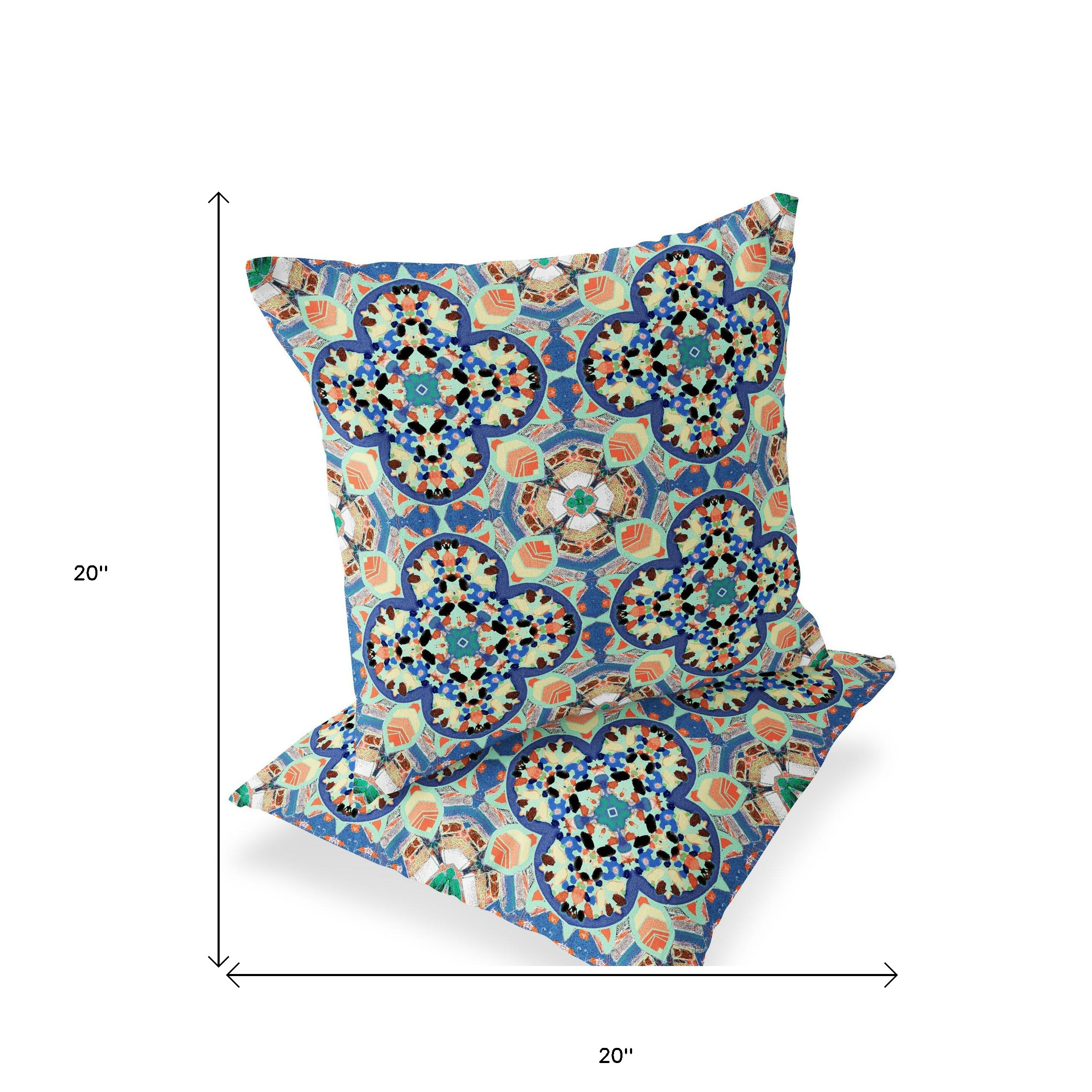 Set of Two Blue Botanical Indoor Outdoor Throw Pillow