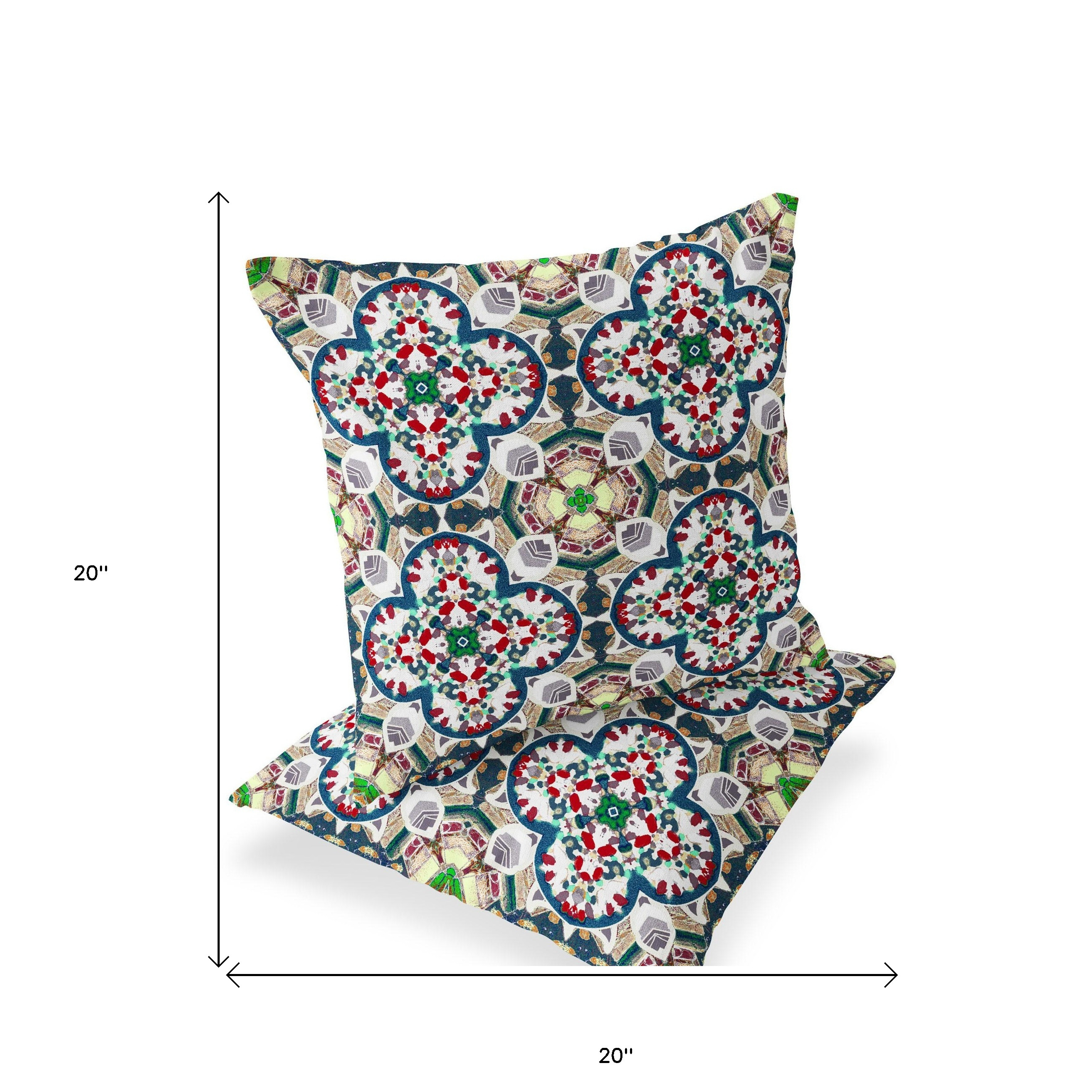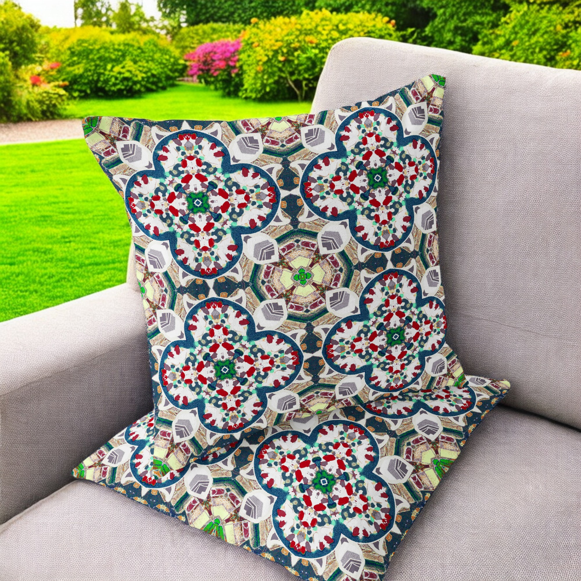Clover Leaf Floral Indoor/Outdoor Set of 2 Pillows in Green Red White