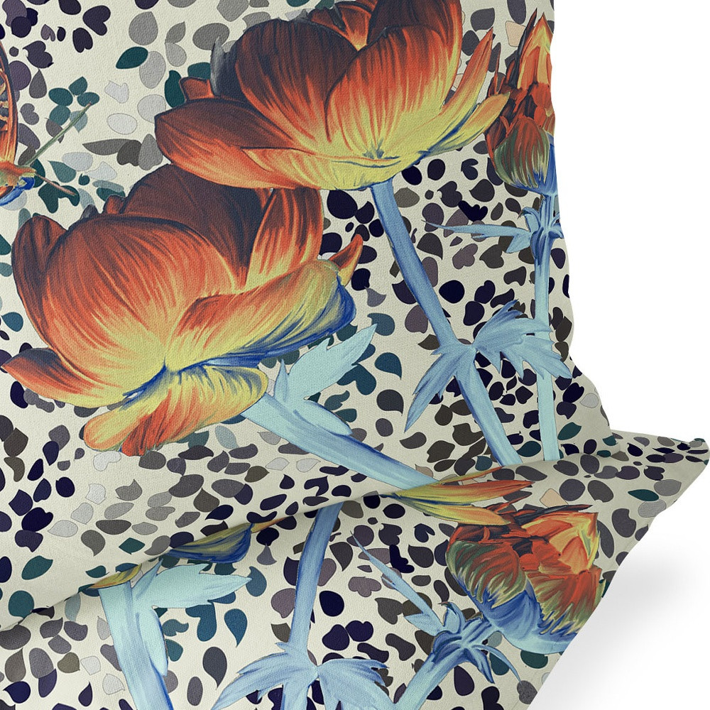 Set of Two Orange Botanical Indoor Outdoor Throw Pillow