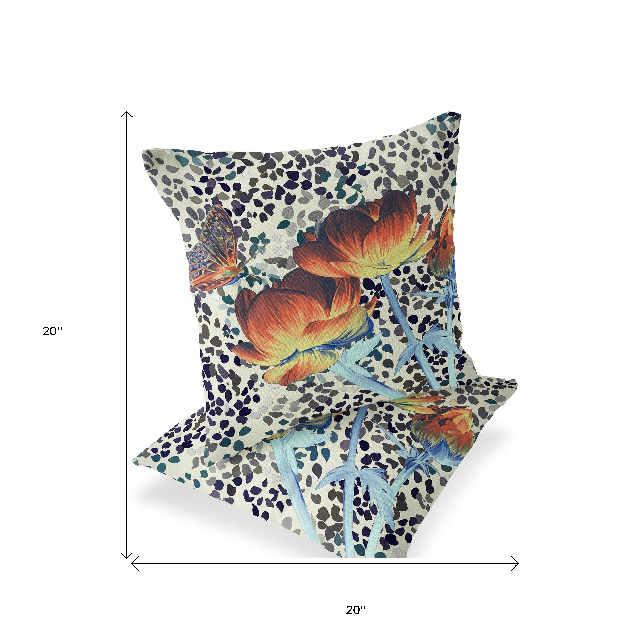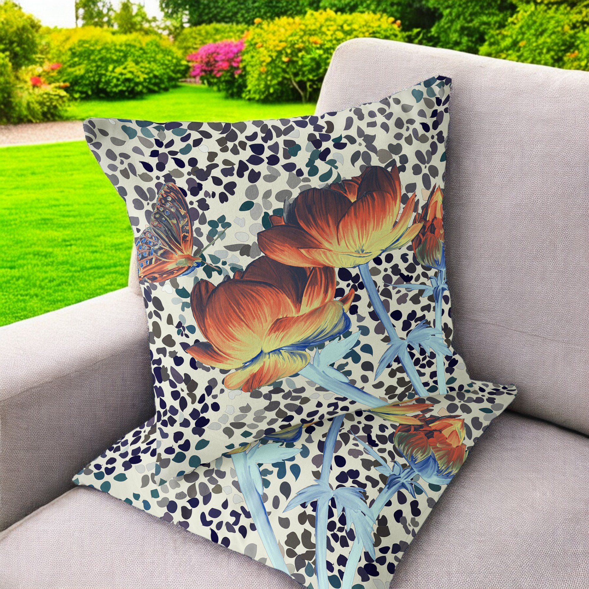 Three Roses with Butterfly Indoor/Outdoor Set of 2 Pillows in Orange Yellow Cream
