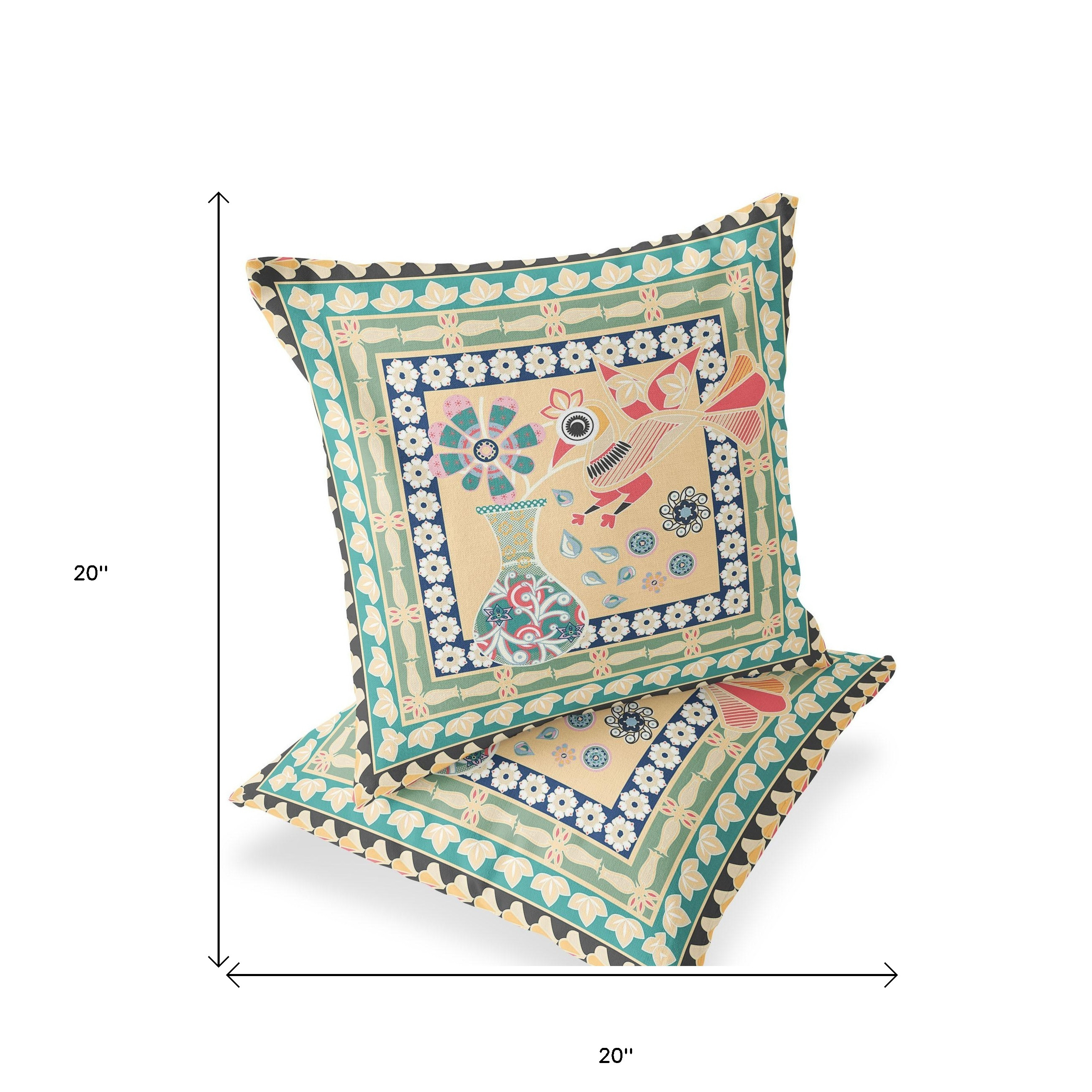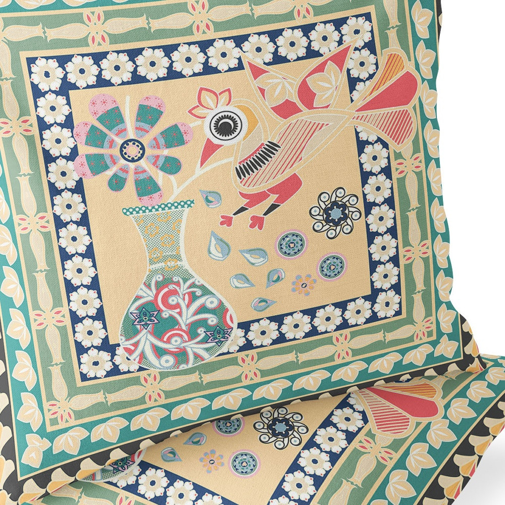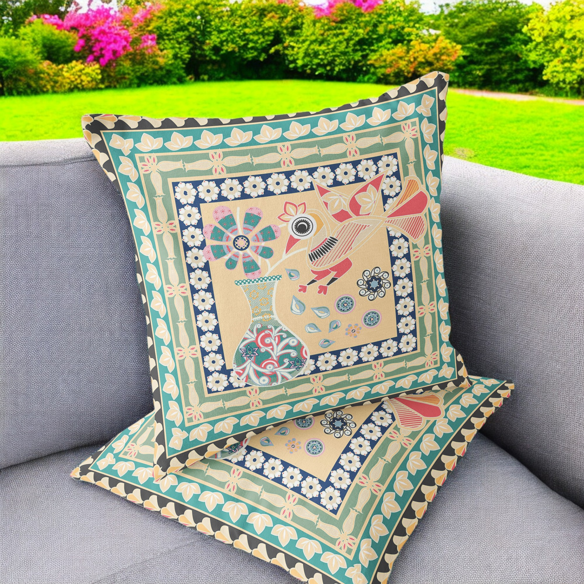 Love Your Vase Peacock Indoor/Outdoor Set of 2 Pillows in Beige Green Pink