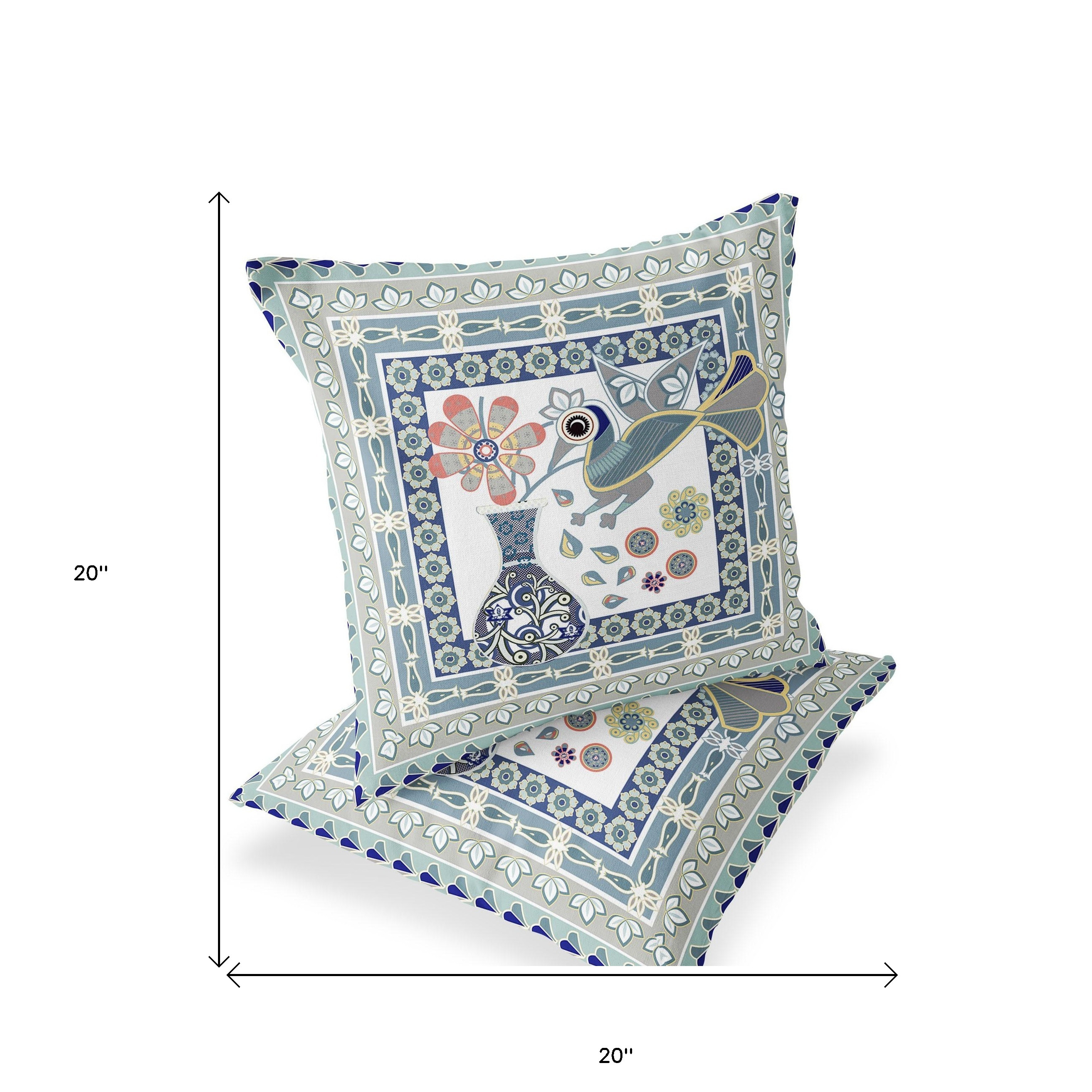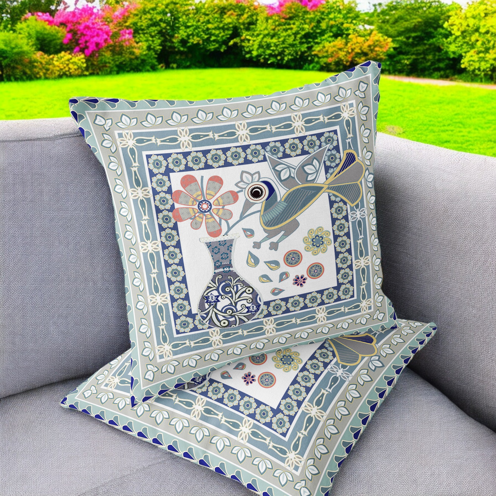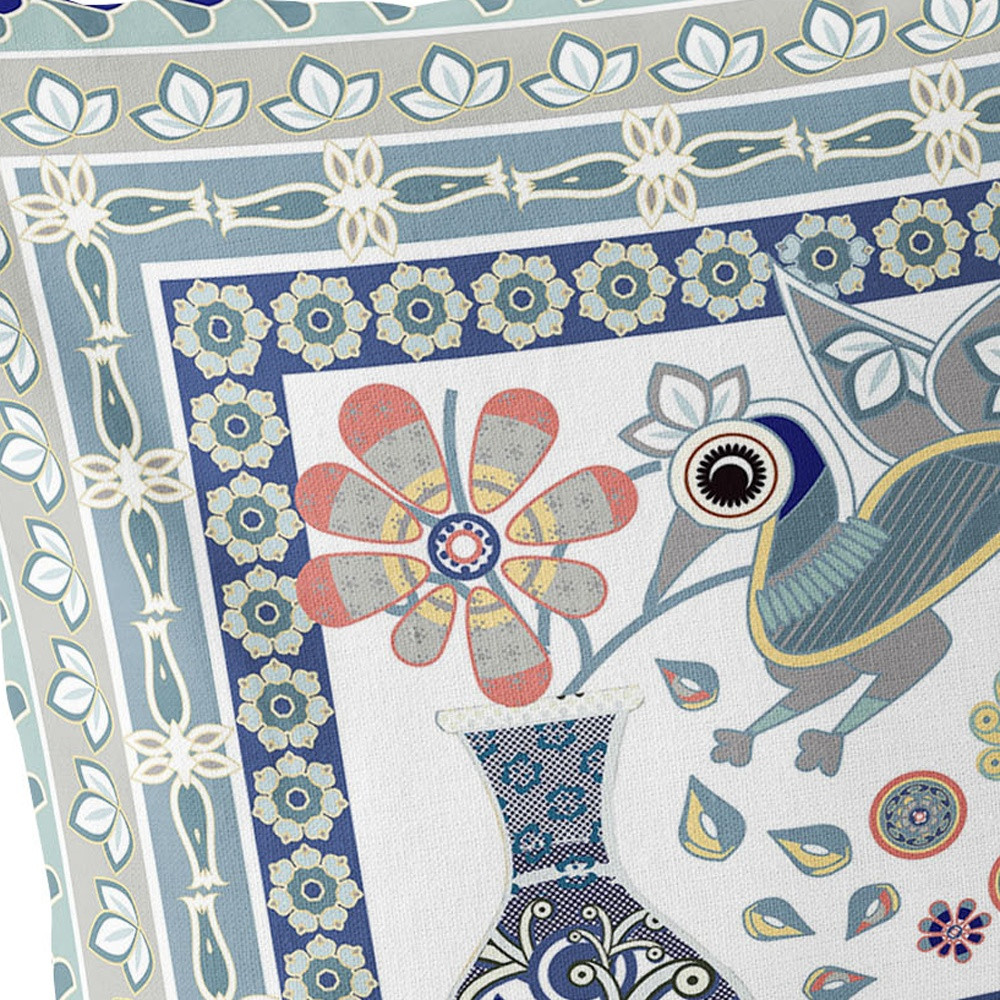 Love Your Vase Peacock Indoor/Outdoor Set of 2 Pillows in Beige Muted Green Blue