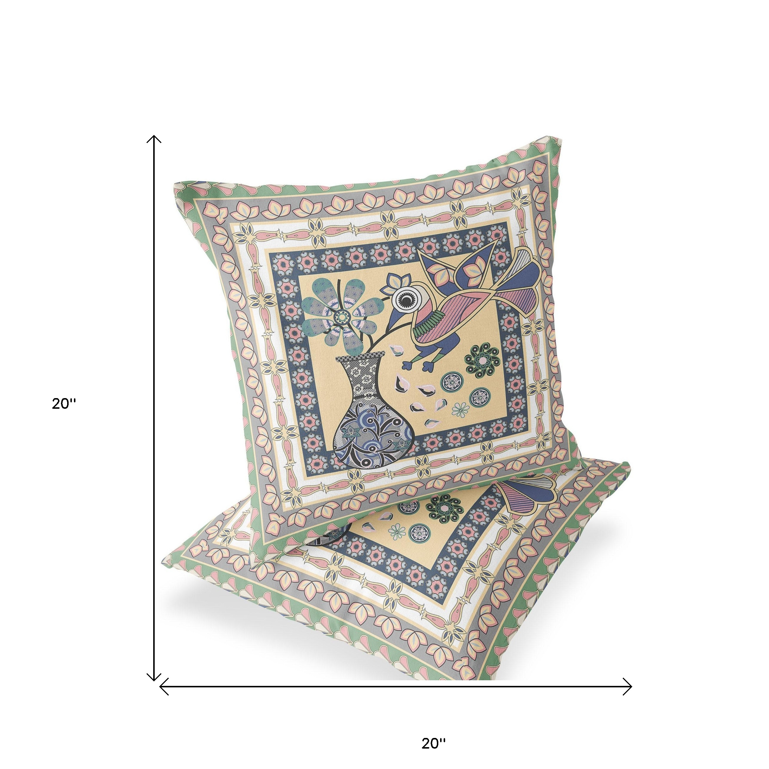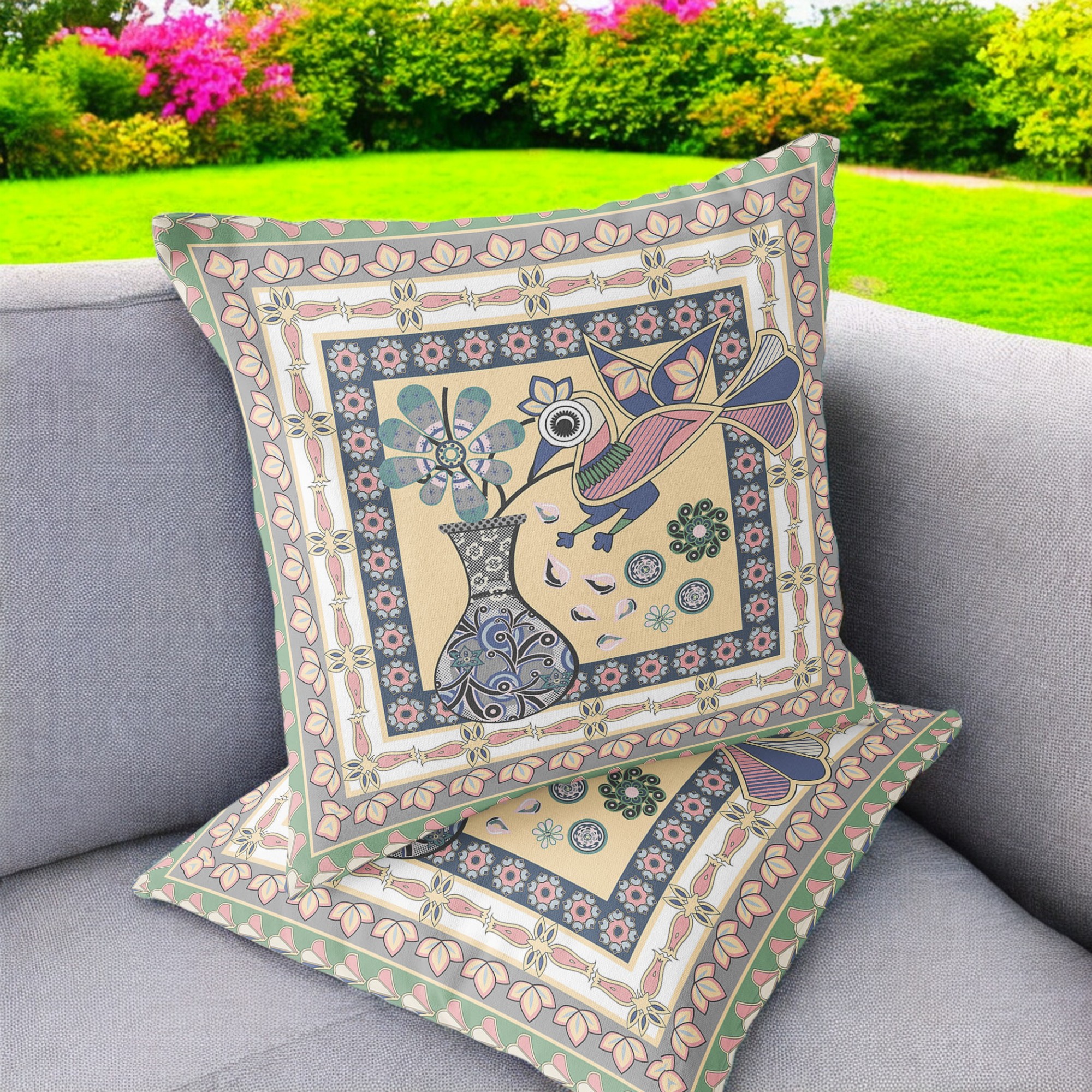 Love Your Vase Peacock Indoor/Outdoor Set of 2 Pillows in Beige Pink Green