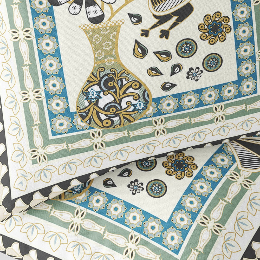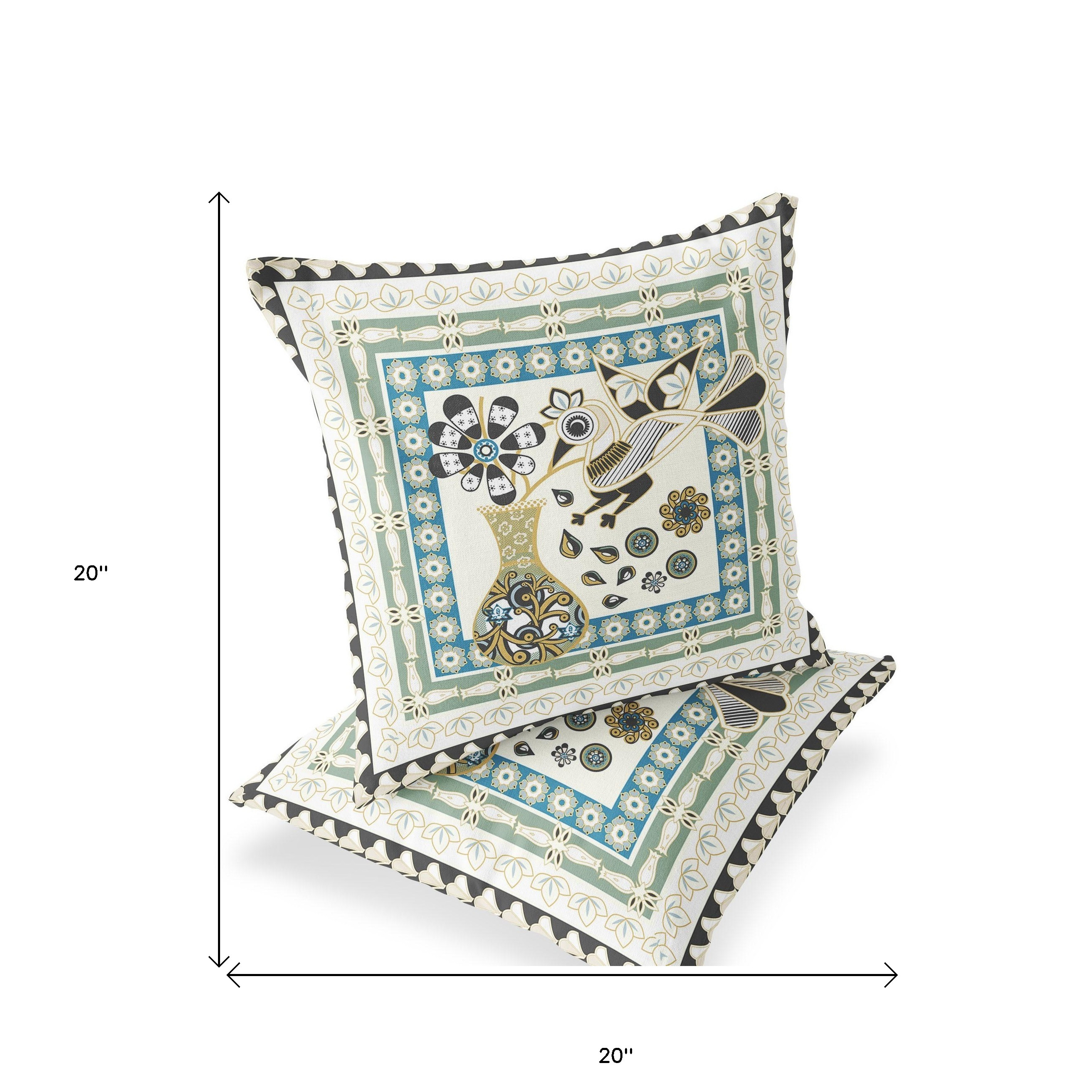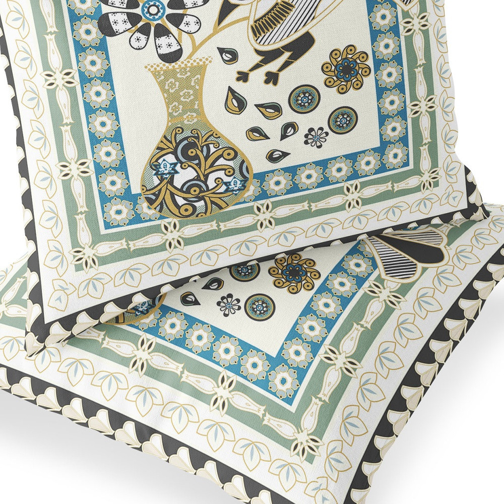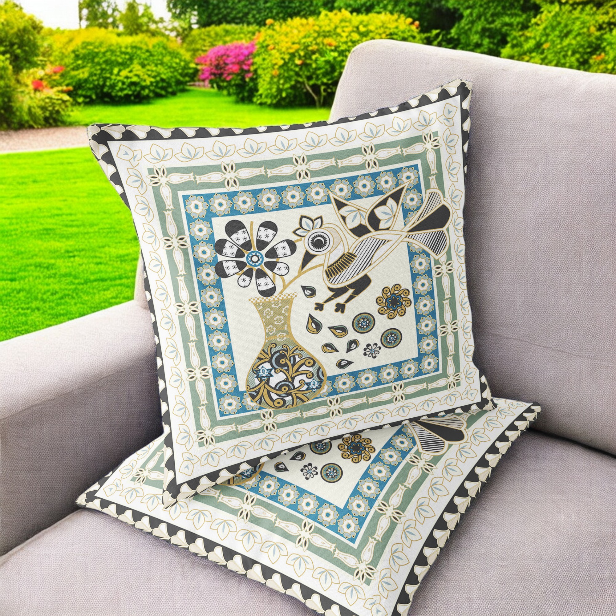 Love Your Vase Peacock Indoor/Outdoor Set of 2 Pillows in Cream Blue Yellow